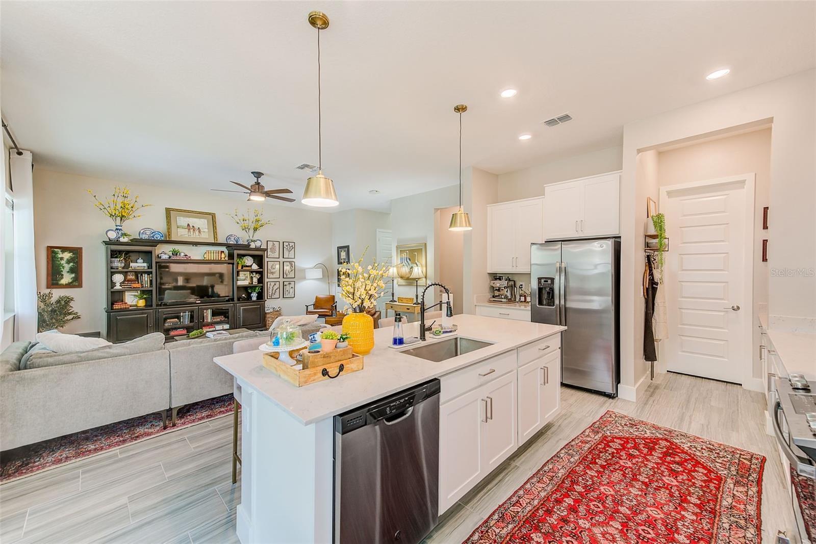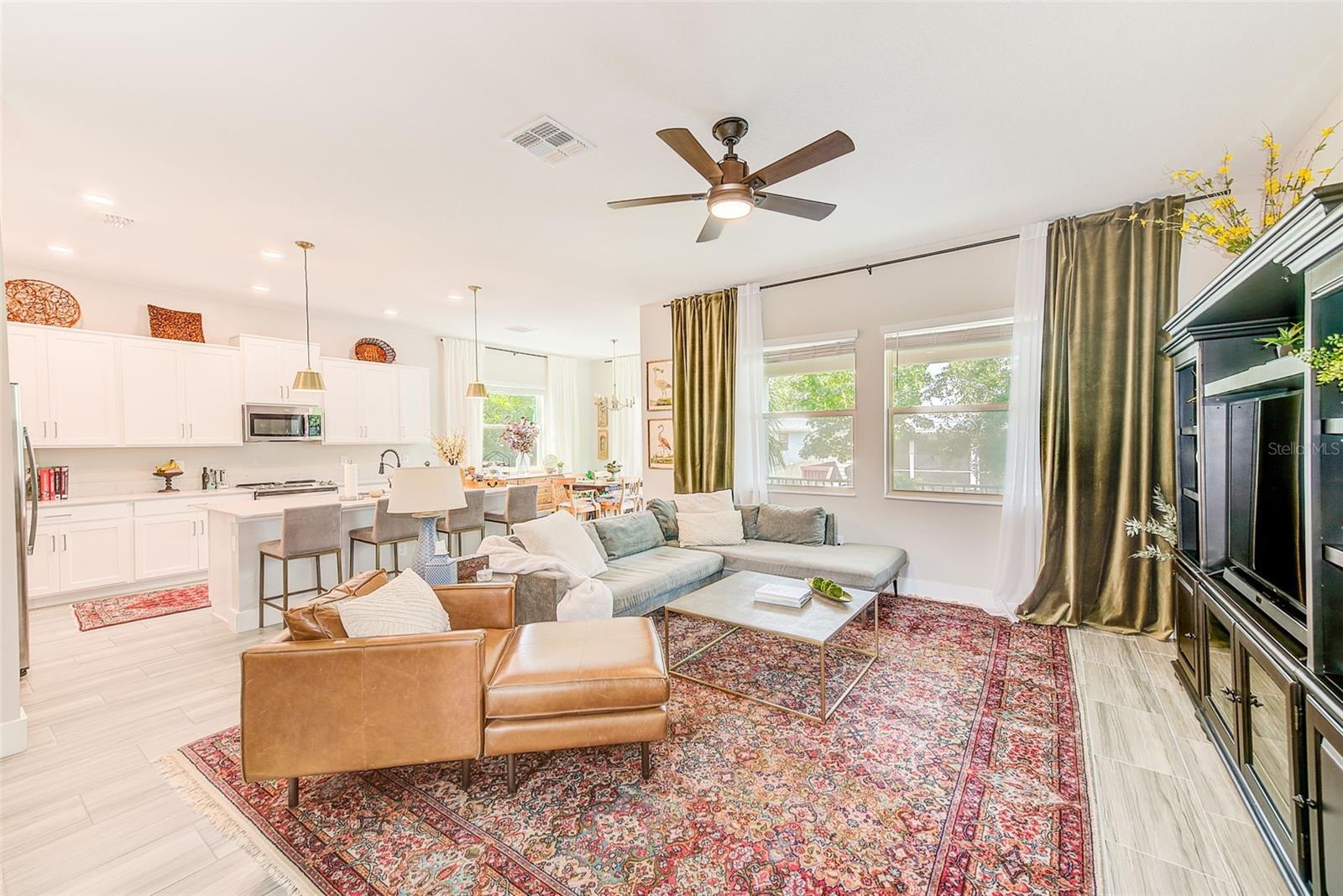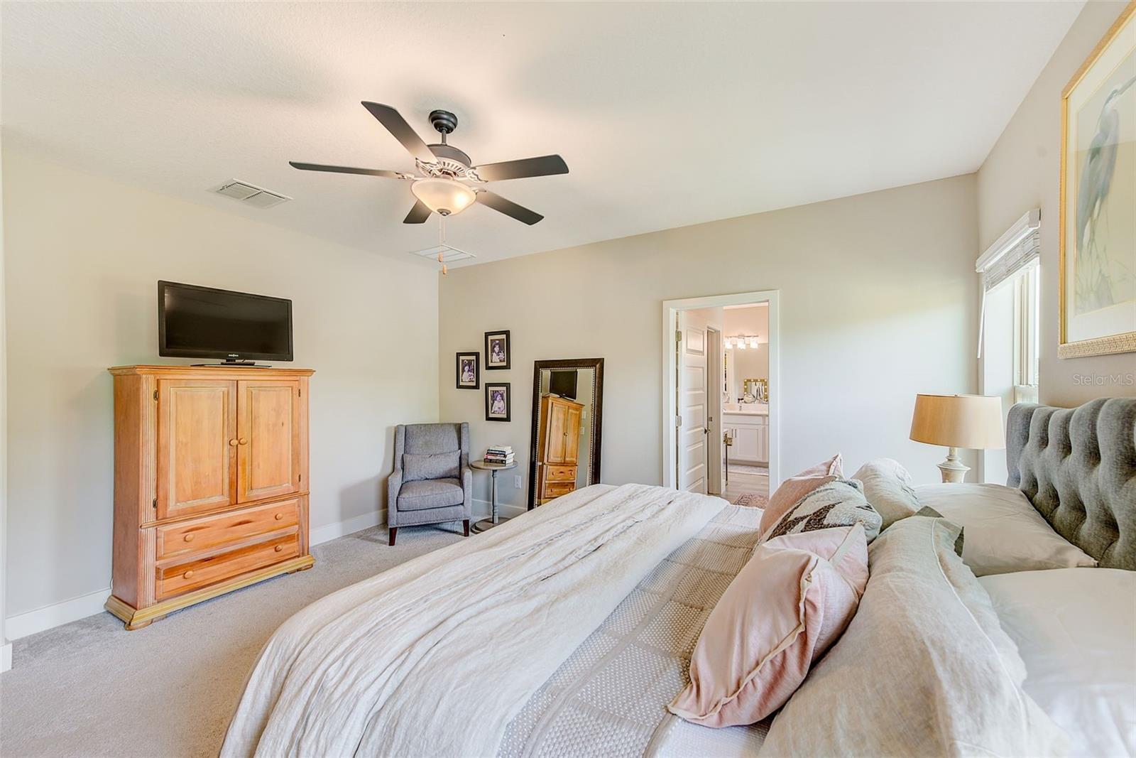 - Ceiling Fans(s), High Ceilings, Open Floorplan, Pest Guard System, PrimaryBedroom Upstairs, Solid Surface Counters, Walk-In Closet(s)