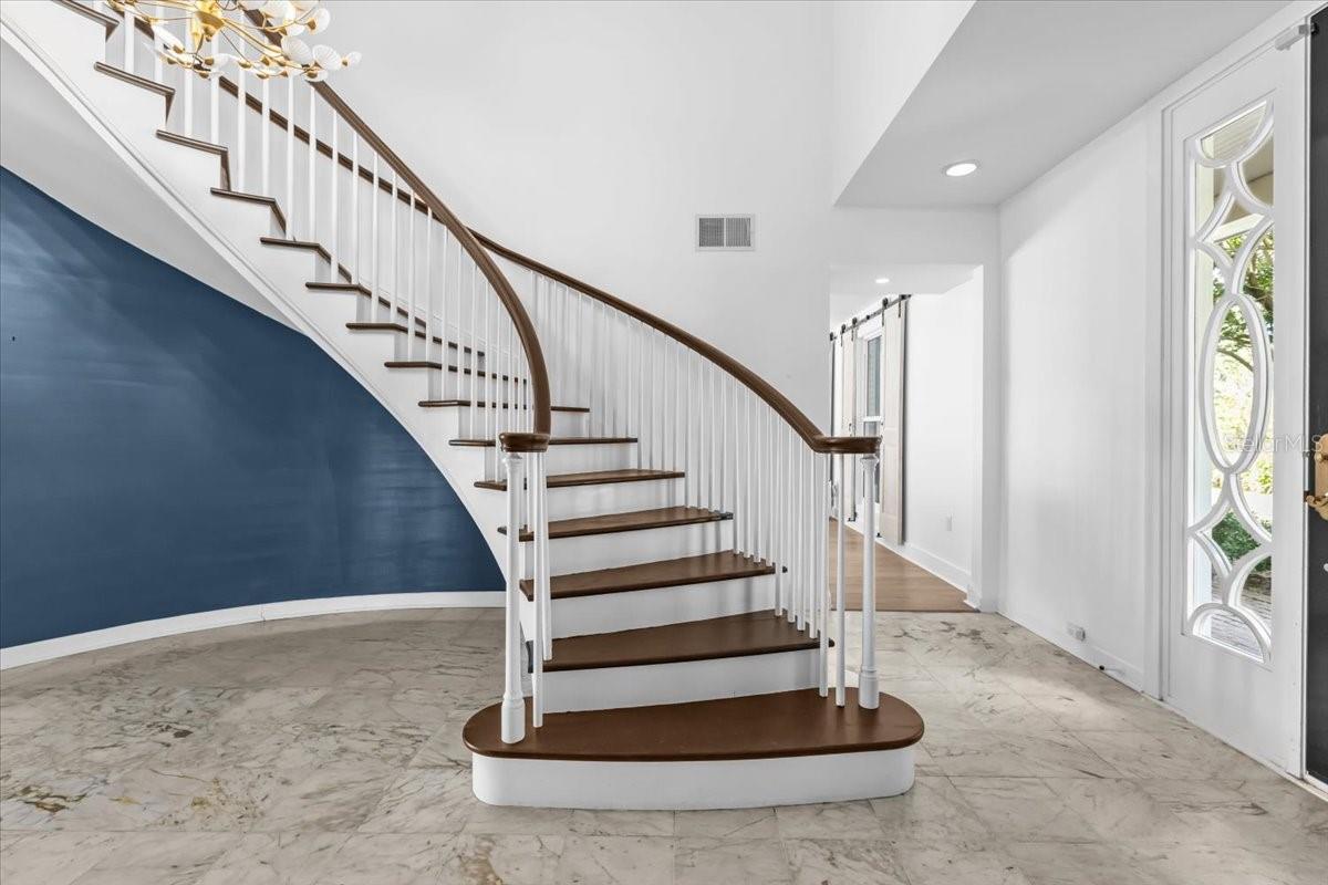 - Attic Ventilator, Built-in Features, Ceiling Fans(s), Chair Rail, Crown Molding, Eat-in Kitchen, High Ceilings, Kitchen/Family Room Combo, Living Room/Dining Room Combo, Open Floorplan, Primary Bedroom Main Floor, PrimaryBedroom Upstairs, Solid Wood Cabinets, Stone Counters, Thermostat, Tray Ceiling(s), Vaulted Ceiling(s), Walk-In Closet(s), Wet Bar, Window Treatments