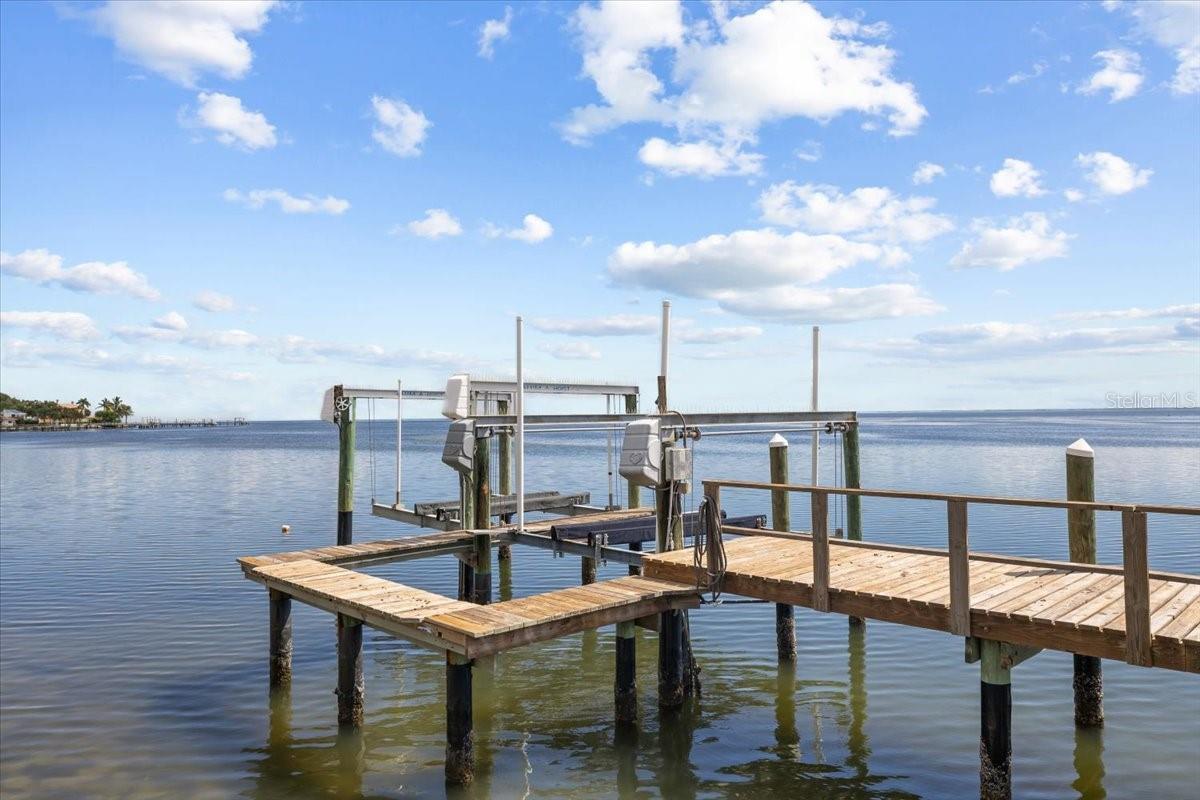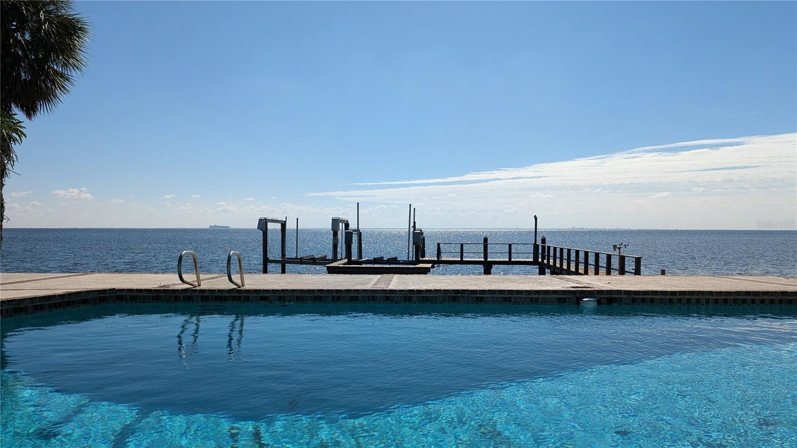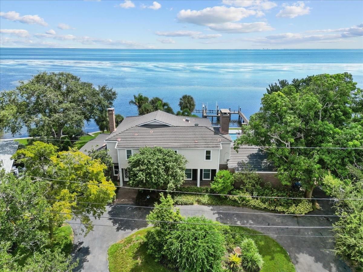 Stunning Panoramic 147 feet of WATERFRONT views, a large private boat dock with TWO boat lifts, and a private POOL located on the peak of the bay kissing the water that didn't have any water intrusion or damages during the record-breaking hurricanes in 2024? You're not dreaming. It’s REAL. This spacious plantation-style home is the perfect blend of Old Florida character and modern luxury. Tucked away on a large private lot on the peak of the curved bay, this magnificent property is surrounded by a variety of views, fruit trees, exotic plants, and tropical wildlife. With almost every room having a beautiful view of the sparkling water, you’ll never forget why you chose this as the place to call home. You'll immediately be greeted by water views through the grand entryway into the dining room as you move past the beautiful cantilever staircase wrapping up to the second floor. The endless water views from the open kitchen and living area are breathtaking. Talk about a perfect place to entertain! The spacious open living/kitchen area features an enormous kitchen with island, built-in Sub-Zero refrigerator, Elise range and gorgeous unique countertops, large bar with separate sink, unique, rare, and authentic Florida Keystone coral rock fireplace, and impact sliding glass doors out to the back lanai, making indoor/outdoor entertaining a breeze. Words cannot describe the views from outside. Whether you want to swim in the private pool, have dinner on the lanai, watch the wildlife with your coffee, or hop on the boat from your dock with not one, but TWO boat lifts…this home has you covered…and a view of the water from almost every angle. There is space for all of your toys on this expansive dock and room for all your outdoor activities in the large yard along the water. This home features a library with floor to ceiling solid wood shelving and a fireplace that is like something out of a fairy tale! If the library isn't cozy enough, there's a total of THREE fireplaces throughout the home. With 5 bedrooms and 5 and a half bathrooms, you’ll have enough space for everyone. There’s even a bonus room with a view that would make working from home, exercising, or whatever you want to do in there seem like you're still on vacation somewhere! The covered balcony of the second floor runs the length of the home, giving the bedrooms along the back not only a view from their window, but a place to step outside and FEEL the bay breeze. This home was designed to enjoy the views as both stories have an outdoor space that runs the entire length. The FIRST FLOOR BEDROOM has an exterior door leading out to the back lanai and is large enough to be an in-law suite, a second primary bedroom, or transformed into a game room. The sky is the limit for this unique space. Impact windows throughout, slate tile roof, new pool heater/chiller, luxury appliances, wet bar with wine fridge, ice maker, and liquor cabinet with lock, 15 minutes to The Don Cesar and Gulf Beaches, 12 minutes to all the action of downtown St. Petersburg, 30 minutes from Tampa, and 45 minutes from Sarasota…you will NOT find a better location. Be close to everything, but far enough to be in your own world. Properties like this are RARE. Waterfront properties that encountered ZERO damages during last year's hurricanes are RARE. Private docks with TWO boat lifts are RARE. If you were waiting for the perfect pool home on the open water with a dock with not one, but TWO boat lifts, THIS. IS. IT.