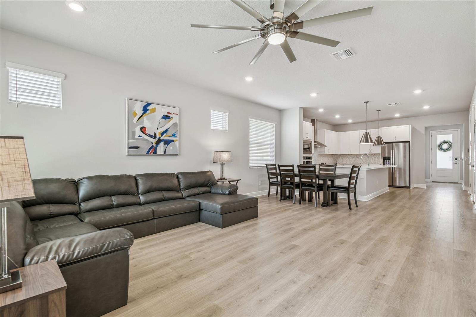 - Ceiling Fans(s), High Ceilings, Living Room/Dining Room Combo, Open Floorplan, Stone Counters, Window Treatments