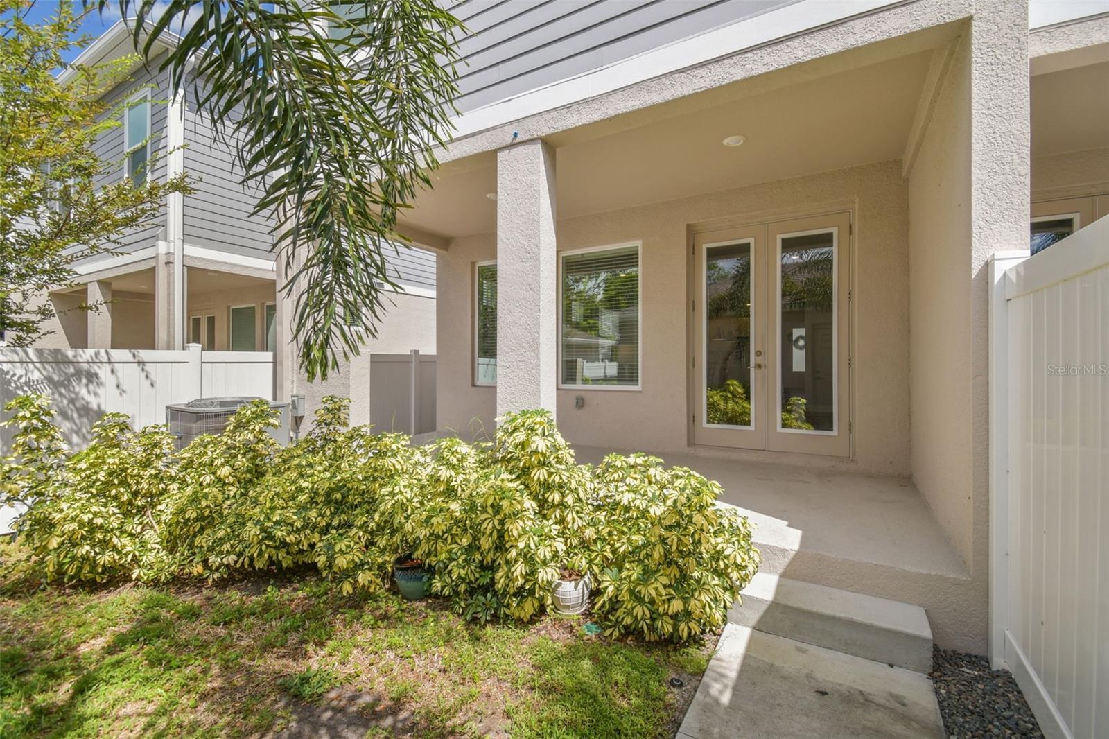 - Courtyard, Dog Run, French Doors, Lighting, Private Mailbox, Rain Gutters, Sidewalk