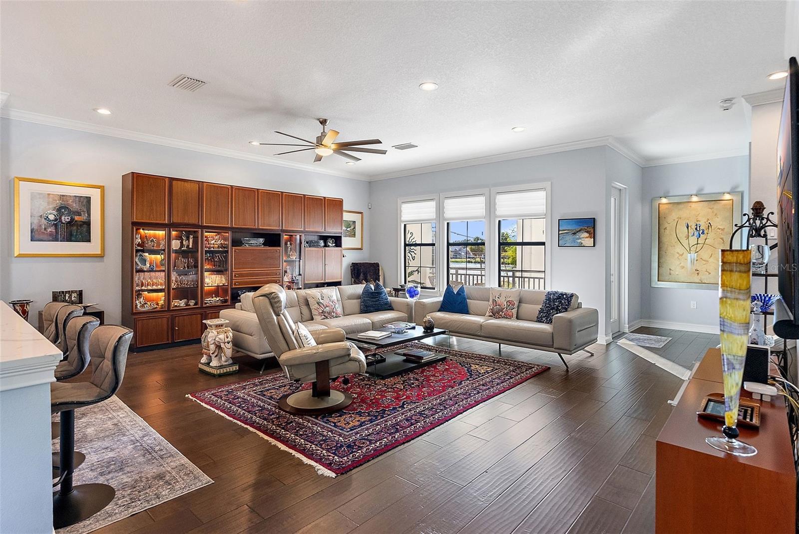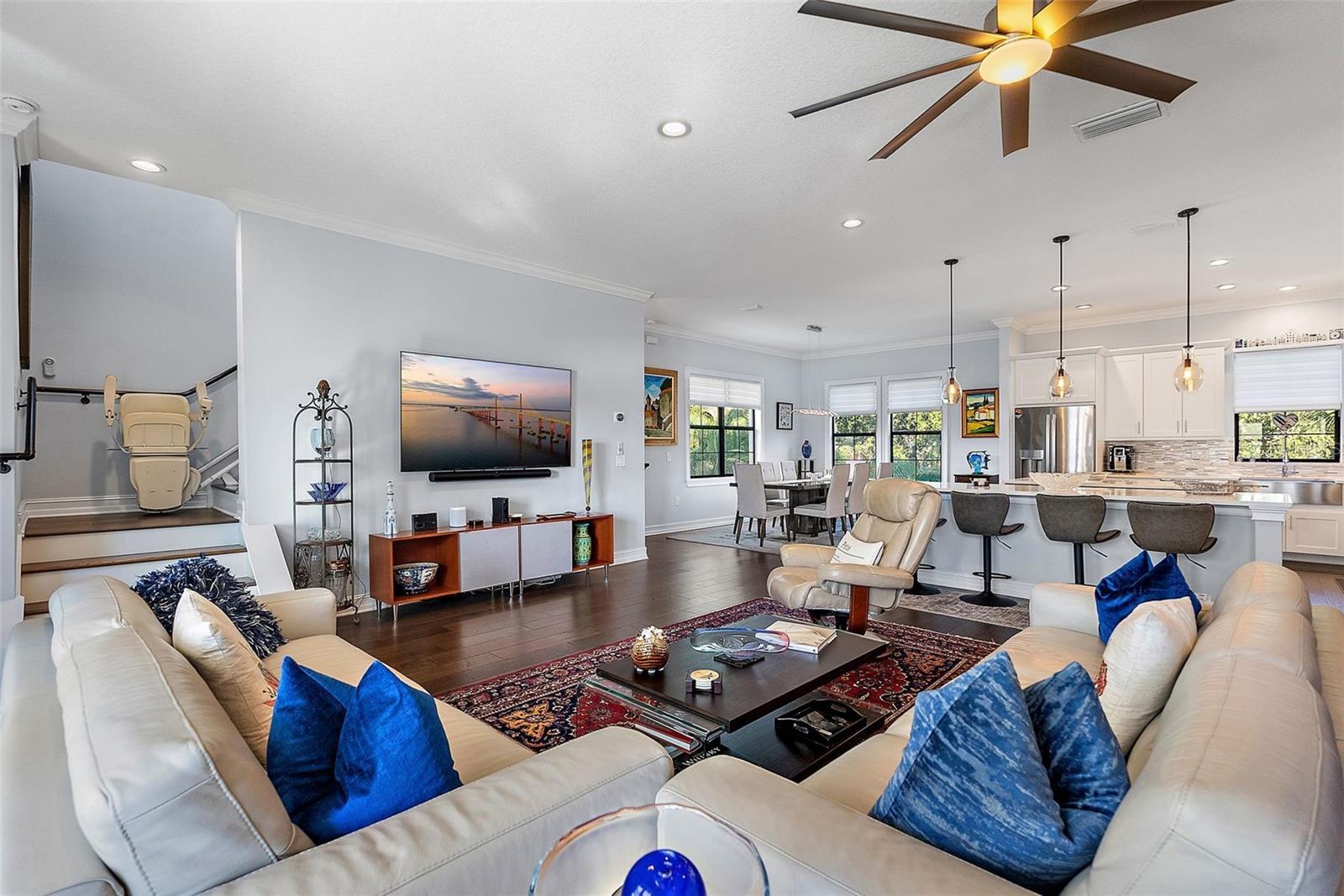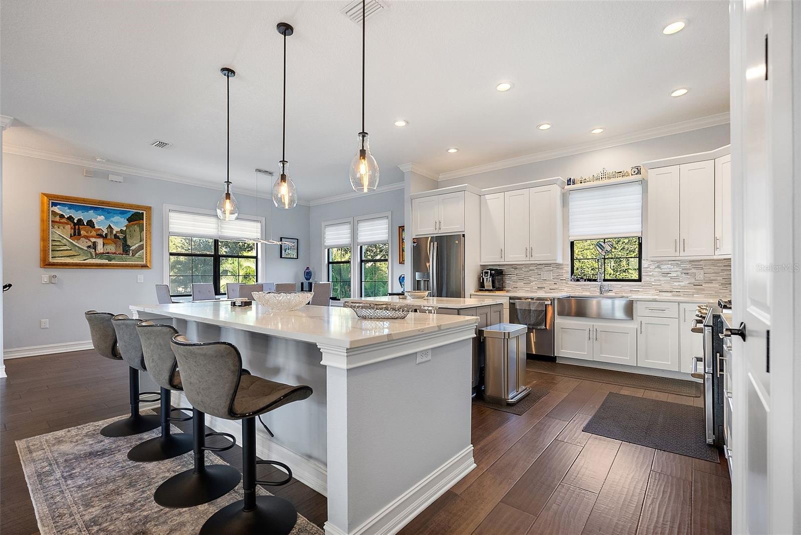 - Crown Molding, High Ceilings, Kitchen/Family Room Combo, Open Floorplan, Stone Counters, Thermostat