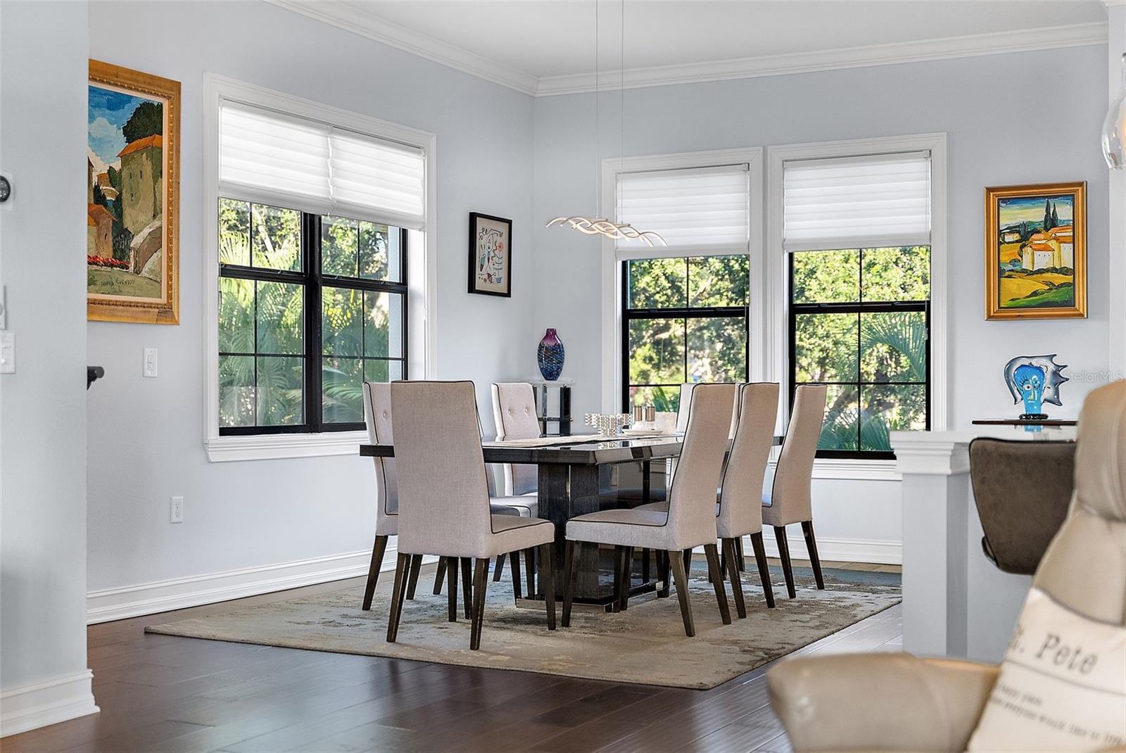Just steps from the iconic Crescent Lake Park, this stunning townhome at Crescent Lake City Homes offers the rare combination of modern luxury, privacy, and true single-family living—without the maintenance. Built in 2017 and thoughtfully designed with no shared walls, this residence lives like a standalone home, complete with private yard space and an airy, open layout ideal for both everyday living and entertaining. Inside, you’re welcomed by high ceilings, rich hardwood floors, and an abundance of natural light that flows through the open-concept main living area. The chef’s kitchen is a showstopper, featuring quartz countertops, custom cabinetry, stainless steel appliances, a gas range, and a built-in wine fridge—perfect for hosting or winding down after a day at the lake. Each of the three spacious bedrooms includes its own en-suite bath, offering comfort and privacy for family and guests alike. Private balconies provide peaceful views and the perfect spot for morning coffee, while your own fenced yard creates a rare outdoor retreat in the heart of the city—ideal for pets, play, or al fresco dining. What truly sets this home apart is the lifestyle. Walk out your front door and into Crescent Lake Park’s 52 acres of green space, complete with a scenic walking and biking path, pickleball courts, dog park, playground, and an enclosed park area for kids. Whether it’s morning jogs, sunset strolls, weekend playdates, or walking the dog, this location delivers an unmatched blend of nature and urban convenience. Ideally located just north of downtown St. Petersburg, you’re minutes from top restaurants, local shops, waterfront parks, and everything that makes this city so vibrant—yet tucked into one of its most beloved residential pockets. Modern. Private. Walkable. And truly one of a kind.