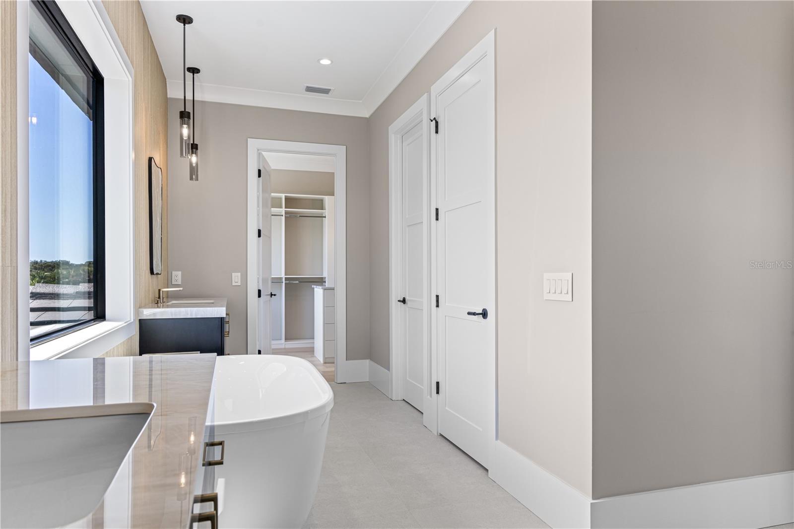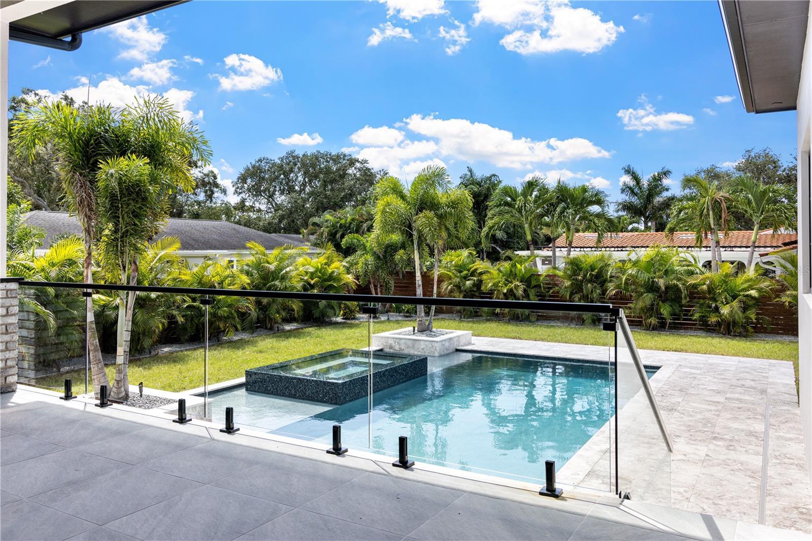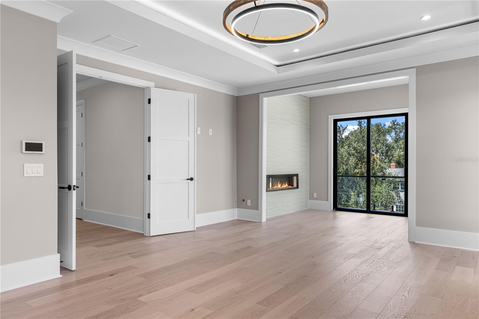 Step into elevated luxury living with this stunning 5-bedroom, 6.5-bath custom estate built for an executive family, featuring 12' ceilings on the first floor, 10' ceilings on the second, and a grand luxury design across over 5,483 sq ft of impeccably crafted living space. A dramatic 22-foot entry with overhead skybridge, oversized windows, and custom iron doors welcomes you, complemented by four Palecek Corsica pendant lights, backlit LED mini-tray grid, and marble-tiled bench area, creating a first impression that is truly unforgettable. Signature design elements, including custom decorative walls and high-end finishes throughout, set the tone for sophisticated living. The heart of the home is a gourmet kitchen showcase, complete with Wolf SubZero appliance package, built-in coffee maker, wall double oven with Wolf's convection system, custom hood, and a quartz waterfall island with integrated sitting area and oversized sink. Luxury skinny shaker cabinets (Waypoint Maple Almond) provide durable, elegant storage, while a butler's pantry includes an additional full-size refrigerator and wine cooler. A custom wine cabinet is seamlessly integrated into the dining room for effortless entertaining. The great room living space features soaring 14' ceilings, a custom built-in fireplace with fluted wood and large-format porcelain tile surround, and expansive sliders opening to the pool and outdoor entertaining areas. The executive study dazzles with water views, full-wall built-ins, and Arhaus Bronze Arrow accents, while the powder and pool baths are adorned with leathered porcelain, marble mosaic, oversized quartz countertops, and unique design elements for a refined experience. The luxurious owner's suite offers a sitting area with linear fireplace and water views, a spa-inspired bathroom with dual rain shower heads, floating cabinets, 6cm quartz countertops, and oversized linen closet. The master closet includes a full shelving system, island, and bench for seamless organization. Additional bedrooms and an oversized game room provide space for family and guests alike. Step outside to a resort-style backyard featuring a large, heated pool and spa with spillover waterfall, integration of foxtails, and upgraded outdoor kitchen by Artisan. The over 15,000 sq ft estate lot provides privacy and grandeur, with a metal and stained wood fence, lush landscape package, planters, salt-and-pepper granite accents, and ambient lighting. Outdoor living spaces include pool baths, frosted-glass doors for easy lanai access, and multiple entertaining zones for family and guests. Smart-home amenities include a Generac whole-home generator, hurricane-rated casement windows throughout, and pre-wired EV chargers. The oversized circular paver driveway with split 3-car garage completes the estate's convenience and luxury. Every detail, from high-end finishes to thoughtful living spaces, is designed for comfort, style, and sophisticated Florida living.