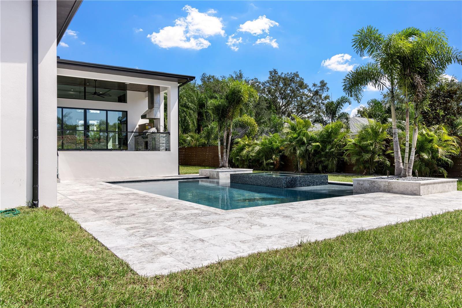 - Awning(s), Lighting, Outdoor Grill, Outdoor Kitchen, Sprinkler Metered
