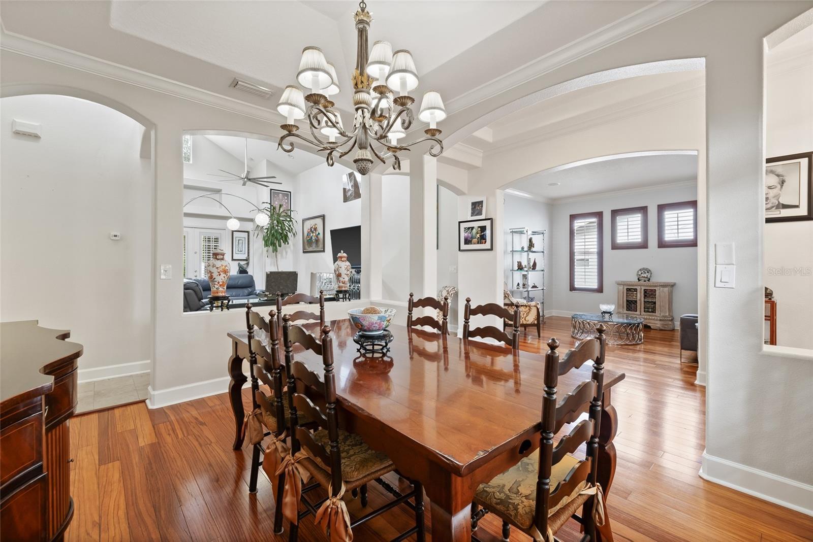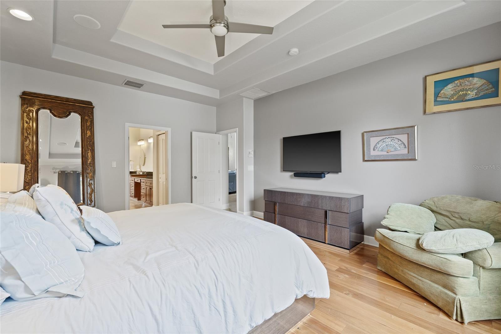 - Cathedral Ceiling(s), Ceiling Fans(s), Primary Bedroom Main Floor, Solid Wood Cabinets, Tray Ceiling(s), Vaulted Ceiling(s), Walk-In Closet(s), Window Treatments