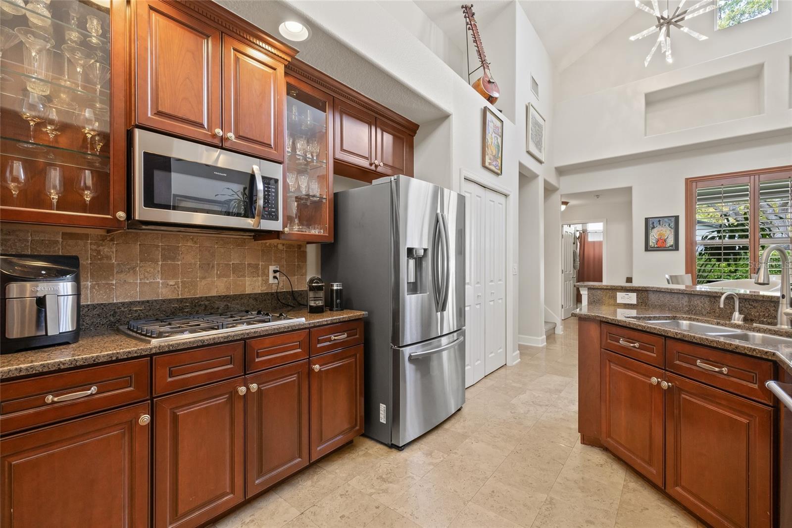 Contemporary South Tampa home in prime location! This stunning 3-bedroom, 2-bathroom home with a tandem 2-car garage sits on a spacious, fenced-in lot in one of South Tampa’s most desirable locations and zoned for Plant High School district. Step inside to soaring cathedral ceilings and an open-concept floor plan designed for effortless living. The chef’s kitchen features a gas stove, stainless steel appliances, granite countertops, and hardwood cabinetry. Gorgeous Brazilian hardwood and travertine flooring flow throughout the home, adding warmth and sophistication. The light-filled primary suite offers a spa-like ensuite bathroom with dual vanities, garden tub and a large glass-enclosed shower, and a generous walk-in closet outfitted with custom built-ins. There is a dedicated office, laundry room and upstairs bonus room/loft. Step out onto your covered lanai that overlooks lush, mature landscaping that is maintained by a sprinkler system. Additional highlights include an air purification system for enhanced indoor air quality, plantation shutters and a gas, tankless hot water heater. Located just minutes from Tampa International Airport, Amalie Arena, and Downtown, this home offers unparalleled convenience. Walk to nearby restaurants, shopping, and everything South Tampa has to offer!