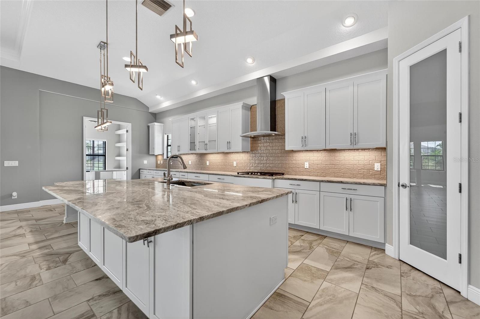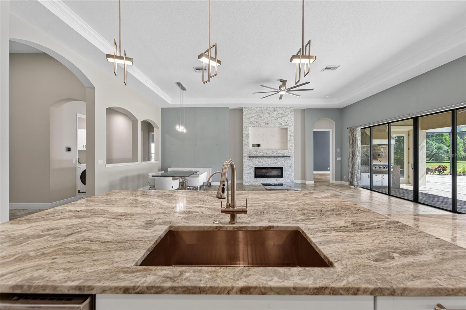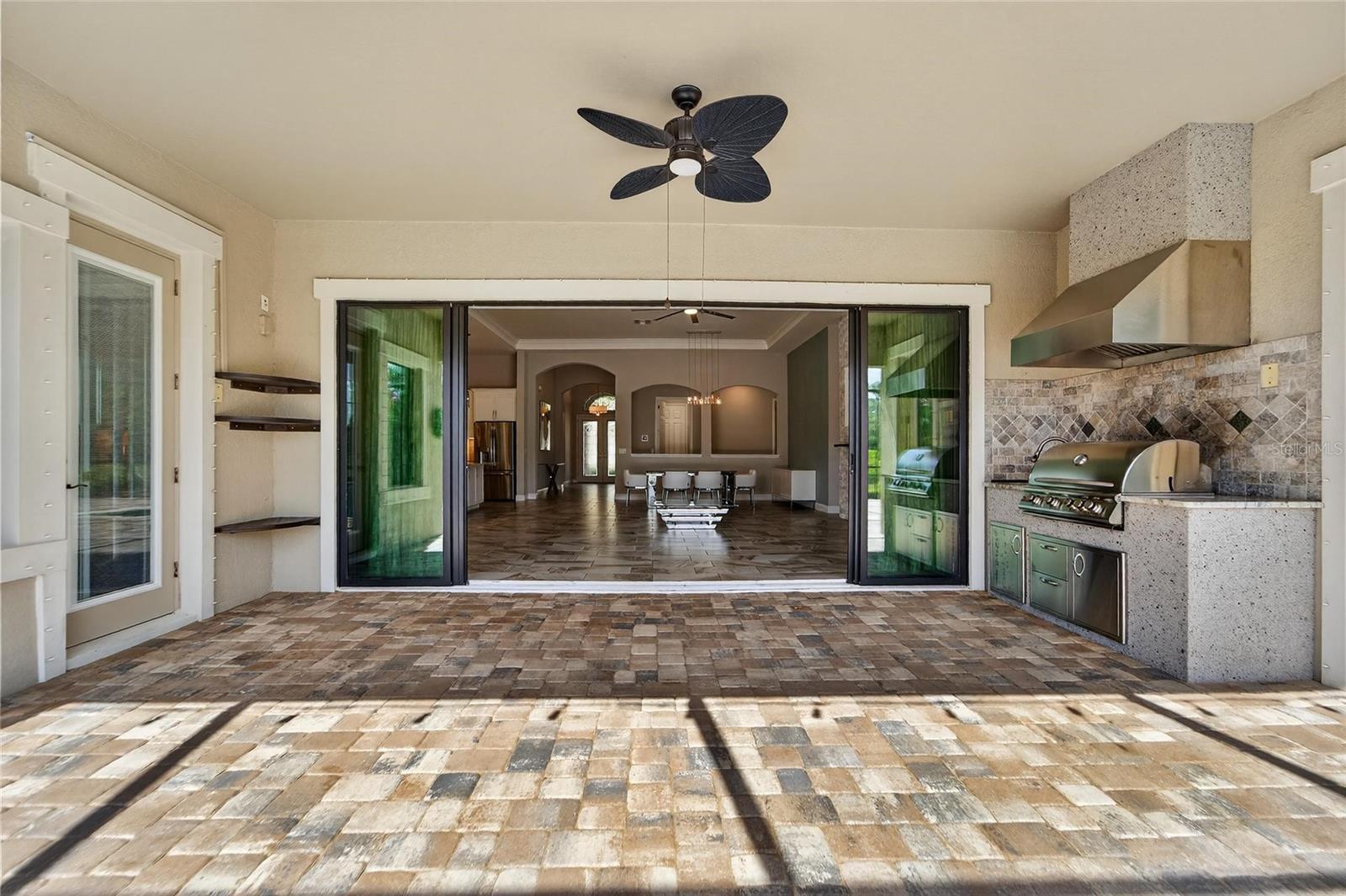 - Outdoor Grill, Outdoor Kitchen, Rain Gutters, Sidewalk, Sliding Doors