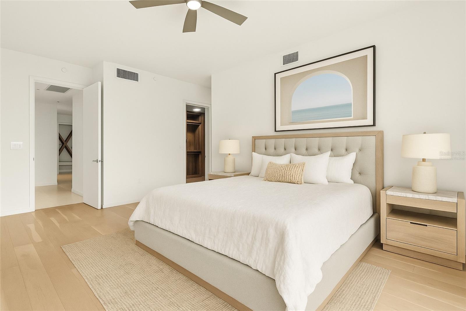 One or more photo(s) has been virtually staged. Experience the epitome of luxury coastal living in this stunning, one-of-a-kind residence at Serena by the Sea. Unlike any other home in the community, this exclusive offering combines unmatched privacy, elegant modern design, and premier resort-style amenities—making it truly a MUST-SEE. From the moment you step inside, you’ll be captivated by the bright, airy, and open ambiance that flows seamlessly through the gourmet kitchen, living, and formal dining areas. Expansive sliding glass doors open to a completely private terrace with its own gated entrance from the pool area, creating a rare indoor-outdoor living experience perfect for both relaxation and entertaining. The Italian-designed kitchen is a showpiece, featuring a striking waterfall marble island, custom Italian cabinetry, and a full suite of top-of-the-line Gaggenau stainless steel appliances—including a built-in coffee station, French door refrigerator with extra-large freezer, built-in oven with additional Combi-microwave convection oven, 5-burner gas range, and dishwasher. The primary suite is a serene retreat, offering terrace access through sliding glass doors, a spa-inspired ensuite bath with a frameless glass rainfall shower with dual showerheads, soaking tub, and a custom built-in walk-in closet. A split-bedroom layout ensures privacy for guests, with both the second and third bedrooms offering ensuite bathrooms, built-in closet systems, and sliding doors that open to the expansive rear patio—an ideal canvas for creating your own tranquil zen garden or lounge space. A versatile bonus room provides the flexibility for a home office, den, or creative studio. This sophisticated residence is equipped with dual HVAC systems with separate thermostats, motorized solar shades, custom draperies, and designer flooring throughout—including upgraded porcelain tile, engineered hardwood, and ceramic tile. Additional conveniences include a large laundry room and climate-controlled storage. Residents of Serena by the Sea enjoy 23,000± SQFT of world-class, resident-only amenities, including: 24/7 Concierge, Zero-edge heated saltwater pool with private cabanas, Outdoor kitchen and sunset fire pit lounge, State-of-the-art fitness center, European-style spa with sauna, cold-plunge bucket, massage suites, jacuzzi, and relaxation lounge, Exclusive access to concierge wellness services through a preferred provider.