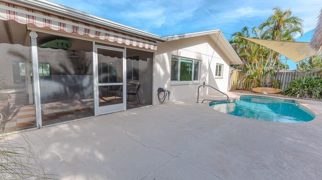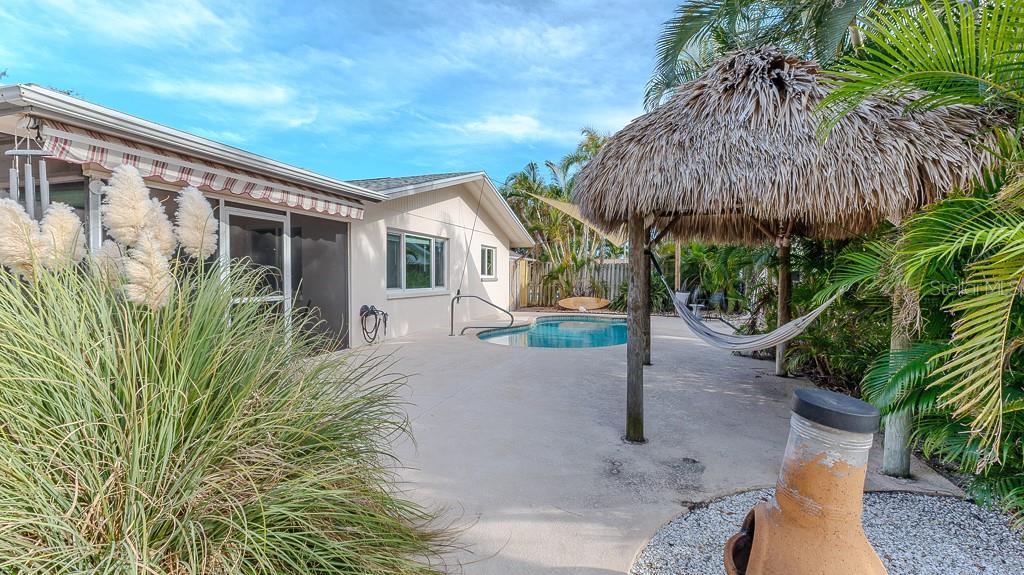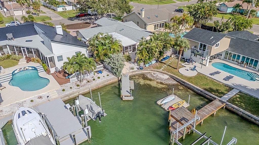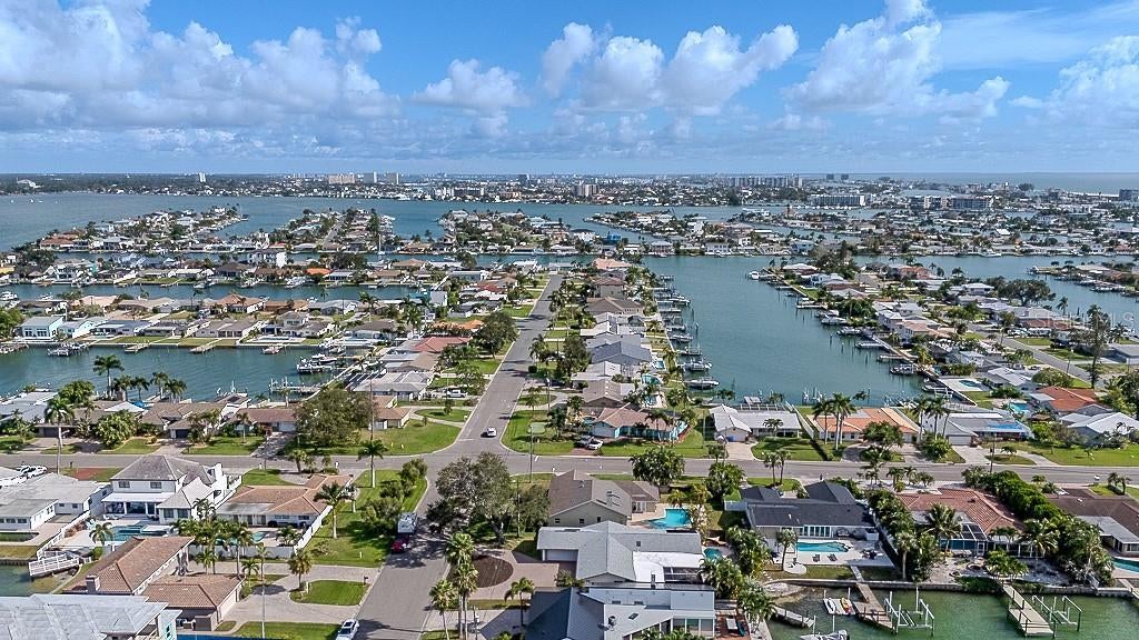 Treasure Island Canal-Front Paradise – 4BR/3BA Single Story with Pool & Dock!! Welcome to your dream waterfront home in beautiful Capri Isle in Treasure Island. This stunning one-story canal-front home offers incredible curb appeal, with a huge pavered circular driveway that provides plenty of parking for family and guests. Inside, the open-concept floorplan is designed for both comfort and entertaining, with a spacious living room that flows seamlessly into the dining and kitchen areas. The master bedroom, kitchen, dining room, and living room all enjoy views of the Intracoastal Waterway, creating a serene backdrop for everyday living. The home features four bedrooms and three bathrooms in a split floorplan design, providing privacy and flexibility for families or guests. The primary suite includes a versatile den or multi-use space and a newly renovated bathroom complete with a freestanding tub, shaker-style vanity, elegant mirror, and designer lighting. Bedroom two offers its own ensuite bathroom with a pedestal sink and standalone shower, while the guest bath includes a pedestal sink and tub/shower combination. At the heart of the home, the kitchen boasts updated shaker cabinets, quartz countertops, an undermount stainless sink, can lighting, and a skylight that fills the space with natural light. Easy-care laminate flooring runs throughout the home, enhancing its fresh, modern appeal. Outdoor living is equally impressive. A solar-heated pool with a brand-new pump (2025) includes a deep-water swim-out and is surrounded by plenty of deck space for sunbathing. A huge screened lanai with an expansive under-roof entertaining area is perfect for gatherings, while a Tiki Hut adds to the island-style atmosphere. The property’s canal frontage includes a private boat dock with direct access to the Intracoastal Waterway, making it ideal for boating, kayaking, paddleboarding, and water enthusiasts. This home has been carefully updated for peace of mind, with a new main roof in 2020, new flat roof in 2016, storm-rated windows and doors in 2021, and a brand-new AC, electrical system, and solar water heater in 2025. Located just minutes from the white sandy beaches of Treasure Island, as well as popular restaurants, shops, and attractions, this home combines waterfront living with everyday convenience. Don’t miss the opportunity to make this exceptional canal-front property your own and enjoy the best of Florida living.