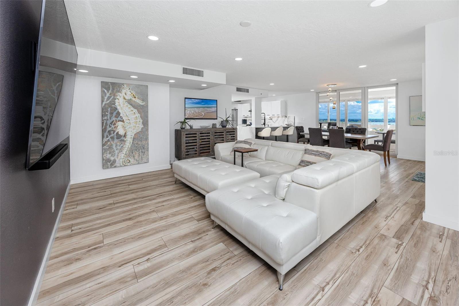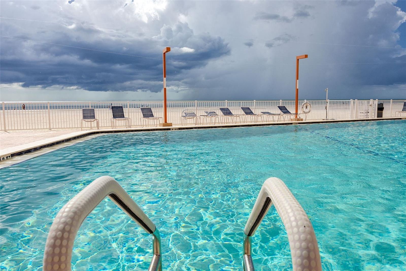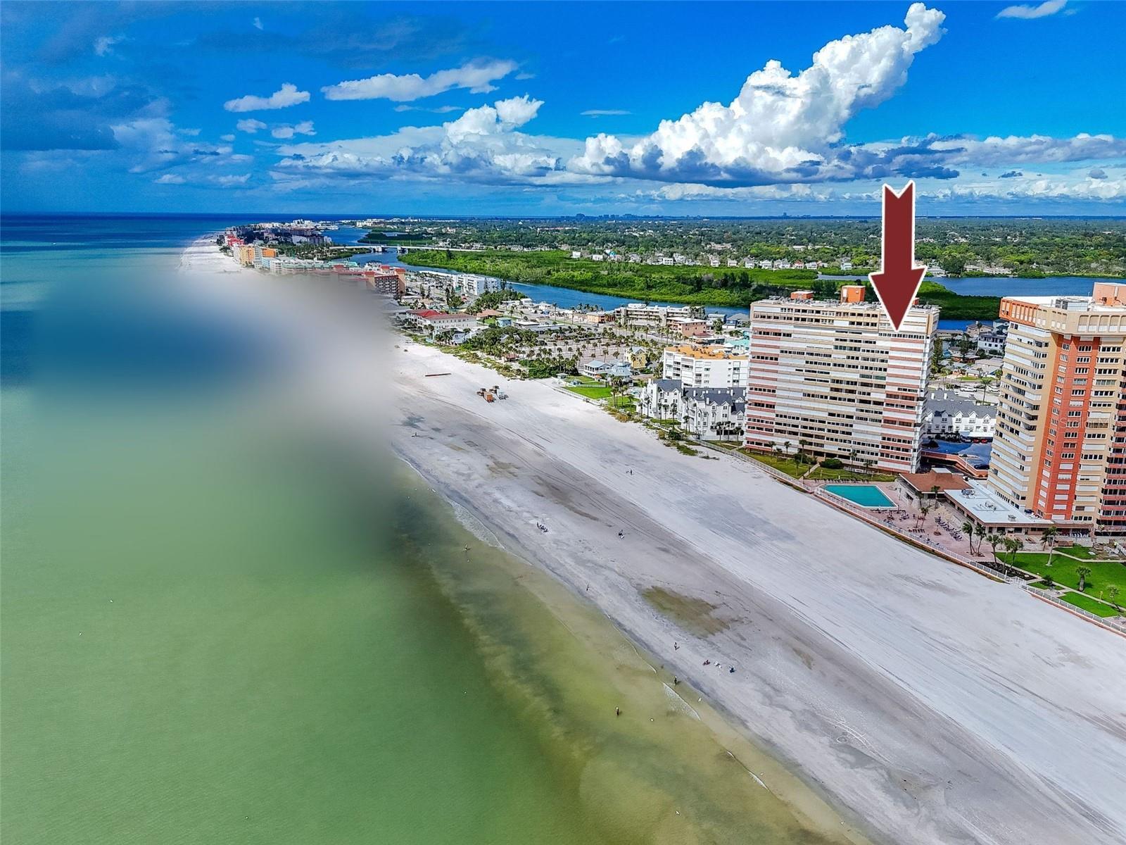 If you have been waiting for that perfect, rarely available 3 bdrm 2 bath END CORNER UNIT beachfront condo with a wrap around balcony and direct views of the Gulf of America, that day is here! Sunrises and sunsets are plentiful on the approx. 350 sq ft balcony with direct beach views. The front entrance to the condo offers another privately gated balcony with 123 sq ft for views of Boca Ciega Bay and beautiful skylines of nearby cities. Here you get the best of both worlds with direct beachfront AND Intracoastal views. All balconies have hurricane shutters that also help in keeping the condo cool on hot summer days. The owners have extensively renovated the unit ceilings to floors. The very large kitchen offers not 1 but 2 counter height islands with enough seating room for 6. Quartz counters tops with matching quartz backsplash and the highly desired waterfall feature and pop-up outlets. All lower cabinets have pull-out soft close drawers, under cabinet lighting, 2 Pantry closets and recessed lighting. All 3 bdrms are good sized, recessed lighting throughout the home, newer (2023) sprinklers, CAT 5e ethernet, Full size dining room and living room, all flooring is matching LVP throughout the home, water views from every room except bathrooms. The 16th floor only has 3 other units. There is even a 4.5’ x 5’ storage unit for your beach chairs, umbrellas, holiday decorations etc. located on the garage level making it easy to keep sand out of the condo. This community offers 24/7 guarded & gated security, visitor parking, bike storage racks in the garage, temperature-controlled pool, The Beach Clubhouse is undergoing renovations that include a billiard room, gym, ballroom, card room and library. Building 3 is currently undergoing exterior painting should you notice the scaffolding in various areas. All room sizes are approximate and to be verified by buyer.
