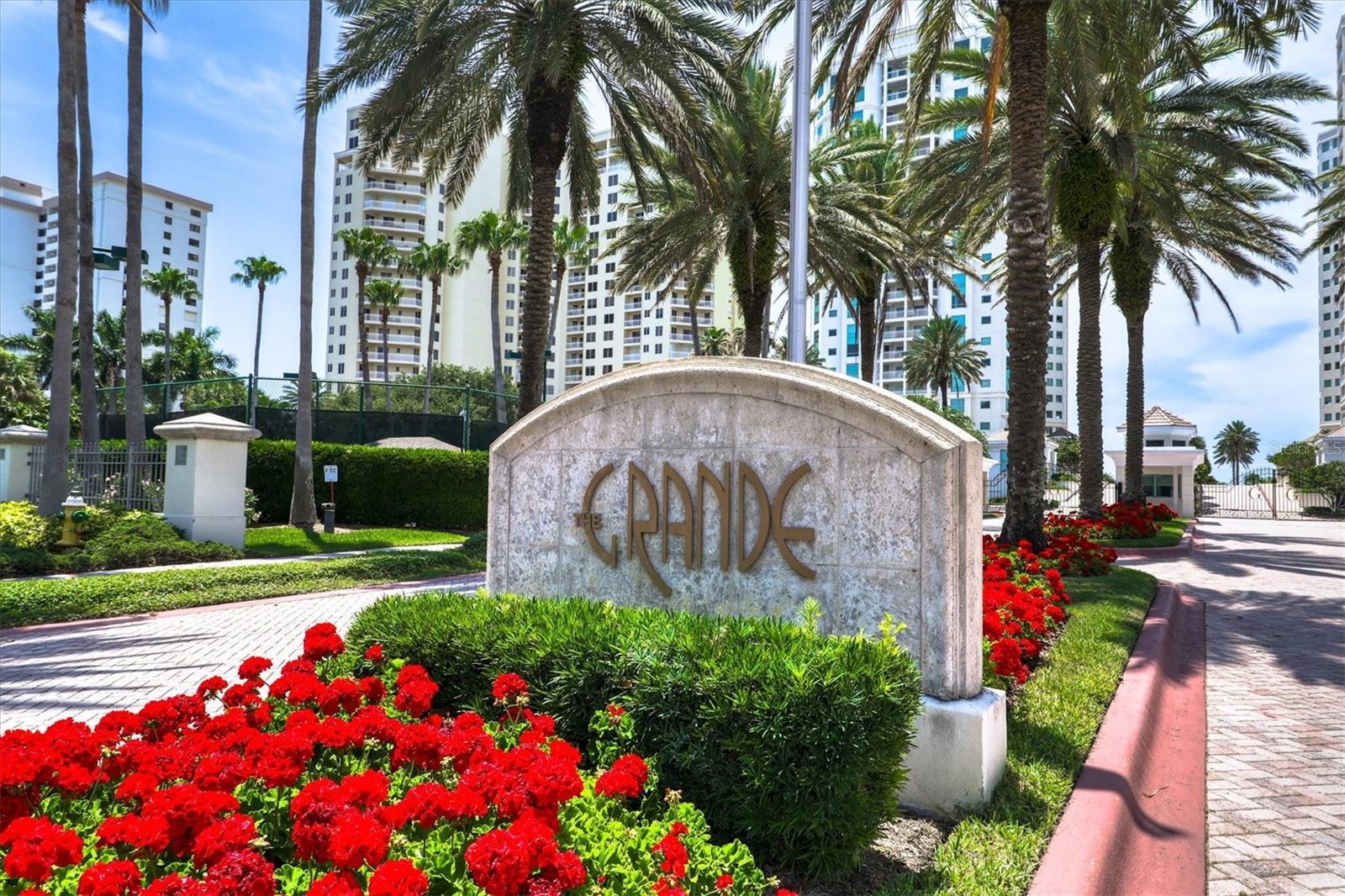 Under contract-accepting backup offers. LUXURIOUS GULF-FRONT 12th FLOOR RESIDENCE WITH BREATHTAKING GULF AND INTRACOASTAL VIEWS. Nestled within the gated community of The Grande on Sand Key, this southwest facing condo offers an unparalleled blend of beauty, timeless elegance and pride of ownership. From the moment you step into the grand foyer, you’ll be captivated by the sparkling water views and refined design curated by the esteemed designer Judy Miller along with a world-travelled collection of artwork and signature pieces (could be sold furnished). The open-concept is a masterpiece of sophistication, featuring natural bamboo flooring, crown moldings, and built-in lighting and surround sound, perfect for an immersive entertaining experience. The gourmet kitchen is in the heart of the home offering panoramic Intracoastal and Gulf views, travertine flooring, stainless steel appliances, granite counters and backsplash, custom cabinets with pull-out drawers, a spacious island with additional storage, wine fridge and dry bar. Enter through the double French doors to discover the master suite, a private retreat featuring double walk-in closets with built-ins, a spa-inspired bath with a walk-in shower, soaking tub, and double sink vanity finished with exquisite Crema Marfil marble counters and floors. Your guests will appreciate the reconfigured split plan with 2 additional guest suites with an added door for quiet and privacy. The larger guest bedroom features a king-sized bed (can be reconfigured to two twin beds) and an en-suite bath updated with new fixtures, marble flooring and Calacatta marble counter tops. Step outside to enjoy unobstructed Gulf views stretching north towards Clearwater Beach, the sound of waves brushing against the shore and a front-row seat to the spectacular New Year’s fireworks. The window treatments, including blackout shades, custom drapes, and tinted windows, enhance the ambiance and efficiency. Additional Features: NEW AC 2024, NEST thermostat, TVs in every room, Laundry Room with Full-sized washer/dryer, cabinet storage and utility sink, PREMIUM underbuilding parking #49 and storage locker. At The Grande, you'll be greeted by a resort-style ambience with an array of amenities that cater to your every need. Take a dip in one of two pools, perfect your backhand on one of the two clay tennis courts, exercise in the fitness center, unwind in the Sauna, rejuvenate in the outdoor spa or relax on pristine Sand Key Beach. Convenient location with the Shoppes of Sand Key across the street with waterfront dining, beach boutiques, ice cream, and even Dunkin Donuts! With the resort amenities, unique design, and incredible location, this stunning residence delivers THE BEST in coastal living. Schedule your private tour today to experience this exceptional Gulf-front retreat! **Check out the 360 in Virtual Tour and Video Tour in Virtual Tour Links!**