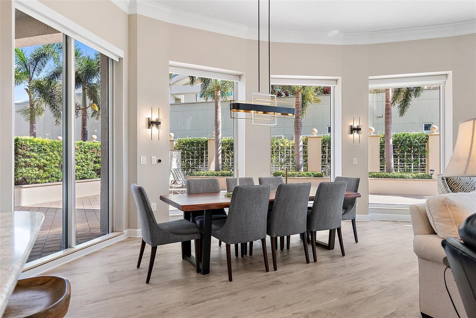 Step into unparalleled elegance with this exclusive 3-bedroom, 2.5-bathroom condo at The Florencia, being the only unit on the third floor for ultimate privacy and prestige. Spanning 2,500 square feet with an expansive 4,000 plus square foot terrace, this residence offers a seamless blend of sophistication and comfort. Upon entry, be greeted by 12-foot ceilings and luxurious LVP flooring throughout the foyer, kitchen, great room, and bathrooms, complemented by plush carpet in the bedrooms. Hunter Douglas electric window treatments adorn every window and slider, enhancing privacy and ambiance at the touch of a button. The kitchen is a culinary masterpiece, featuring a remodeled layout with an oversized peninsula, Café slide-in convection oven, induction cooktop, KitchenAid Trash Compactor, Bosch Dishwasher and a seamlessly integrated Subzero refrigerator matching the cabinetry. Quartz Cambria countertops and under-cabinet lighting add a touch of modern elegance, while the walk-in pantry and built-in desk nook with custom cabinetry ensure both functionality and style. The great room boasts a media wall with built-in beverage refrigerator, Hoshizaki ice maker, wine rack, and wet bar, perfect for entertaining guests. Designer light fixtures and an accent tile wall elevate the ambiance, while additional recessed lighting sets the perfect mood. The oversized primary bedroom offers a serene retreat with a sitting area, a slider to the outdoor terrace, and an expansive closet with custom built-ins, two safes and a locking jewelry drawer. The updated primary bathroom features custom cabinetry, quartz Cambria countertops, a remodeled shower, a smart Toto washlet in the water closet, smart faucets, and three smart light-up mirrors. Both the guest bathroom and the powder room have been meticulously updated with quartz Cambria counters and light-up mirrors, with the guest bath featuring a smart faucet and luxurious walk-in shower. Additional features include two premier parking spaces, two storage spaces (one just outside the condo door and one in the garage), crown molding throughout the great room and foyer, an updated laundry with custom cabinetry and Electrolux appliances. Residents of Florencia enjoy access to a wealth of amenities, including 24-hour concierge service, a third floor amenity deck with heated pool and spa, steam rooms, saunas, fitness center and Park Room, which is a room available for resident meetings, parties or other social events and includes a kitchen, bar, fireplace, billiards room and tvs. With its prime location just steps from the waterfront and downtown attractions, this condo offers the epitome of urban luxury living. Located in the epicenter of downtown St. Pete, you are only blocks away from the Pinellas Trail (a 50 mile walking and biking trail that stretches across the county) and surrounded by a mecca of dining options, world renowned museums, shopping boutiques, art galleries, theaters, sports venues, waterfront walking trails, parks and more. St. Pete is a premier arts community and a truly special place to call home.