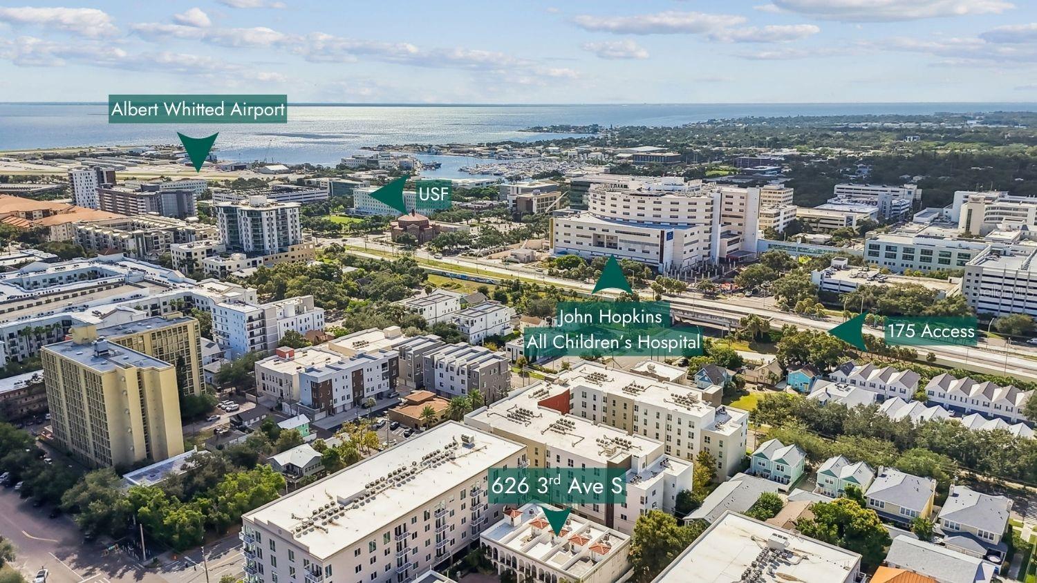 Experience the quiet side of downtown while staying within a few blocks of amazing restaurants, markets, and scenery that downtown St Pete has to offer! Though located just over 1/10th of a mile from the 6th Street onramps to I-175, this home provides a quiet refuge from the bustle and excitement of St Pete's thriving downtown. This home is perfect for those who want some solitude but close and easy access to all the great options found downtown. Rococo, Brick and Mortar, The Lure, and more are just 1-3 blocks away, and not one but TWO Publixs to choose from within that same 3 block trip. In addition to all that, Tropicana Field, St Pete's beautiful waterfront, Al Lang Field, Mahaffey Theater, the Dali Museum, St Pete Marina, and Albert Whitted Airport (and the St Pete Grand Prix) are all within .65 miles. It is difficult to think of a place in the Tampa Bay area with more variety of options! However despite being so close to so many amazing things to do, this townhome is peacefully nestled with its own private garage with alley access, for worry-free (and parking pass-free) parking! This home features outstanding finishes and massive amounts of sunlight streaming into the living spaces. Providing just the perfect amount of warmth and comfort. From warm wood floors and rich cabinetry to granite countertops and a primary bedroom with its own balcony, this home delivers the perfect lifestyle for the peaceful city lover on the go. The study makes for an outstanding in-home reading corner or home office, while the spiral staircase takes you up to an amazing rooftop oasis, perfect for catching some sunshine. This home is in great condition, with a new Roof (2025), and HVAC (2018). Kitchen appliances have all been updated in the last 3 years as well. This home is an outstanding find and a rare gem located just 3 blocks south of Central Ave in beautiful downtown St Petersburg! Be sure to book your showing today, because this home will not be available for long!