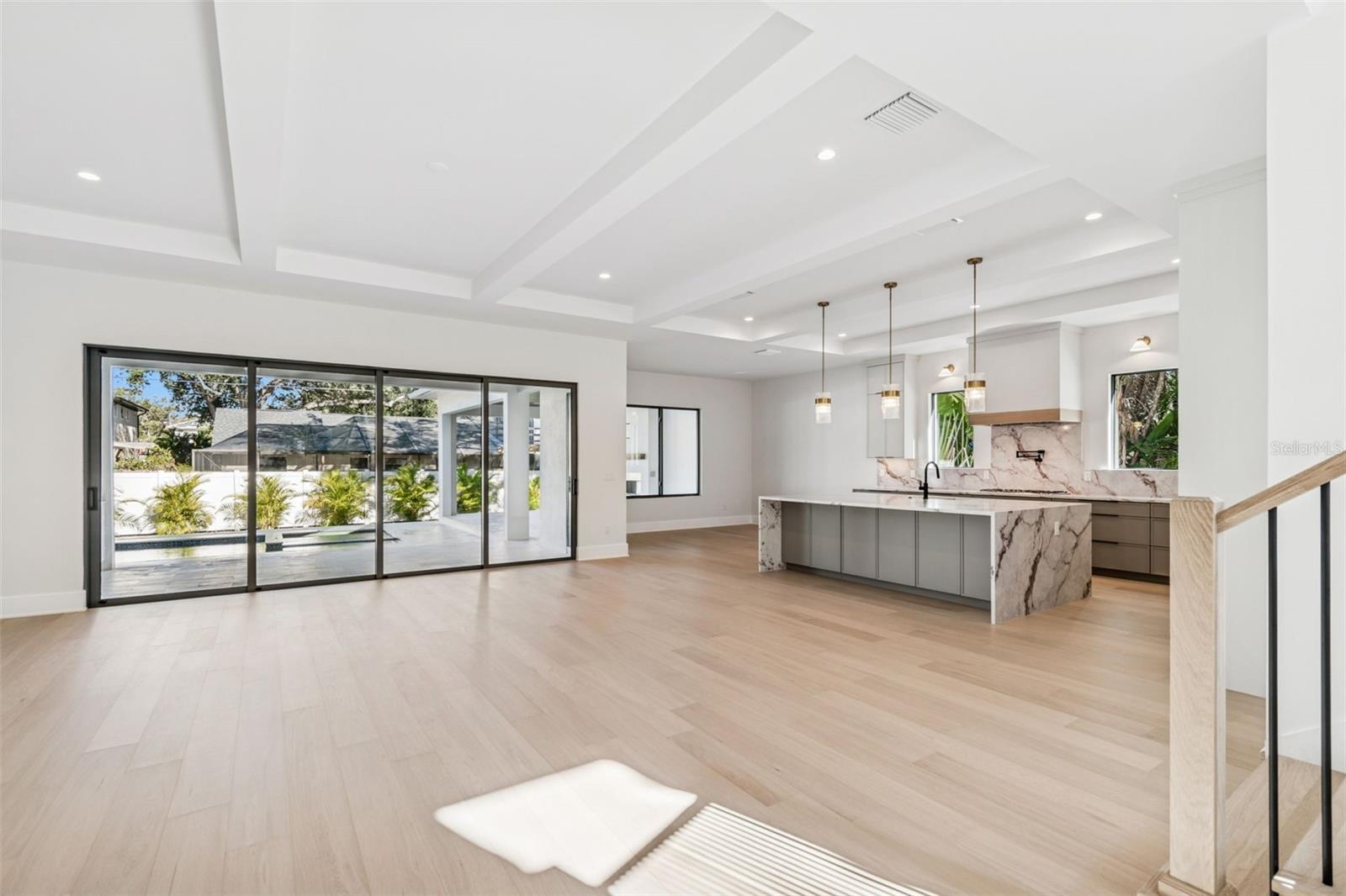 This gorgeous, newly completed new construction offers quality craftsmanship and immediate move-in readiness. Luxury and lifestyle converge on a rare 13,000+ square foot lot in the heart of Sunset Park—one of South Tampa’s most coveted neighborhoods. This two-story residence is thoughtfully designed for refined family living, offering 5 bedrooms, 5 full bathrooms, a powder bath, private office, formal dining room, media and game rooms, and dual laundry rooms. A dramatic 22-foot foyer sets the tone, opening to an expansive great room with coffered ceilings and a chef’s kitchen equipped with Thermador appliances, a waterfall-edge island, custom cabinetry, and a walk-in butler’s pantry. Built with quality, resilience, and comfort in mind, the home features impact-rated windows and doors for peace of mind, along with Icynene open-cell spray foam insulation in the attic and between floors for superior energy efficiency and sound dampening. The flexible floor plan includes a downstairs guest suite and media room, with sliding glass doors that lead to a resort-style backyard complete with a saltwater pool and spa, full outdoor kitchen, covered lanai, gas fireplace, and additional green space ideal for play or entertaining. Upstairs, you’ll find three en-suite bedrooms, a media/playroom, and a luxurious owner’s retreat featuring dual walk-in closets and a spa-inspired bath with a freestanding soaking tub, oversized dual vanity, glass-enclosed shower, and abundant natural light. Centrally located just minutes from Tampa International Airport, top-rated schools, upscale shopping, award-winning restaurants, and Tampa Bay’s beaches—come see why this home is so special, tucked away on a quiet street in one of South Tampa’s premier neighborhoods. Please refer to the attached floor plans.