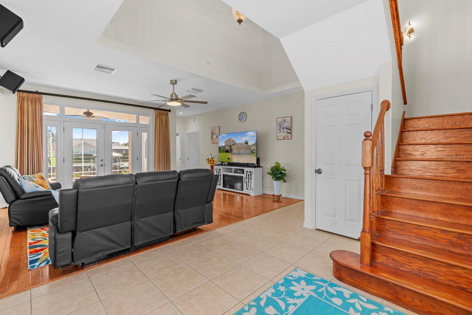 - Ceiling Fans(s), Eat-in Kitchen, High Ceilings, PrimaryBedroom Upstairs, Solid Wood Cabinets, Split Bedroom, Stone Counters, Thermostat, Tray Ceiling(s), Walk-In Closet(s), Wet Bar, Window Treatments
