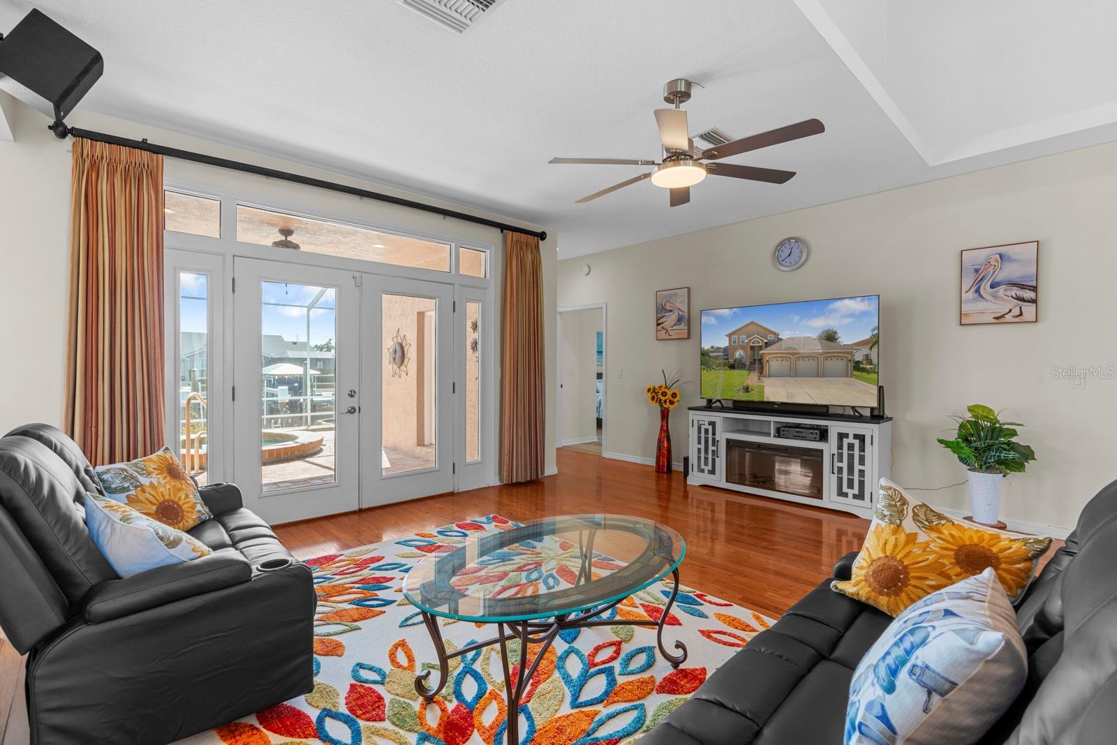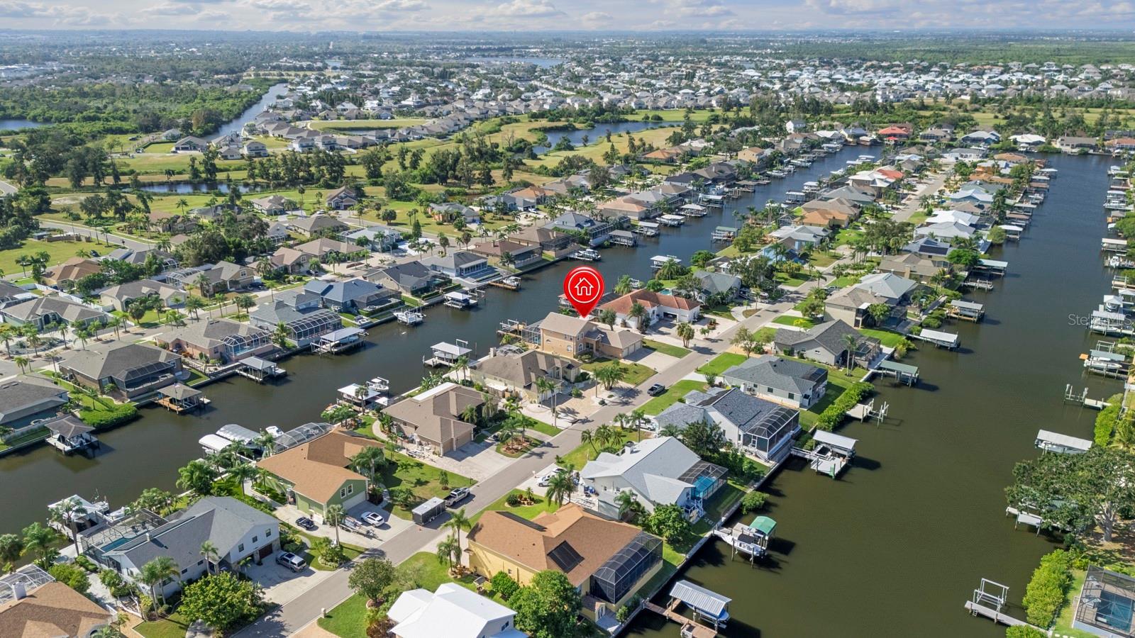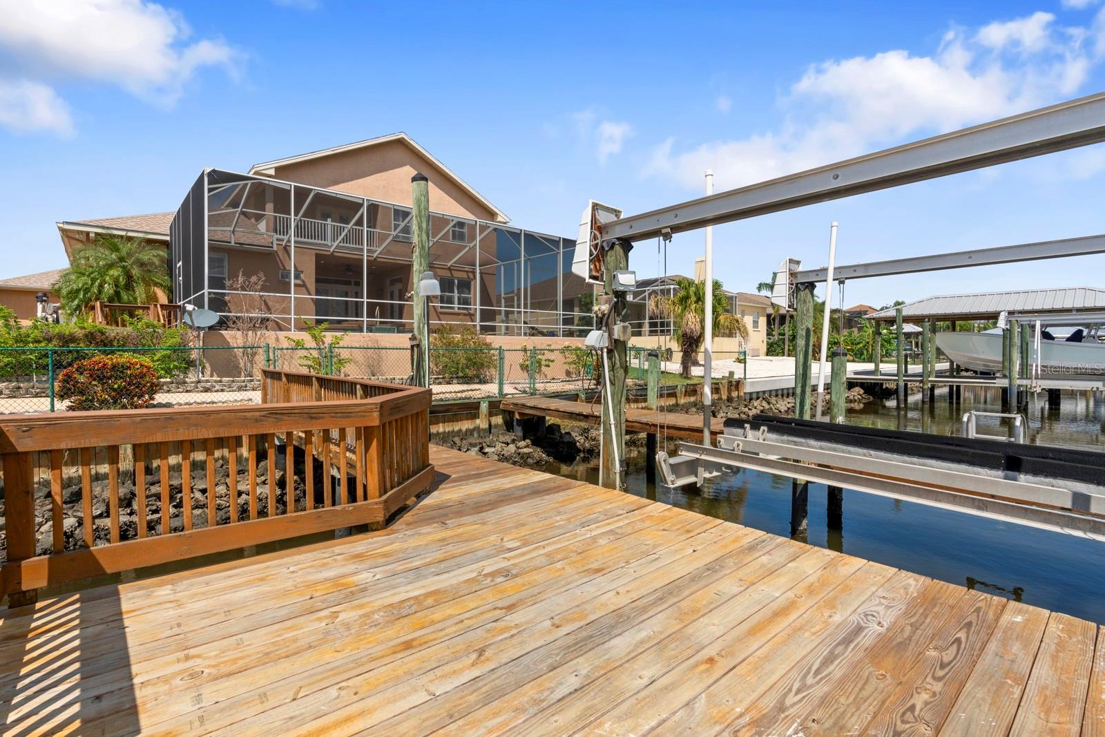 Freshly painted and move-in ready — fully furnished! With No CDD or HOA! Private Boat Dock and lift! Experience luxury waterfront living in this custom-built 4-bedroom, 3-bath, 3-car garage pool home on a canal. High ceilings, abundant natural light, and oversized double entry doors set the tone, opening to a great room with sweeping views of the pool and canal. The gourmet kitchen features 42” solid wood cabinetry, granite countertops, updated appliances, breakfast bar seating, and a beautiful backsplash—plus direct access to the lanai, pool, and boat dock. A formal dining room with a butler’s bar and built-in cabinetry is perfect for entertaining. The first floor features three spacious bedrooms, each equipped with luxury vinyl plank flooring and large custom closets. Two share a Jack-and-Jill bath, while the fourth enjoys an en suite bath that also serves the pool. Upstairs, the private owner’s retreat boasts a sitting area, private balcony overlooking the water, tray ceilings, and an updated spa-like bath with dual vanities, garden tub, walk-in shower, and his-and-hers custom closets—plus an additional walk-in for extra storage. A flex room with a wet bar and built-ins completes the second floor. Additional interior highlights include plantation shutters, double-pane windows, a water softener, and a spacious laundry room with built-in cabinetry. The spacious 3-car garage features high ceilings, perfect for accommodating a car lift. The outdoor oasis offers a covered lanai, a heated spa overlooking the pool and canal, a custom PebbleTec pool with pavers, and a 400-sq-ft dock with electricity, a 12,000-lb boat lift, and direct access to Tampa Bay and the Gulf. Recent updates: LVP flooring, water heater (2022), pool equipment (2021), HVAC (2018), roof (2016). Conveniently located near Tampa, I-75, and Gulf beaches. This Apollo Beach gem isn’t just a home—it’s a lifestyle. With endless opportunities for boating, entertaining, and relaxation, this stunning residence is ready for its new owner. All furniture is optional. High and dry after the hurricane — no water intrusion here, plus the home sits on a desirable elevation for peace of mind.