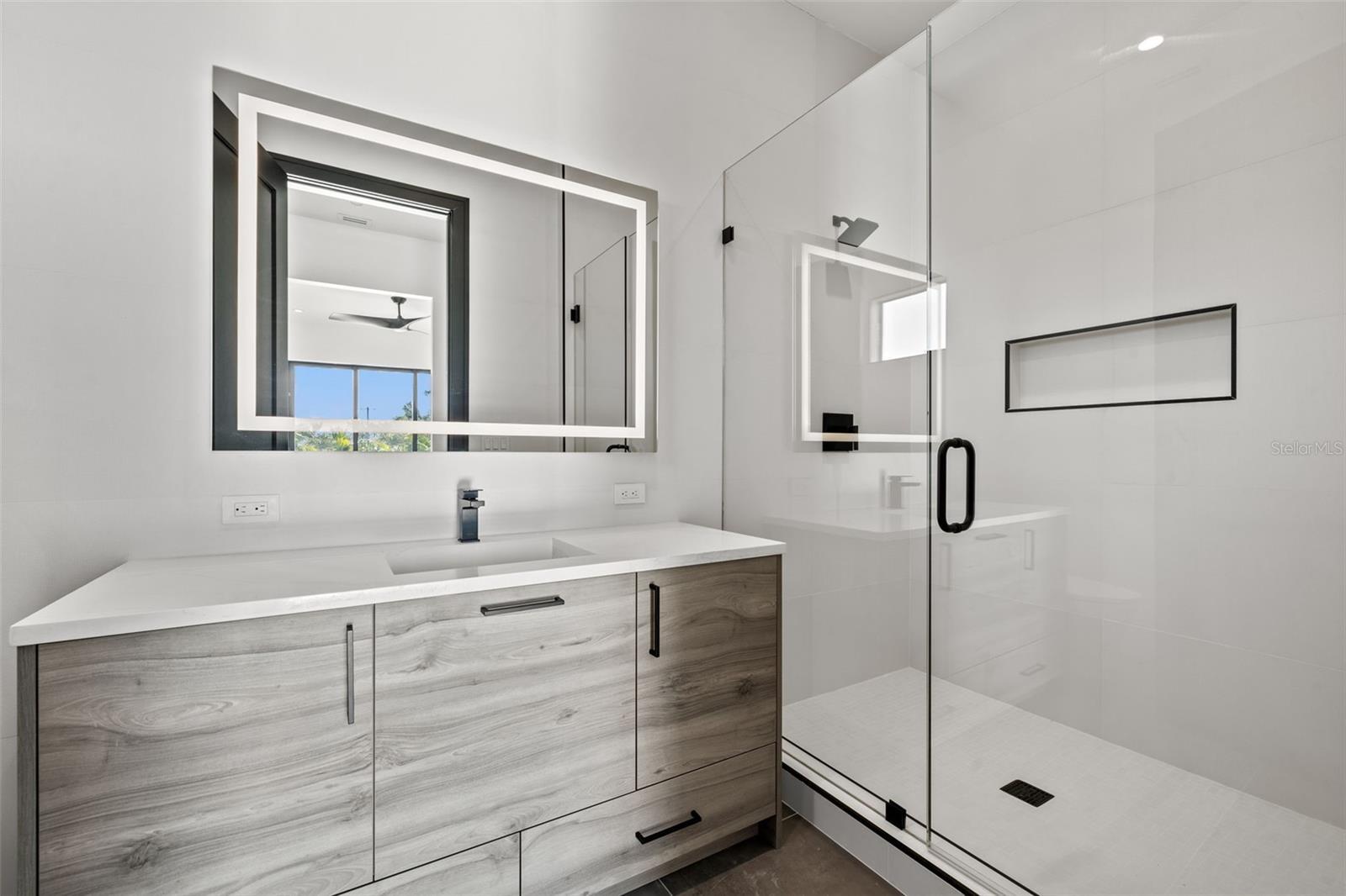 Under contract-accepting backup offers. Introducing this recently constructed masterpiece, expertly designed by renowned architect Thomas Lamb, showcasing a modern "block on block" design built atop a 9-course stem wall. Engineered for both style and resilience, this home features large hurricane-resistant windows by Energia Solar Windows, a fully adhered 60M TPO flat roof with gutters, and open cell foam ceiling insulation with Corefill 500 in block for exceptional energy efficiency. Three Trane AC units provide optimal climate control, including a two-zone system upstairs. Technology and luxury converge with a full Control4 smart home system, 18 Stealth Acoustics invisible speakers throughout, a Vantage customizable lighting system, 5 indoor/outdoor wireless access points, and a comprehensive security package including 7 Luma surveillance cameras and a Control4 DS2 Mini Door Station. The home boasts dramatic architectural elements such as 24’ vaulted ceilings in the living room, 16’ in the dining, and 12’ ceilings throughout the main level with 10’ ceilings upstairs. Italian-imported oversized porcelain tile, a floating steel staircase with hand-stained oak treads, and glass railings add elegance. The luxury elevator features an 8’ cabin, touchscreen controls, and oversized porcelain tile across three stops. The 17’ high two-car garage with a black-framed glass door allows for a lift to accommodate up to four vehicles. Interior highlights include two BioFlame fireplaces, linear vents, wall-hung toilets, LED mirrors, and floor-to-ceiling tile in all bathrooms. The kitchen is a chef's dream with grain-matched wood veneer cabinetry, gold hardware, built-in JennAir columns and coffee maker, an induction JennAir range, pot filler, Thermador wine column, and a quartz leathered-finish waterfall island. A hidden coffee bar/butler’s pantry is tucked behind custom office shelving. The master suite features a private balcony, seating nook, wet bar with refrigerator/freezer drawers, a custom LED-lit closet with motion sensors, and a spa-inspired bath with a smart tint window, Anthem digital Kohler system, ceiling-mount plumbing, soaking tub, and hidden-drain quartz sinks. Outdoors, enjoy an entertainer's dream space with an oversized patio, raised glass-tile spa with 8 jets and overspill, pool with 3 fountains, turf lawn, mature landscaping, uplighting, outdoor directional speakers integrated into the Control4 system, aluminum pergola, full Summerset-equipped kitchen with granite countertops, and hightop seating. Additional features include closed aluminum tongue-and-groove patio soffits, an underground irrigation/drainage system, and a standard new construction warranty package: 1-year workmanship, 2-year systems, and 10-year structural coverage under a 2-10 Builder’s Warranty. This residence is the perfect balance of innovation, sophistication, and thoughtful design. Nestled in the highly sought after Snell Isle neighborhood, this home offers more than luxury—it delivers a lifestyle. Snell Isle is a golf cart-friendly community with easy access to the Vinoy Golf Club, downtown St. Pete, the iconic St. Pete Pier, and the city's vibrant arts, fashion, and dining scenes. Whether heading to a gallery, waterfront restaurant, or boutique, everything is just a short ride away. Enjoy the perfect blend of coastal charm and city convenience in one of St. Petersburg’s most desirable locations.