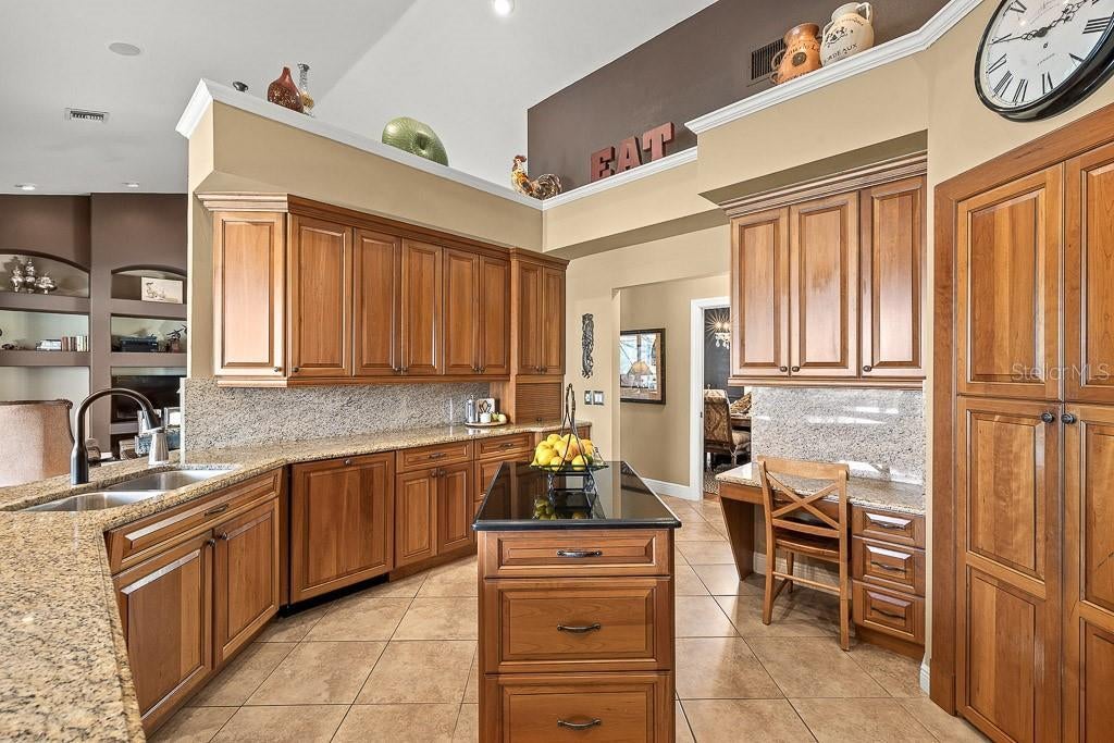 - Ceiling Fans(s), High Ceilings, Kitchen/Family Room Combo, Open Floorplan, Primary Bedroom Main Floor, Solid Surface Counters, Solid Wood Cabinets, Split Bedroom, Stone Counters, Thermostat, Walk-In Closet(s)