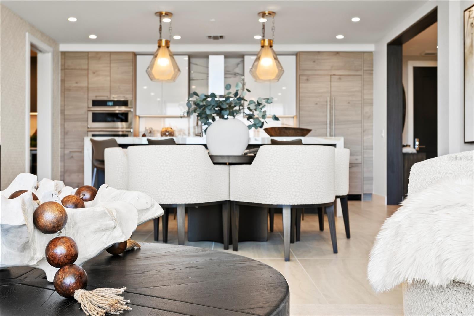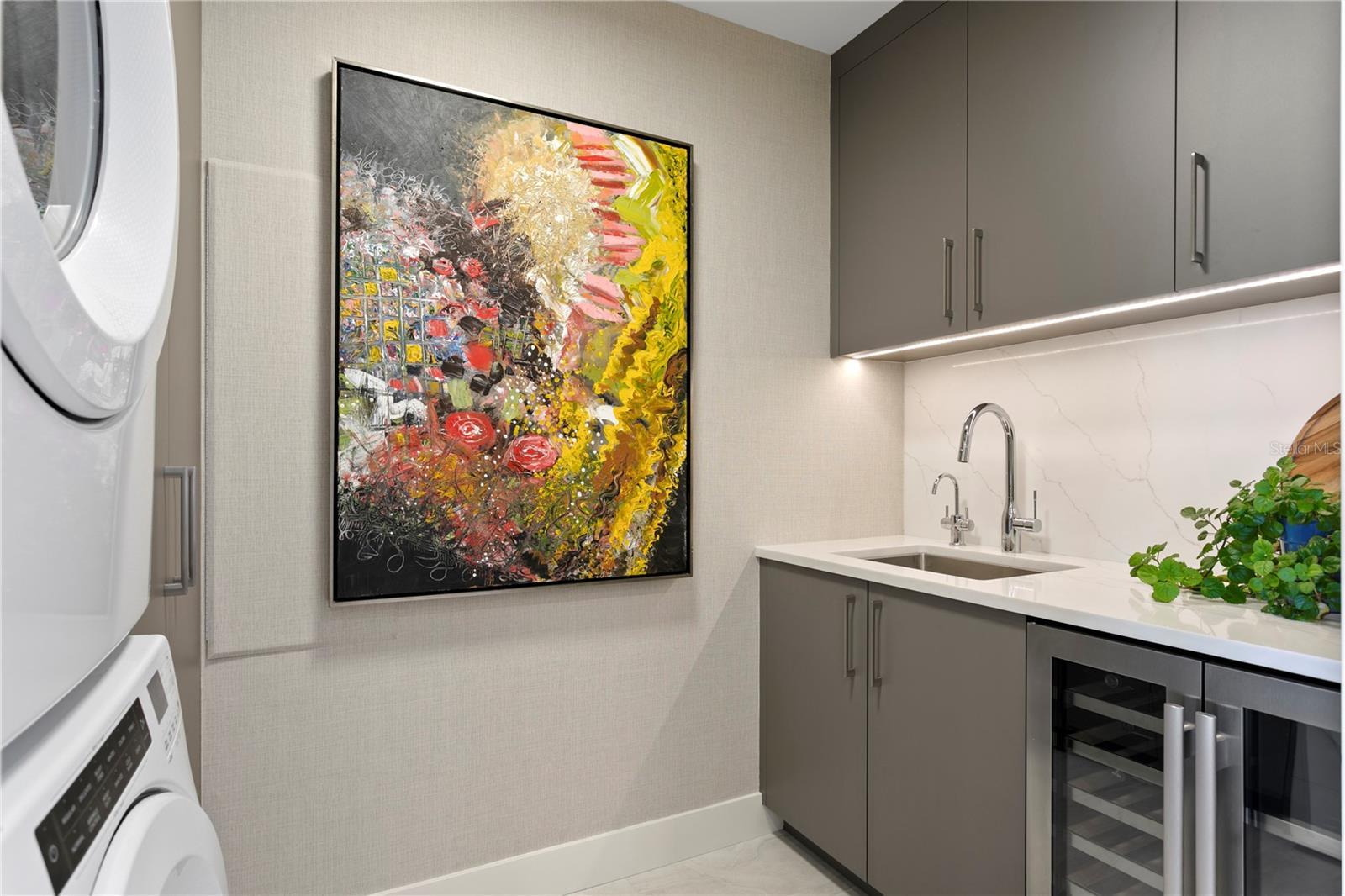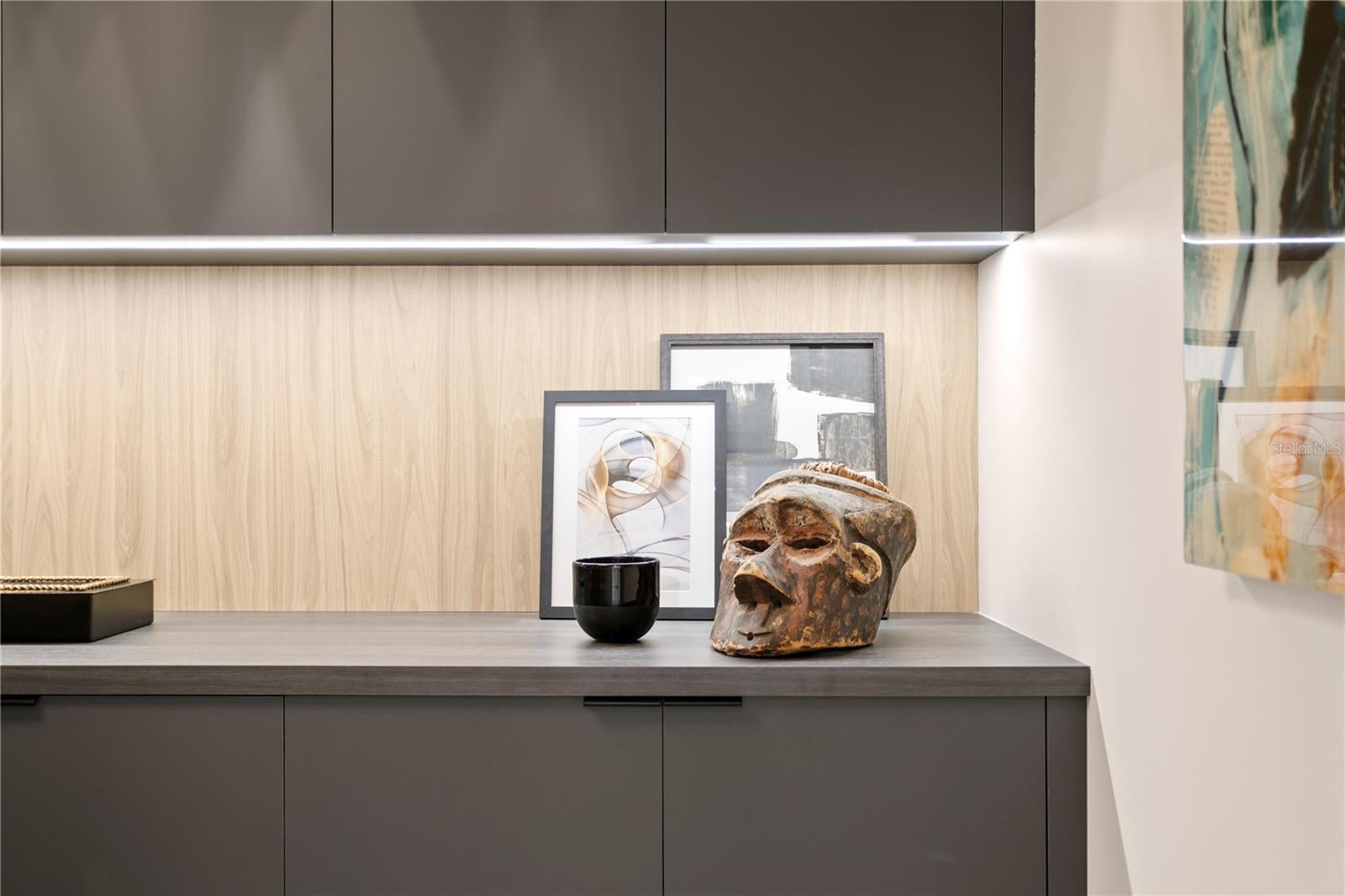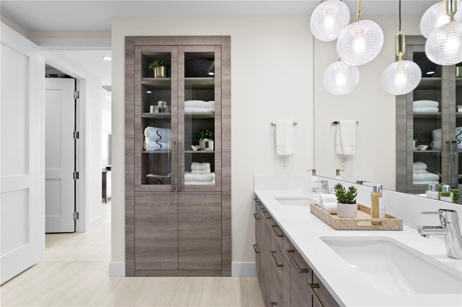 Fully Reimagined and designed in 2024, this new condo is a true masterpiece where every inch has been thoughtfully curated for the most discerning tastes. From the moment you step through the custom archway, the level of craftsmanship is evident, setting the tone for what's to come. The OPEN-CONCEPT LIVING SPACES are an absolute showstopper, featuring exquisite, HAND-SELECTED DESIGNER TOUCHES that elevate the space to another level of elegance. The main attraction is the CUSTOM MEDIA WALL WITH HIDDEN GUEST ROOM DOOR. The tone in the living room is set with THREE SILK-WRAPPED CHANDELIERS that illuminate, while a FRAMED ART WALL with TEXTURED WALLPAPER creates a bold statement. The ELEGANT TRAY CEILING with RECESSED LIGHTING enhances the sense of grandeur throughout the home. At the heart of this residence is a CHEF'S KITCHEN that is as beautiful as it is functional. The approx. 5'x11' EXPANDED ISLAND WITH A DOUBLE WATERFALL EDGE and concealed cabinetry, all WRAPPED IN SLEEK PORCELAIN, is a true work of art. The matching backsplash ties the entire space together in perfect harmony. The BUTLER'S PANTRY is a fusion of practicality and indulgence, complete with a WINE COOLER, QUARTZ COUNTERTOPS, CUSTOM CABINETRY, and laundry space, offering an unparalleled level of convenience. The DEN IS AN OASIS OF FUNCTIONALITY AND ELEGANCE, equipped with FULL-HEIGHT CUSTOM CABINETRY, an oversized chandelier that demands attention, and wallpapered accents for a refined, personalized touch. The OWNER'S SUITE OFFERS THE ULTIMATE RETREAT, combining peace and luxury with a WALLPAPERED ACCENT WALL, a DESIGNER CHANDELIER, and CUSTOM CLOSETS that are as stunning as they are spacious. The SPA-LIKE EN-SUITE BATH takes relaxation to the next level, boasting a CUSTOM LINEN CLOSET illuminated to highlight its beauty, along with three luxurious pendant lights. Every aspect of this home has been meticulously upgraded, from TILE FLOORING and LUTRON ELECTRIC BLINDS to thoughtfully curated designer finishes on walls, trim, and ceilings. As a resident of Saltaire, you'll enjoy world-class amenities including a resort-style pool, a state-of-the-art fitness center, expansive club rooms surrounded by glass that bring the outdoors in, and a pet-friendly dog park with a washing station. The 7th-floor terrace offers breathtaking panoramic views of the bay and downtown skyline, while the vibrant city life is just steps away from your front door. This is truly an extraordinary opportunity to live in a LUXURY HOME WHERE UNPARALLELED DESIGN MEETS EXTRAORDINARY CONVENIENCE. With the added peace of mind of the builder's warranty, this is a rare find in the heart of downtown.