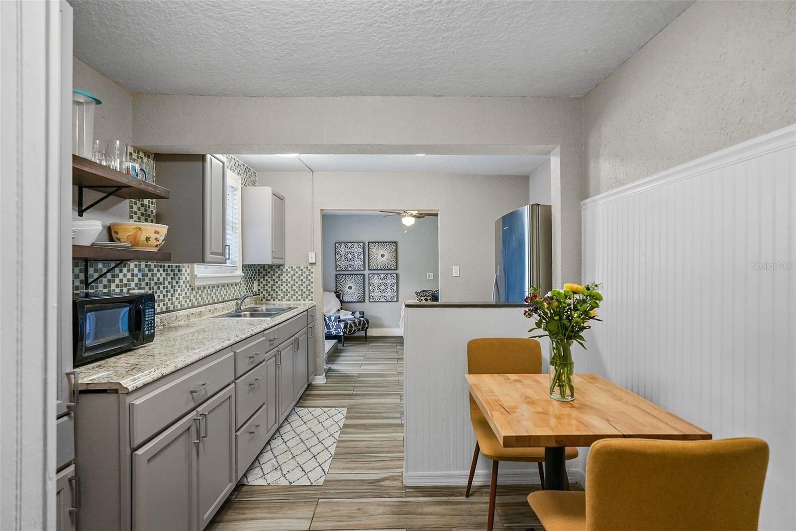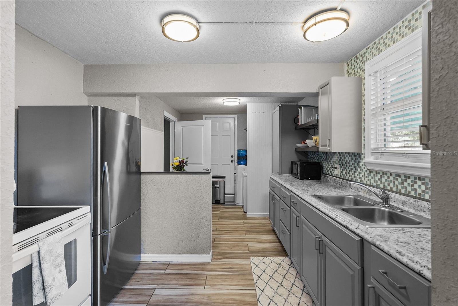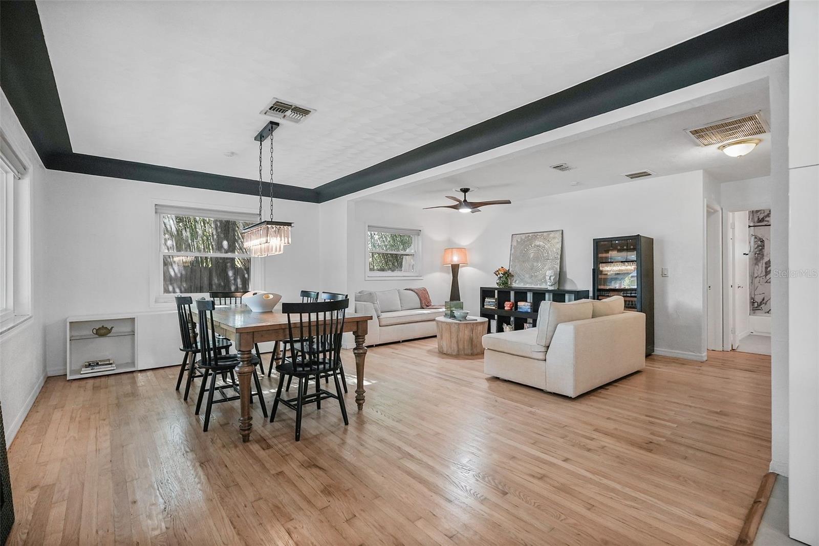 Nestled within the charming brick-lined streets of Historic Kenwood, this exceptional property offers a unique blend of historic charm and modern comfort. The main home features 2 bedrooms and 2 bathrooms across 1428 sq ft, along with a beautiful Florida Room, providing a bright and versatile space for relaxation or entertaining. It also boasts a private driveway, a rare and attractive feature in this highly sought-after neighborhood. In addition to the main house, this home features an in-law suite/cottage with its own entrance and driveway, which offers 740 sq ft of additional living space; ideal for extended family or rental income, with off-street parking for added convenience. Step inside the main residence, where recent upgrades enhance both style and functionality. New hurricane-rated windows from A-1 Windows and Doors flood the living spaces with natural light. The kitchen has been fully renovated with smart LG appliances under a comprehensive 3-year warranty, complemented by a recent full kitchen remodel in 2025 that includes new floors, cabinets, tile, and lighting. The interior has been freshly painted, and the wood floors have just been refinished, creating a pristine atmosphere throughout. Outside the Florida Room, the courtyard features a recently installed fence and a relaxing hot tub spa, perfect for unwinding after a long day. A recently remodeled front yard with beautiful landscaping further enhances the curb appeal of this historic gem. The cottage part of the home offers additional comfort and privacy, featuring updated appliances, new wood tile flooring, and a large deck. While the cottage has its own entrance and driveway, a door that once connected it to the Florida Room has been closed but left intact. This offers the possibility for a future buyer to create an Owner's Suite by reuniting the two spaces as one home, combining both for ultimate privacy and functionality. Located just steps from Seminole Park and surrounded by the vibrant community of Historic Kenwood, residents enjoy being part of an artist enclave with activities like Bungalow Fest and monthly parties organized by members of the Historic Kenwood Neighborhood Association (a voluntary HOA that is only $50 for two to join annually). The neighborhood is known for its walkability to Central Avenue in the Grand Central District, offering eclectic shops, independent restaurants, and a lively cultural scene. This is more than a home; it's a gateway to a vibrant community and a lifestyle rich in history and modern conveniences.