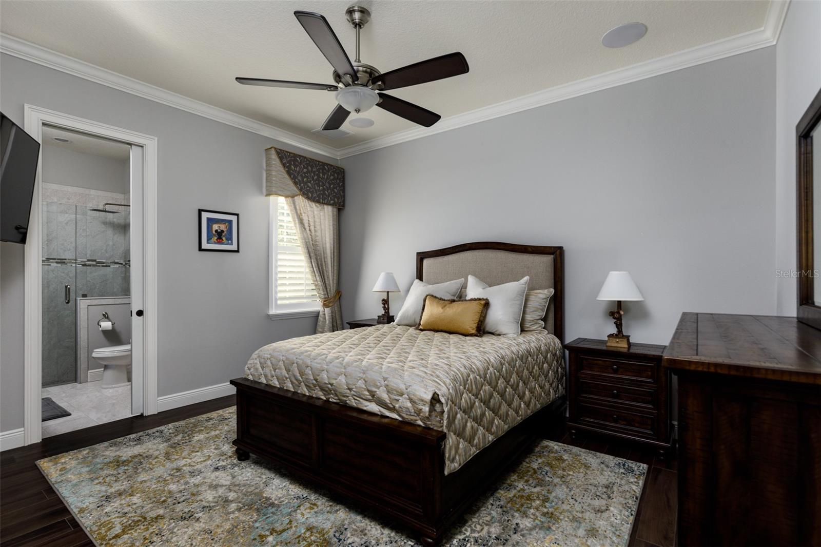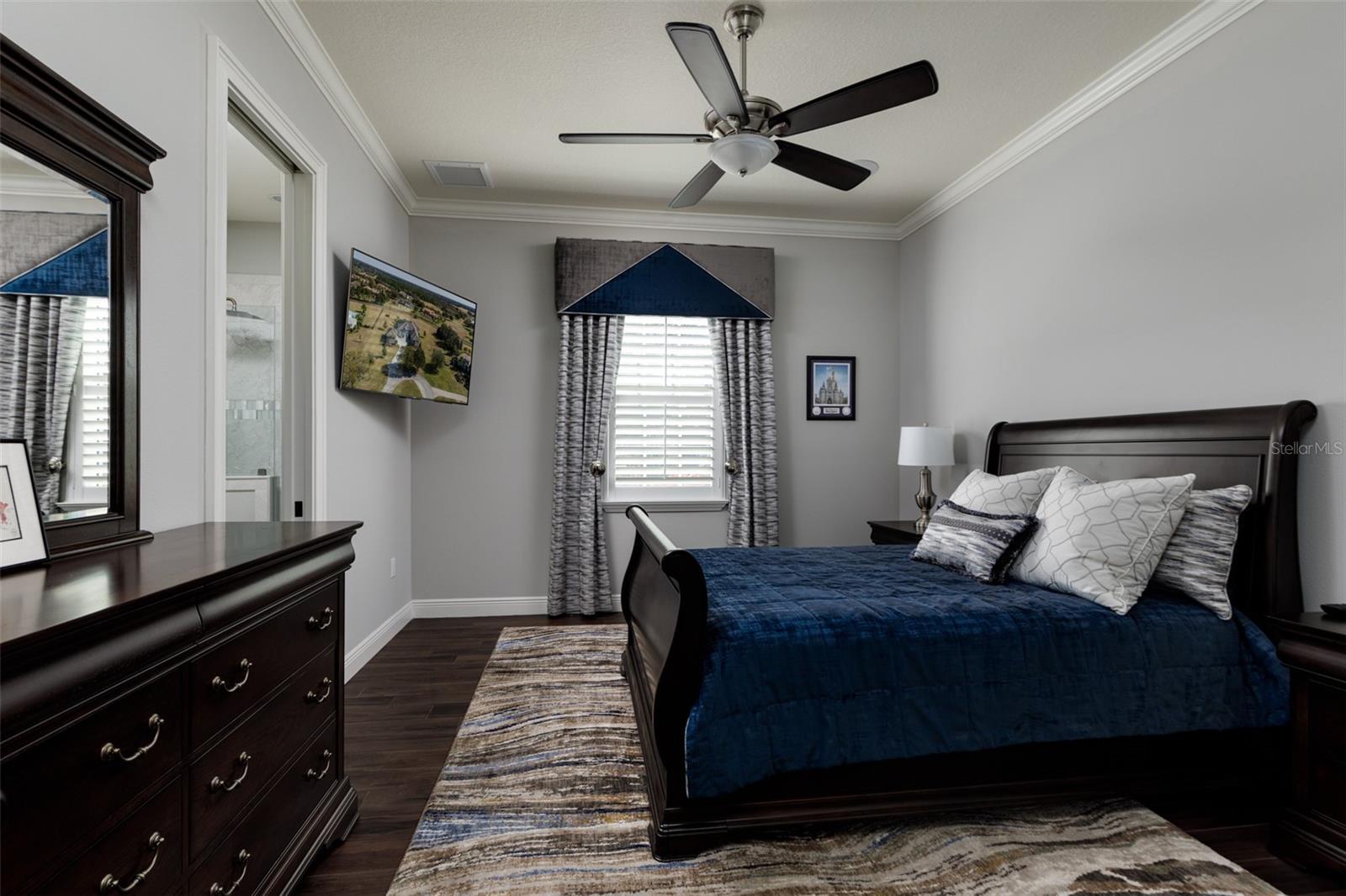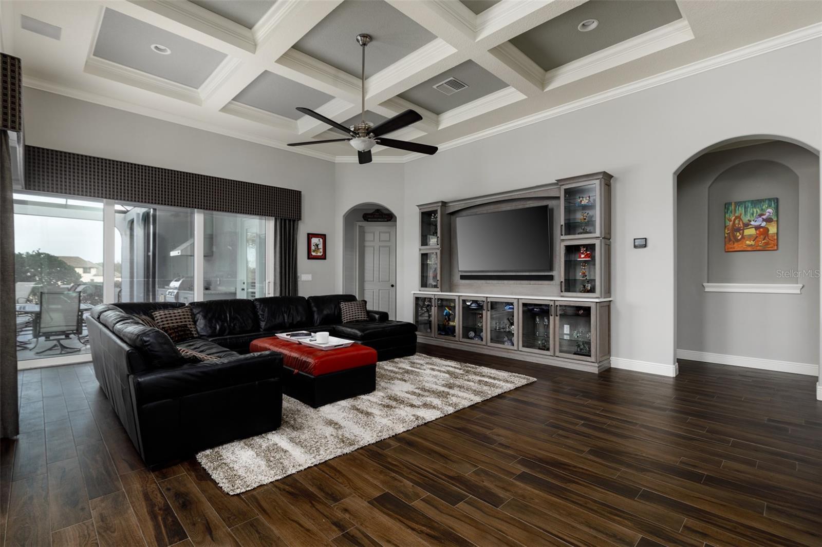 - Built-in Features, Ceiling Fans(s), Coffered Ceiling(s), Crown Molding, High Ceilings, Solid Surface Counters, Solid Wood Cabinets, Stone Counters, Thermostat, Tray Ceiling(s), Walk-In Closet(s), Wet Bar, Window Treatments