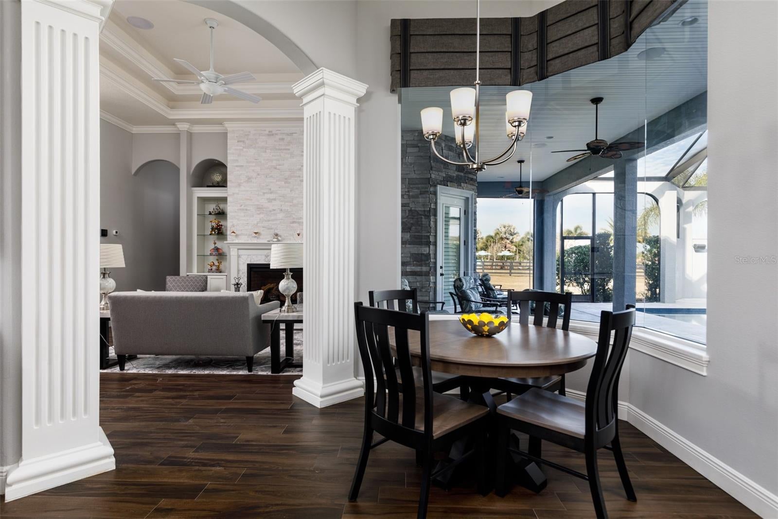 Step into luxury with this stunning Mediterranean-inspired custom home, designed for both comfort and style. From the moment you arrive, the arched details, stone accents, and manicured landscaping set the tone for resort-style living. Inside, soaring ceilings, elegant wood-look tile floors, accent columns, and a marble-trimmed fireplace create an inviting atmosphere, while the Control 4 smart system allows you to manage lighting, pool settings, security, and more right from your phone. The spacious floor plan offers formal and casual living areas, including a formal dining room, office, wet bar, and a cozy living room with fireplace. The owner’s suite is a true retreat with dual walk-in closets, spa-style bathroom with heated floors, soaking tub, and oversized shower built for two. Each additional bedroom comes with its own ensuite bath, offering privacy and comfort for family and guests. A custom theater room provides the perfect space for movie nights or game days. Outdoor living shines here—slide open the glass doors to a fully screened patio with a travertine deck, outdoor kitchen, dining space, fireplace, and a resort-style saltwater pool with spa and fire features. Whether lounging in the sun or entertaining under the covered lanai, this home is built for year-round enjoyment. Located in the exclusive gated community of Stonelake Ranch, residents enjoy access to a lakeside lodge, fitness center, boat ramp, equestrian trails, sports courts, and breathtaking views of Lake Thonotosassa. Just 20 minutes from both Tampa and Lakeland, this estate blends luxury, convenience, and privacy in one perfect package. *Use Stonelake Gate address to navigate to property: 10400 Oak Canopy Jct, Thonotosassa, FL 33592*
