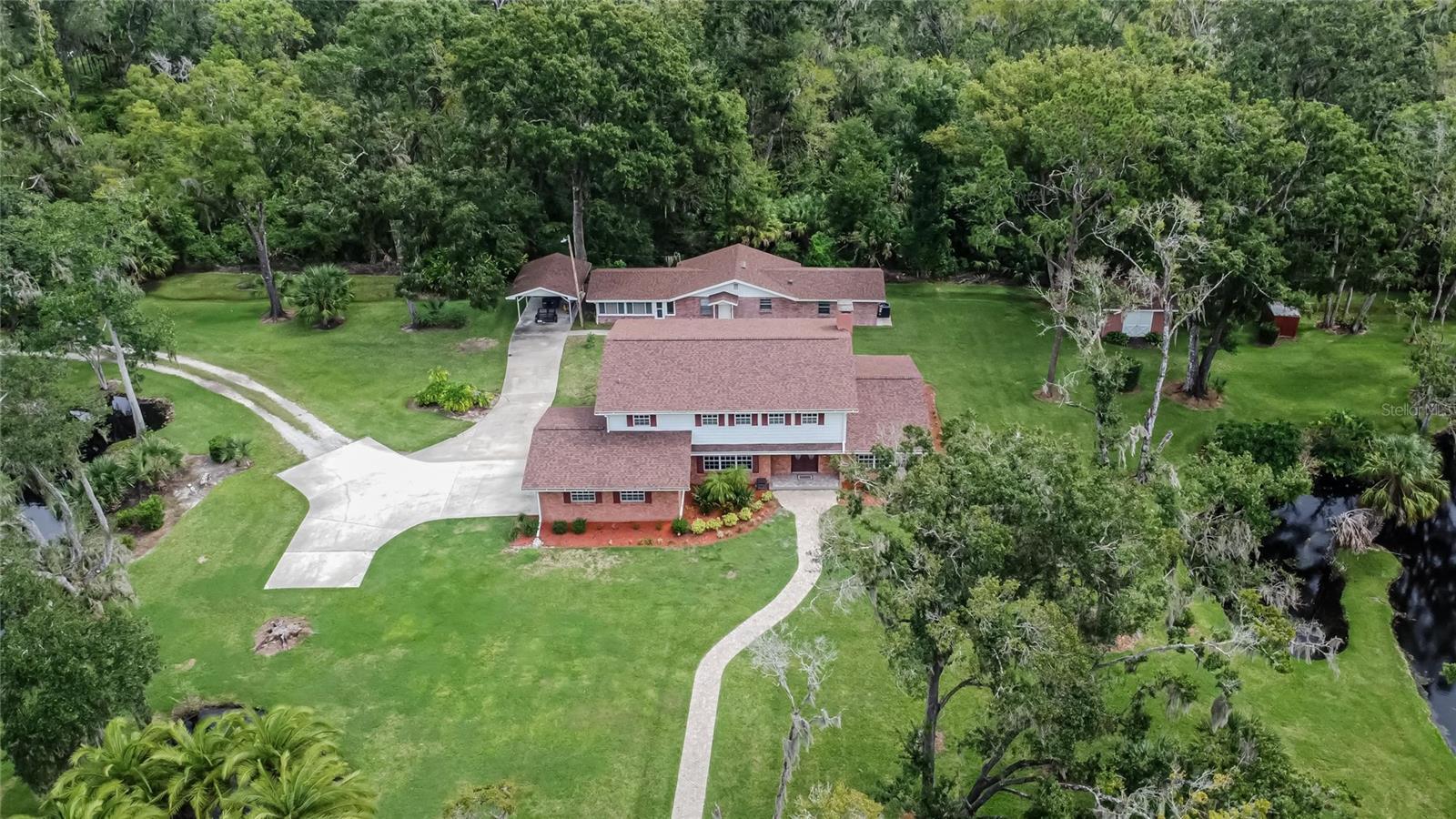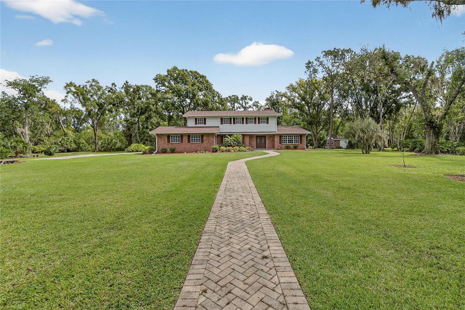 Discover a rare opportunity to own approximately 4.5 acres inside the city limits, complete with a private pond and charming bridge. This remodeled two-story home offers 5 bedrooms, 2.5 bathrooms, and modern updates throughout. The kitchen features granite countertops, while the spacious floor plan includes a gas fireplace, inside laundry with convenient chute, and an epoxy-finished two-car garage. Newer roofs and HVAC systems provide peace of mind. The detached guest suite is ideal for extended family or visitors, offering a full kitchen, bathroom, washer/dryer hook up, and its own one-car carport. Additional highlights include a storage shed, fully fenced property, and golf cart and trailer to convey with a full-price offer. Washer and dryer remain with the home with full price offer as well. This unique property combines country privacy with city convenience—complete with ample parking, fenced grounds, and multiple living options. Truly a must-see estate with character, function, and flexibility.