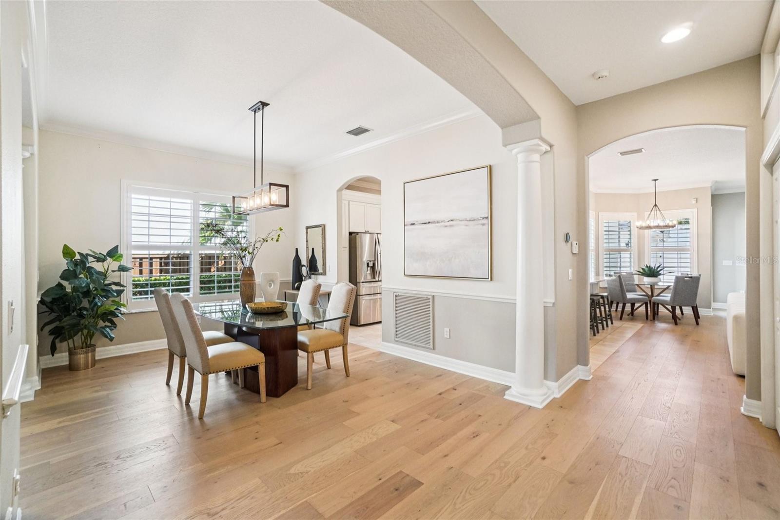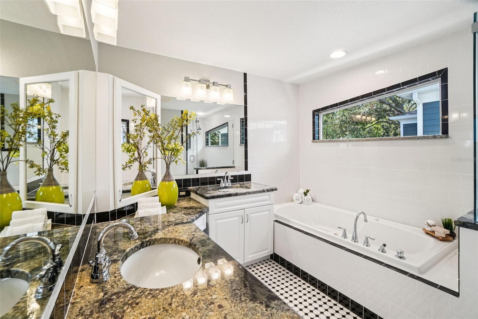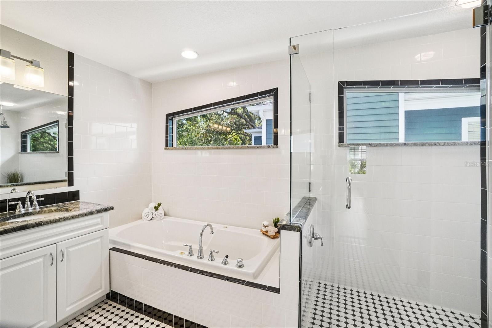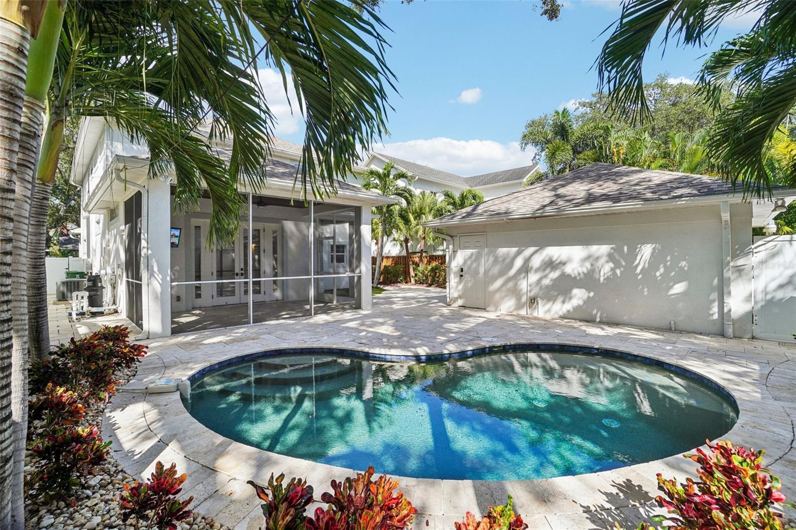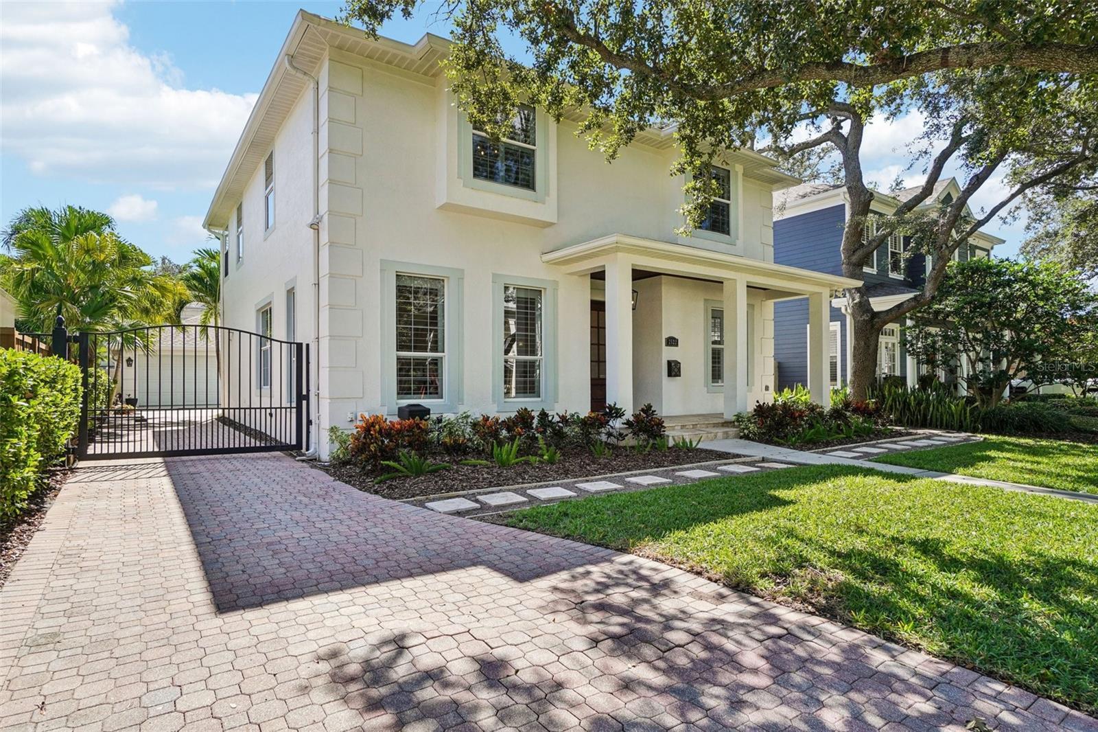 Welcome to this lovely POOL home in New Suburb Beautiful, one of the most coveted neighborhoods in all of South Tampa, known for picturesque tree lined streets, top schools, convenient location, and a HIGH AND DRY elevation giving you stress free living where no flood insurance is required. From the welcoming front porch you will step through the front door onto brand new wide plank white oak flooring installed throughout the entire home. As you enter the home the living area and dining room are on your left. Towards the back of the home is the beautifully updated kitchen with a Thermador 6 burner gas range, all stainless-steel appliances, a microwave drawer, a wine fridge, and an eat-in kitchen nook. The kitchen is open to the expansive family room with gas fireplace and French doors leading to the screened in lanai all overlooking the heated pool with light colored travertine pavers. The detached 2 car garage is accessed through the privately GATED driveway with front and rear doors for easy and convenient drive through ally access. The first floor also features a bedroom which would make a perfect guest suite/den/office along with a full bath. Upstairs are 4 more spacious bedrooms, a guest bathroom, laundry, and the owner’s suite with a vaulted ceiling, walk-in-closet, a timeless black and white tiled bathroom with double sinks, a jacuzzi tub and a separate walk-in shower. You must see this perfectly maintained home in this gorgeous neighborhood!