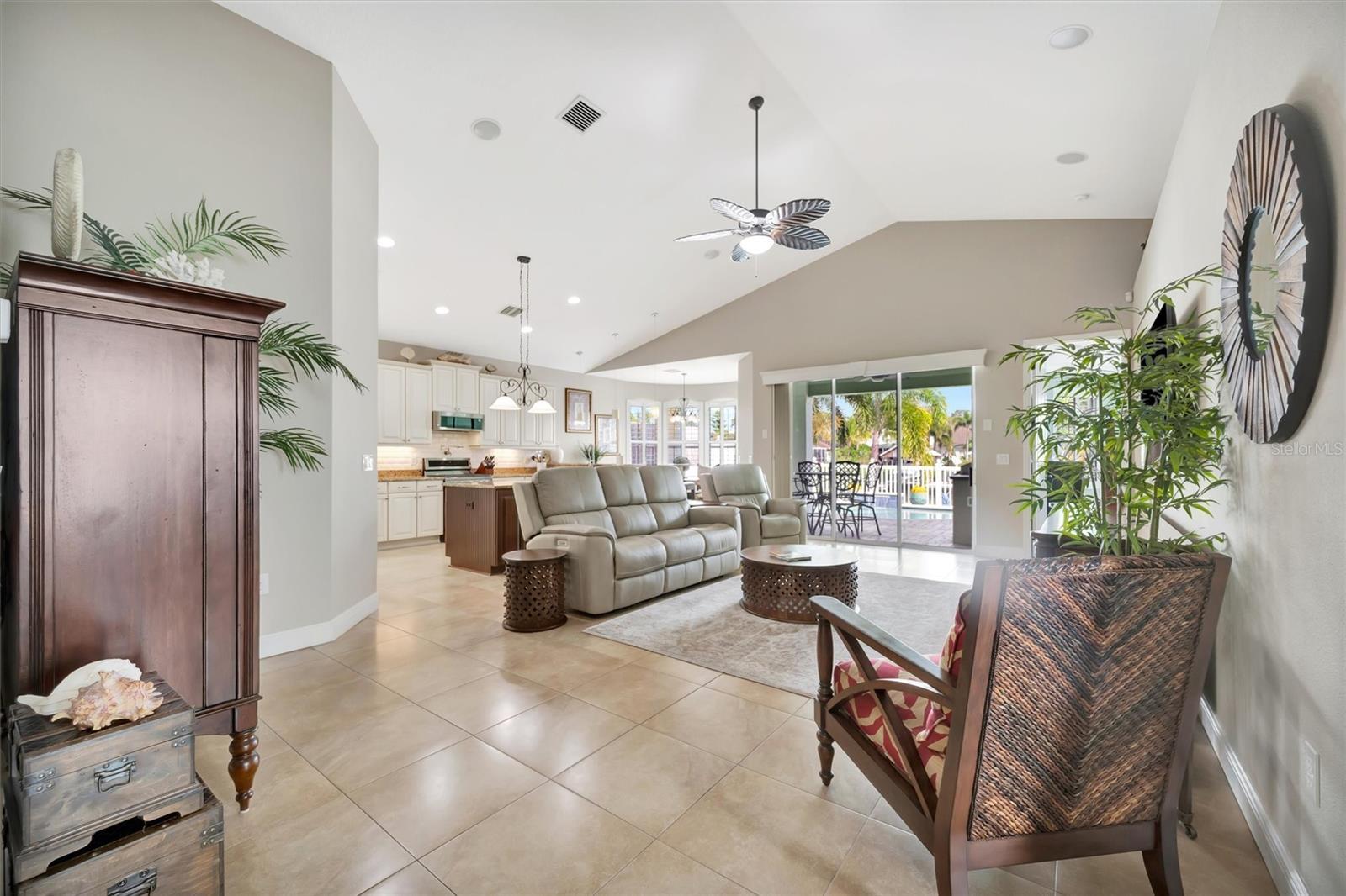 - Cathedral Ceiling(s), Ceiling Fans(s), Crown Molding, High Ceilings, In Wall Pest System, Kitchen/Family Room Combo, Open Floorplan, Vaulted Ceiling(s), Walk-In Closet(s), Window Treatments