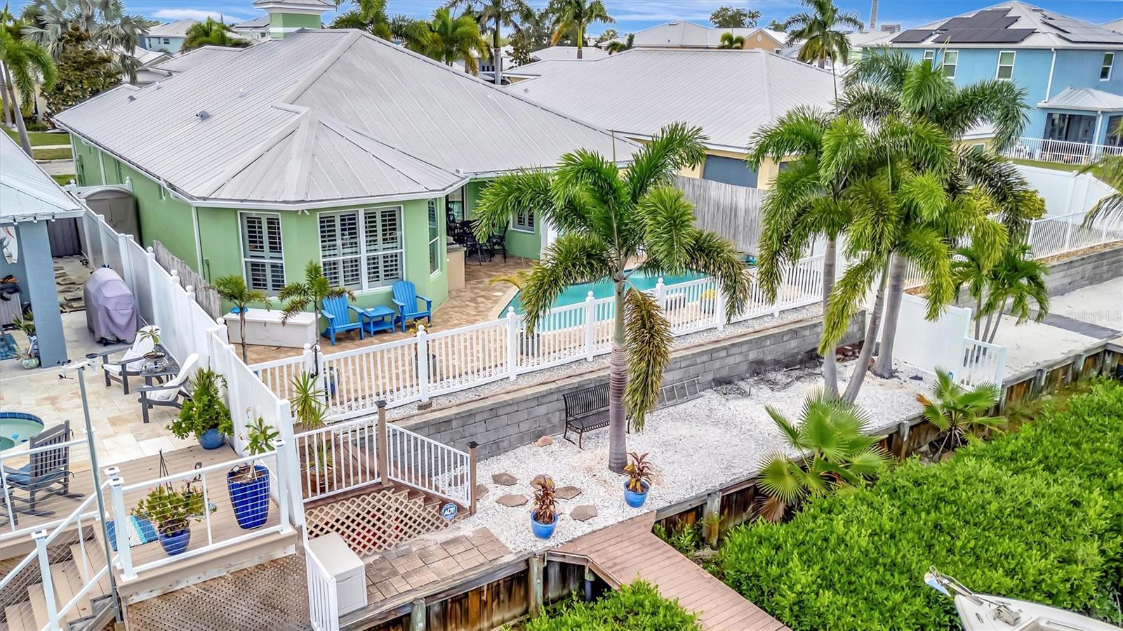 Under contract-accepting backup offers. Amazing Luxury WATERFRONT home in the desirable Gated community of Bimini Bay. Enjoy relaxing on your very own private beach while watching dolphins and manatees swim by. This gorgeous 3 spacious bedroom, 2 bathrooms home is a must see! Upon entering the foyer you will see an extra spacious living area and a large kitchen that overlooks this beautiful space. The upgraded gourmet kitchen includes 42" solid wood cabinetry, granite countertops, New KitchenAid stainless steel appliances, walk-in pantry, a large kitchen island with plenty of counter space and a bar area for breakfast for the whole family. A must have for the cooks out there. Home is piped for lp gas to the stove and outdoor kitchen. Large master bedroom features HIS/HERS closets, luxurious walk-in shower, and double sink granite countertop. Natural light flows throughout the entire home. Additional upgrades include: Crown molding, 8" interior doors, water softener, paver driveway, plantation shutters, custom blinds treatments, metal roof, TACO water recirculation pump, ceiling mounted stereo speakers, tons of extra storage space, ceiling fans, a large back porch with with an outdoor kitchen, AO Smith energy star heat pump water heater. Step to your own private oasis with a fully fenced yard, a pool and a private custom beach area with an amazing water view and tranquil surroundings. Additional amenities include a WIDE canal and a boat dock with a 10K pound boat lift!!!!! The boat dock can be used for boating, kayaking, paddle boarding, and fishing. (Boat is not included). Low HOA fees, no CDD fees. This luxurious waterfront home also includes access to the community pool and clubhouse. Home is positioned on high, dry ground, the home reported no flooding during the 2024 hurricane season, offering peace of mind. Bimini Bay is centrally located near shops, restaurants, with easy access to main highways, Tampa Bay, and local beaches. This home is move in ready schedule for a showing !! BE SURE TO CLICK ON THE VIDEO IN THE LISTING. It really gives you a great virtual tour.