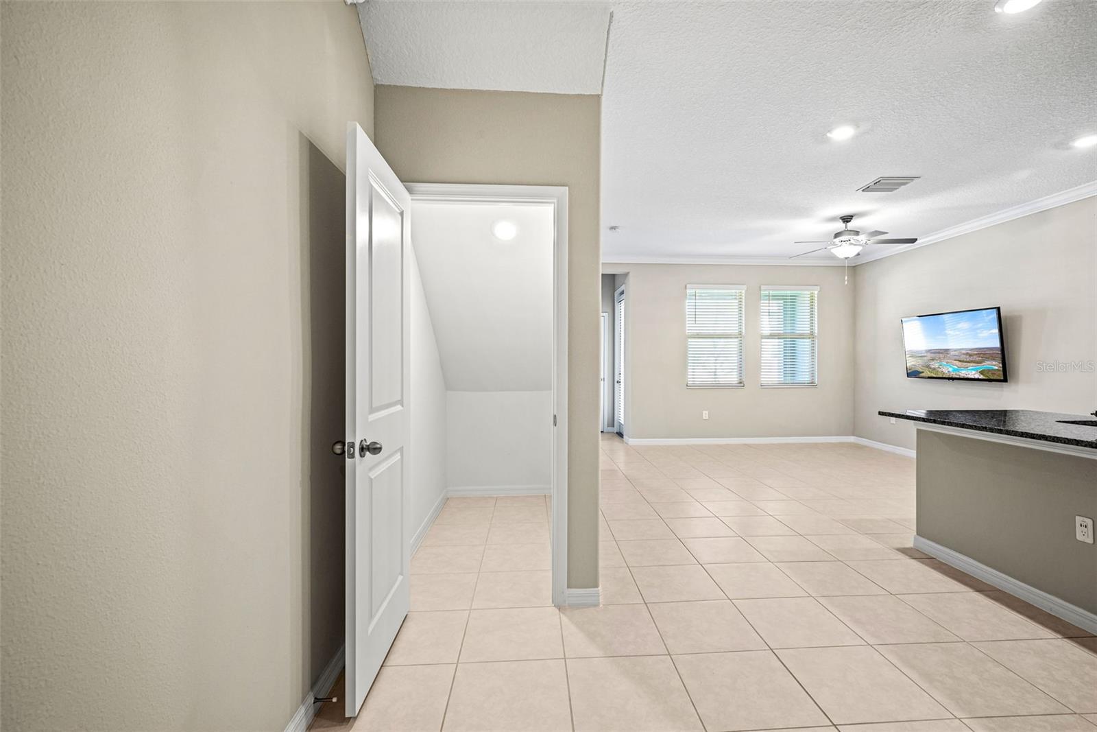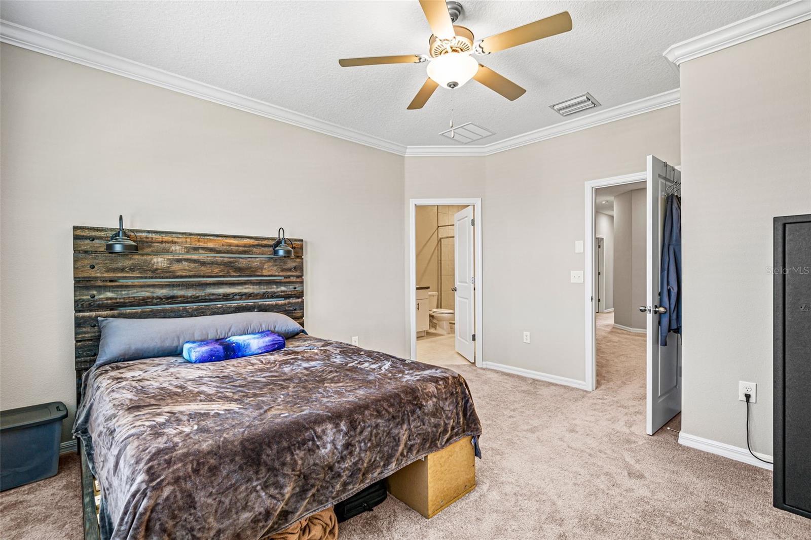 - Ceiling Fans(s), Crown Molding, Eat-in Kitchen, High Ceilings, In Wall Pest System, Open Floorplan, PrimaryBedroom Upstairs, Split Bedroom, Thermostat, Walk-In Closet(s), Window Treatments