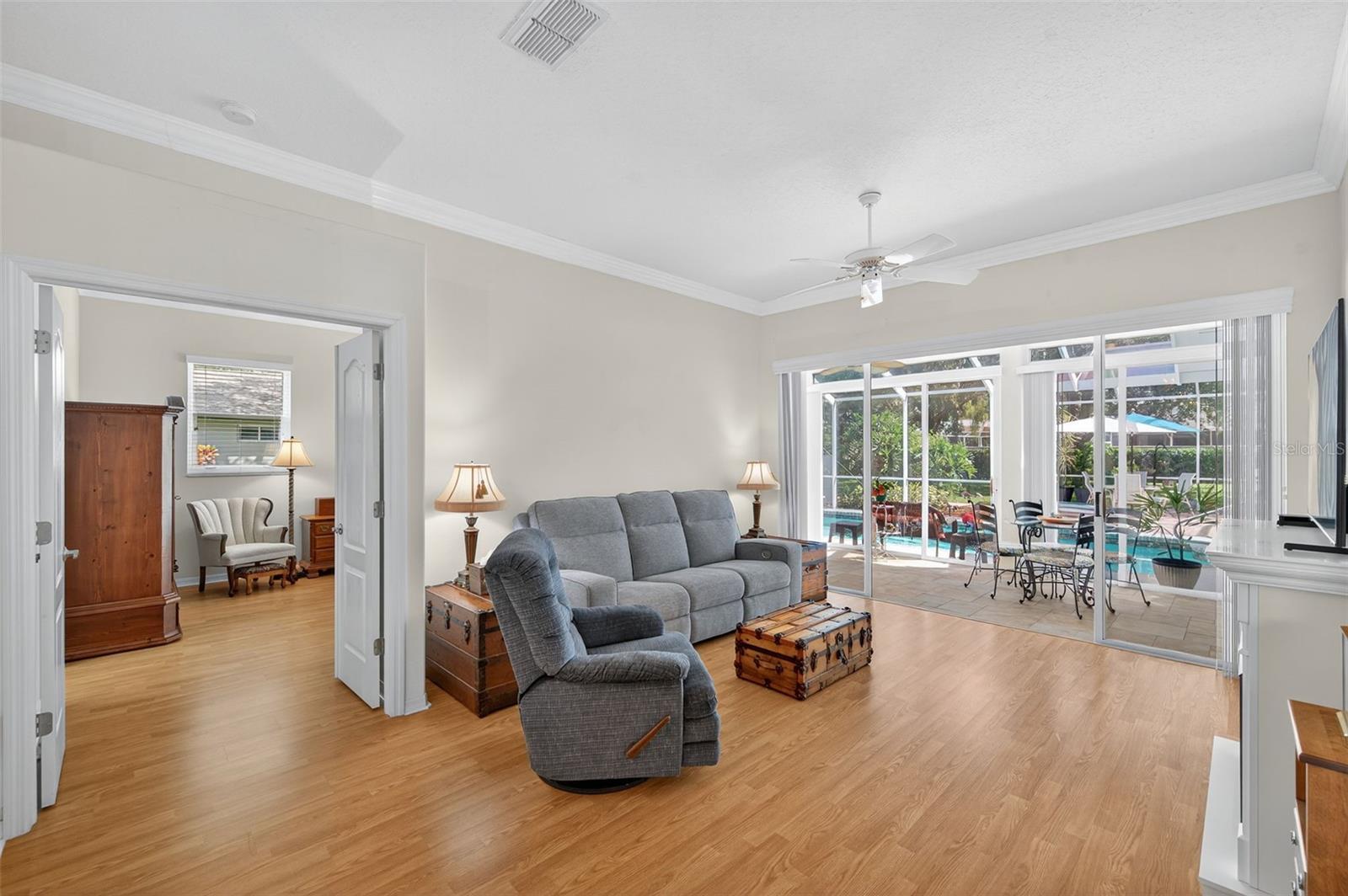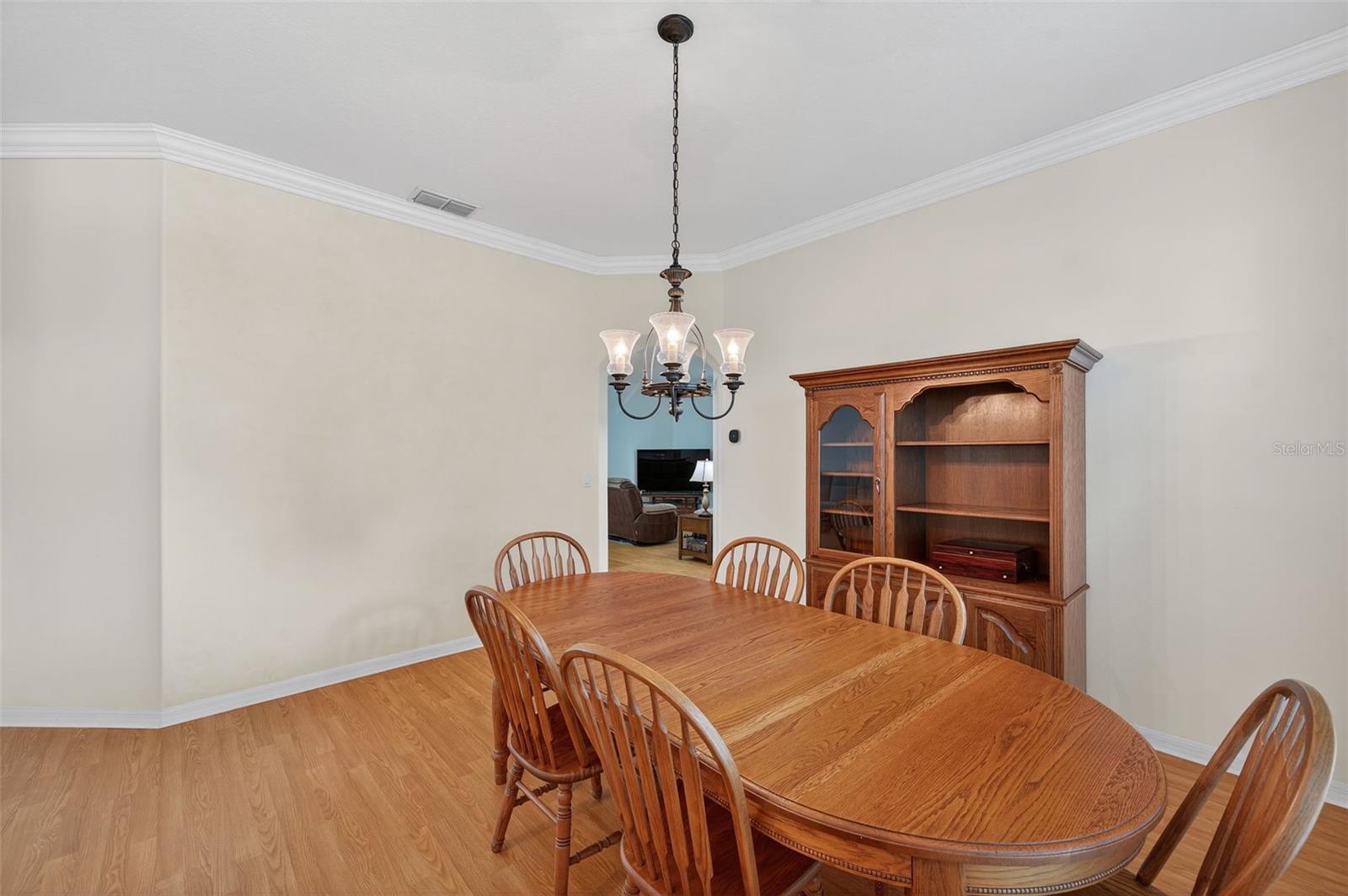 - Ceiling Fans(s), Crown Molding, Eat-in Kitchen, L Dining, Pest Guard System, Primary Bedroom Main Floor, Solid Wood Cabinets, Walk-In Closet(s), Window Treatments