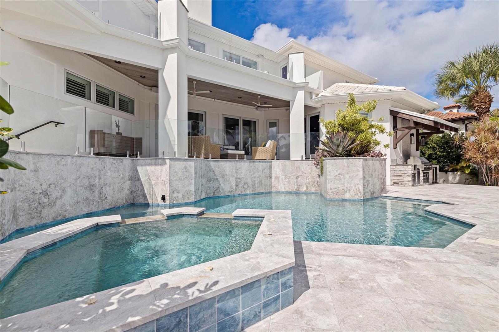 With 100 feet of deep-water frontage, boating enthusiasts will appreciate the private dock equipped with two boat lifts, two jet ski lifts, a kayak launch, and a private beach—all just minutes from the open Gulf of Mexico. Elegance, innovation, and coastal luxury converge in this remarkable Bayway Isles residence—masterfully renovated between 2021 and 2023 and reimagined for today’s modern lifestyle. Spanning over 5,500 square feet, this estate features six bedrooms, five full baths, and two half baths, blending refined design with state-of-the-art smart home technology. Upon entry, a sense of grandeur unfolds—soaring ceilings, rich hardwood floors, and custom architectural details set an elegant tone throughout. The main-level primary suite serves as a serene retreat, while two upper wings provide exceptional flexibility—one designed for extended family or in-law living, the other ideal for guests or a recreation area, complete with a fully furnished game room. Thoughtful touches such as wet bars, stone countertops, and three fireplaces accentuate the home’s craftsmanship, all seamlessly integrated through a Control4 automation system for effortless living. Outdoor living takes center stage with expansive decks, lush tropical landscaping, and a resort-style pool featuring dual propulsion swim systems. With 100 feet of deep-water frontage, boating enthusiasts will appreciate the private dock equipped with two boat lifts, two jet ski lifts, a kayak launch, and a private beach—all just minutes from the open Gulf of Mexico. Additional highlights include three dedicated offices, dual two-car garages with EV readiness, and the peace of mind of 24-hour gated security within the highly sought-after Bayway Isles community. Ideally situated just minutes from downtown St. Petersburg, the Gulf beaches, and Fort De Soto, with easy access to Tampa, Bradenton, and Sarasota, this home exemplifies elevated waterfront living. Notably, this residence did not experience flooding during the 2024 hurricane season—a testament to its solid design and enduring craftsmanship. More than a home, this is a statement of modern coastal style—a place where thoughtful design, luxury amenities, and timeless architecture unite in perfect harmony.