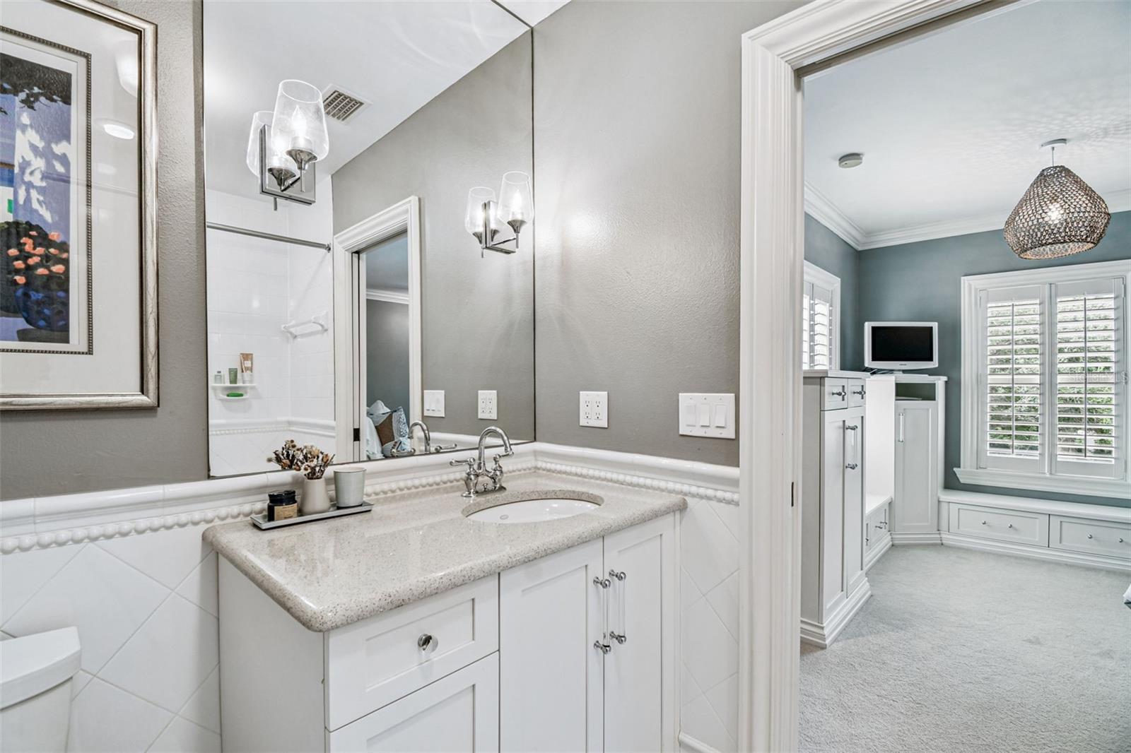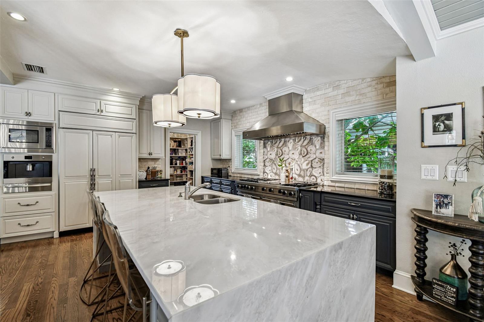 - Ceiling Fans(s), Eat-in Kitchen, Kitchen/Family Room Combo, Primary Bedroom Main Floor, Solid Wood Cabinets, Split Bedroom, Stone Counters, Walk-In Closet(s), Window Treatments