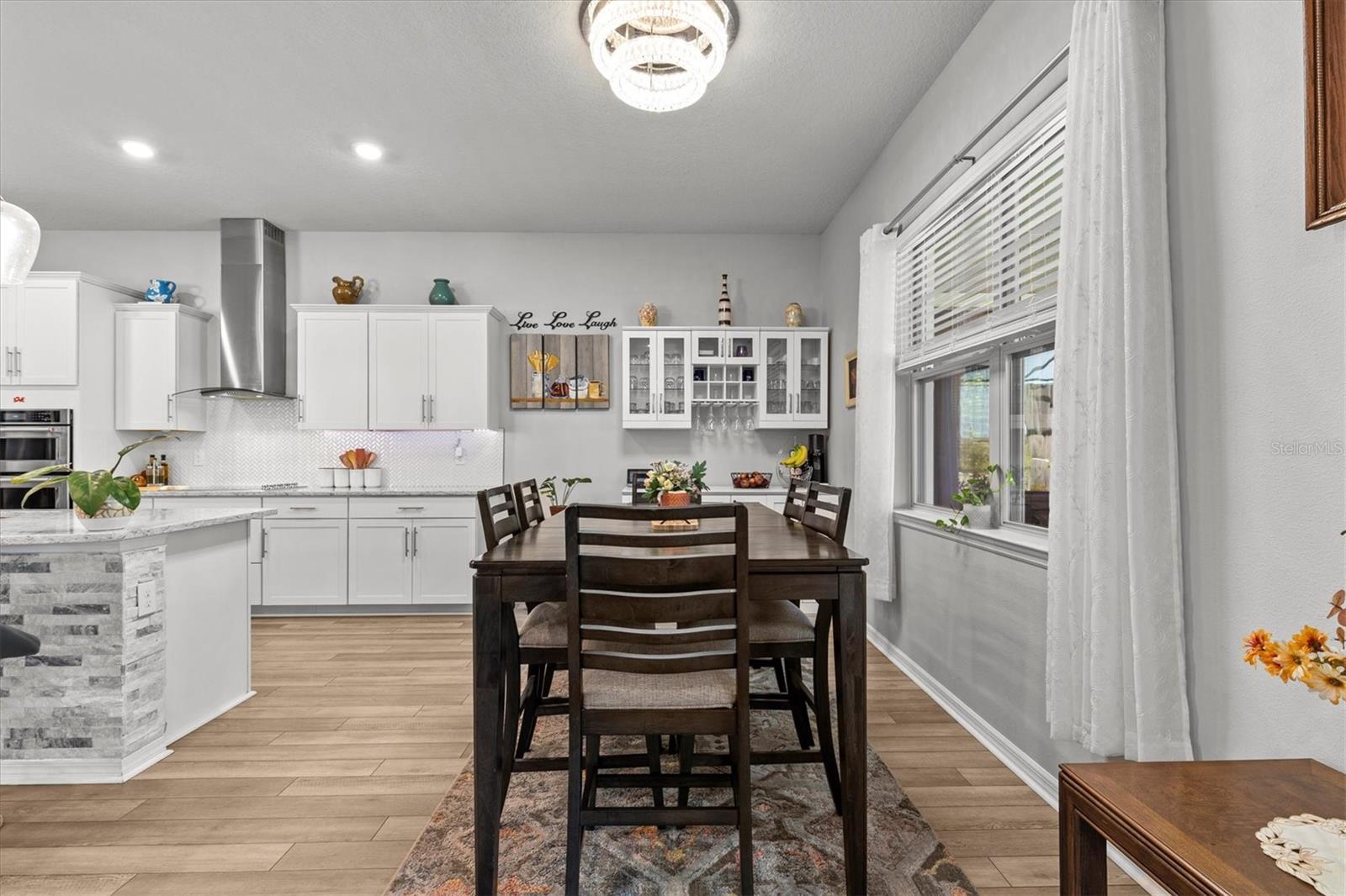- Built-in Features, Ceiling Fans(s), Eat-in Kitchen, High Ceilings, Kitchen/Family Room Combo, L Dining, Primary Bedroom Main Floor, Solid Surface Counters, Solid Wood Cabinets, Tray Ceiling(s), Walk-In Closet(s)