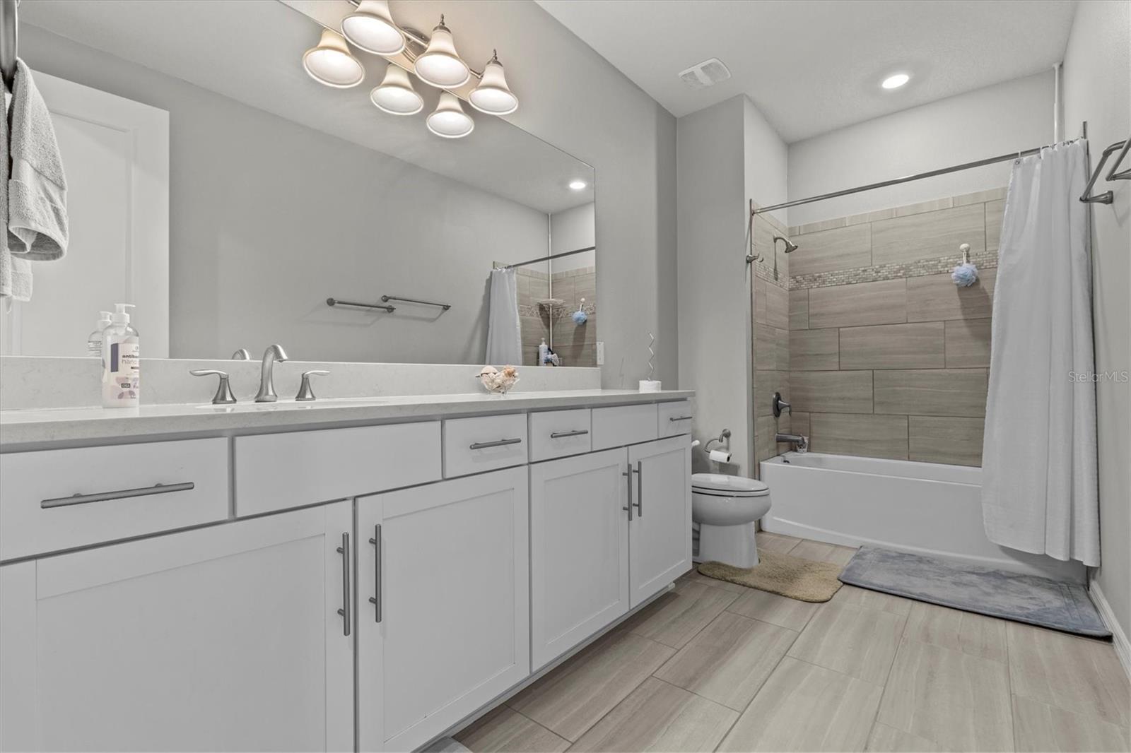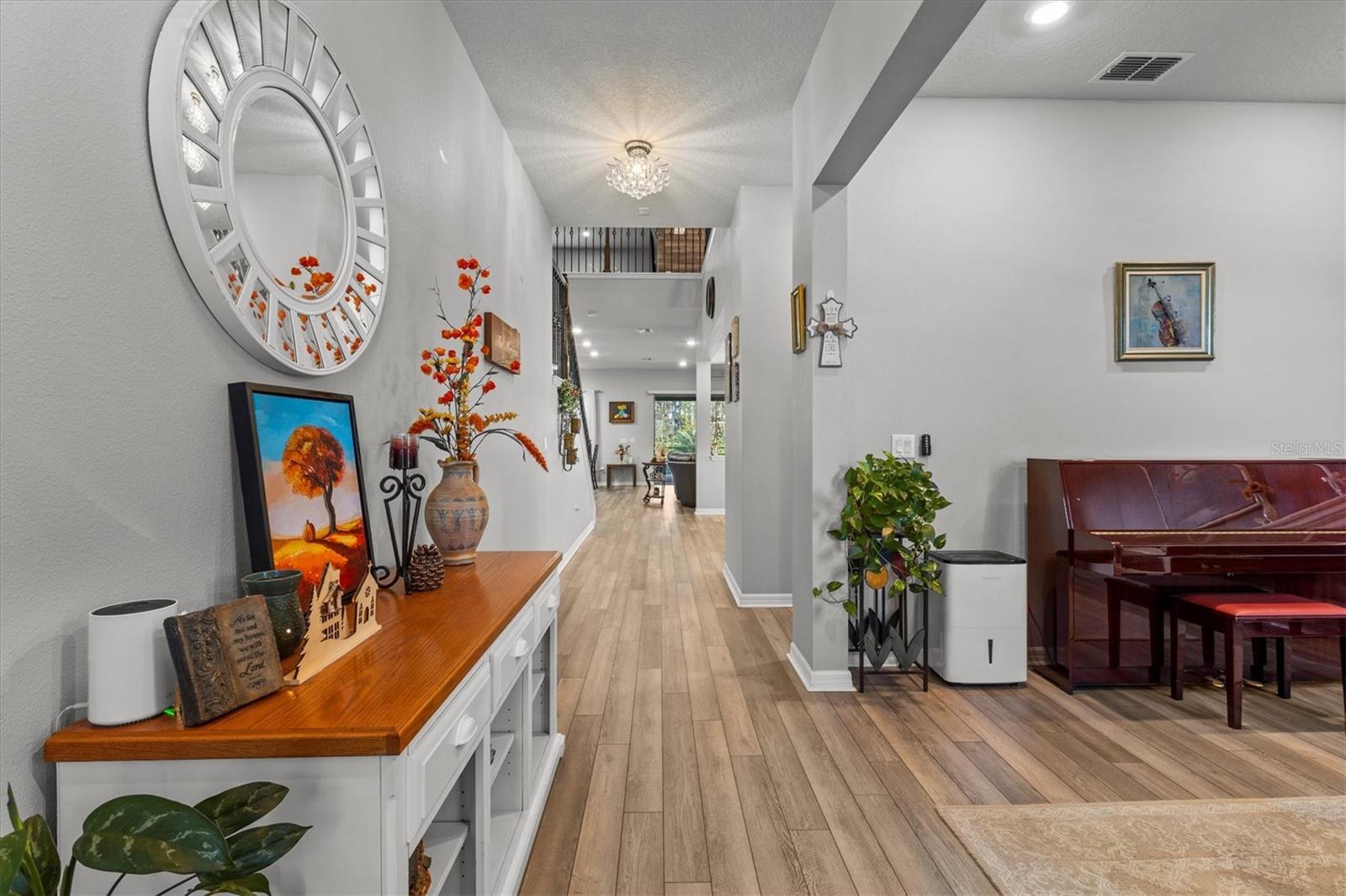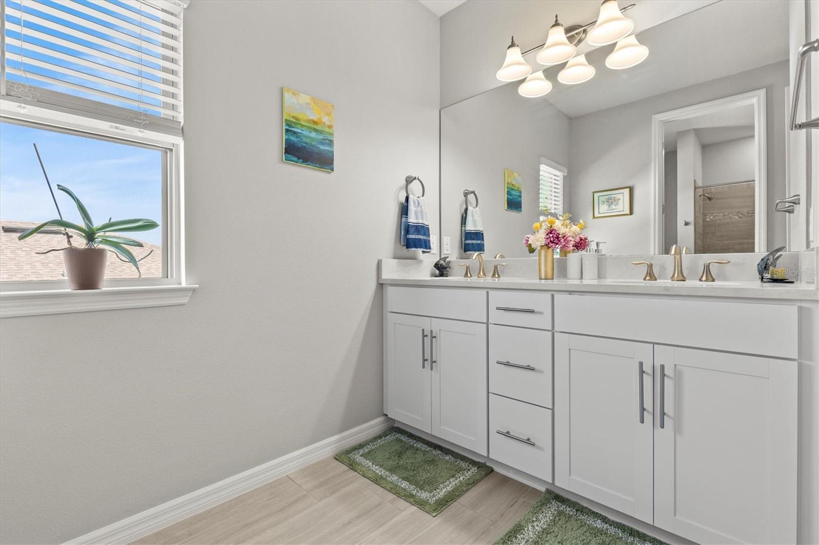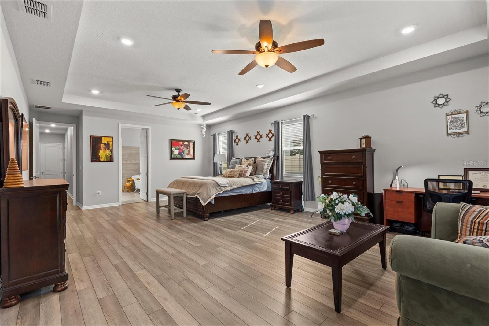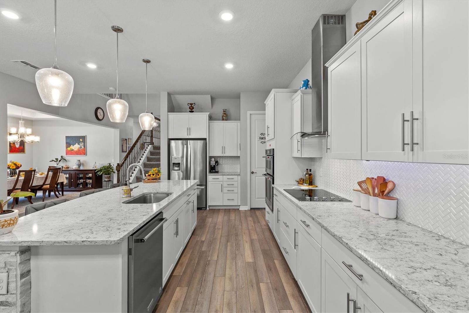 Welcome to your dream home in K-Bar Ranch of New Tampa! Built in 2020 by Pulte Homes, this one of a kind Casabella floor plan offers 6 beds, 4.5 baths, and a 3-car garage, all thoughtfully designed for modern living at over 5300sqft. This home is sure to wow with all of its added features! As you enter the foyer you’ll be greeted with ceilings at 10ft on the main floor and 9ft on the second, a flex room, powder room, and formal dining space. The luxury vinyl plank floors throughout the main floor create a cohesive and stylish look. The gourmet kitchen features quartz countertops, stainless steel appliances, spacious island seating, a cafe eating space, and the walk in pantry of your dreams! The electric fireplace really ties the living space together and can warm the room during the short Florida winters. Just outside your sliding glass doors is your brand new fully enclosed lanai, heated salt water pool and spa, and full outdoor kitchen overlooking conservation views for added privacy. A special highlight of this floor plan is the massive primary bedroom on the ground floor that features an en-suite bathroom with a walk-in shower, claw-foot tub, walk-in closet with built-ins and glass sliders that open to breathtaking views of the pool. Notice the NEW luxury vinyl plank floors and NEW stair lighting as you ascend to the second floor. The space opens up to a large loft, 5 additional bedrooms, 3 bathrooms, laundry room with utility sink, and an added Movie room! No wasted space in this home as you’ll notice the large bedrooms, walk in closets and additional hallway storage closets. The movie room is yours, featuring wood paneled walls, 5 reclining seats, and all media equipment! You’ll never have to leave! But if you must, you can grab your things from the mudroom and exit through the 3 car garage oversized garage. With epoxy flooring and additional space for storage or a golf cart. A step above the rest, this home is ready with features you won’t get from anything else on the market. Additional updates include paid off Tesla solar panels with power wall, water softener, water filtration system, in-wall pest control system and premium finishes throughout. Keep in mind that this impeccable home sustained zero damage from this hurricane season, and the power wall can power the entire home during power outages! This home combines luxury and practicality, making it the perfect place to create lasting memories. Schedule your showing today and experience the perfect blend of style, comfort, and nature! *** Buyer may be eligible for lender concession when working with preferred lender - inquire for details.** Located close to Top rated schools, Shopping centers, Wire Grass Mall, Tampa Premium Outlets, USF, Moffit Hospital, Restaurants, gym, I-75, I-275 & Much more. This neighborhood features a private community swimming pool, playground, tennis courts marked for pickleball, and walking trails. Don't miss your opportunity to buy this beautiful move-in-ready house.