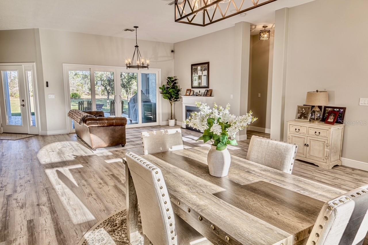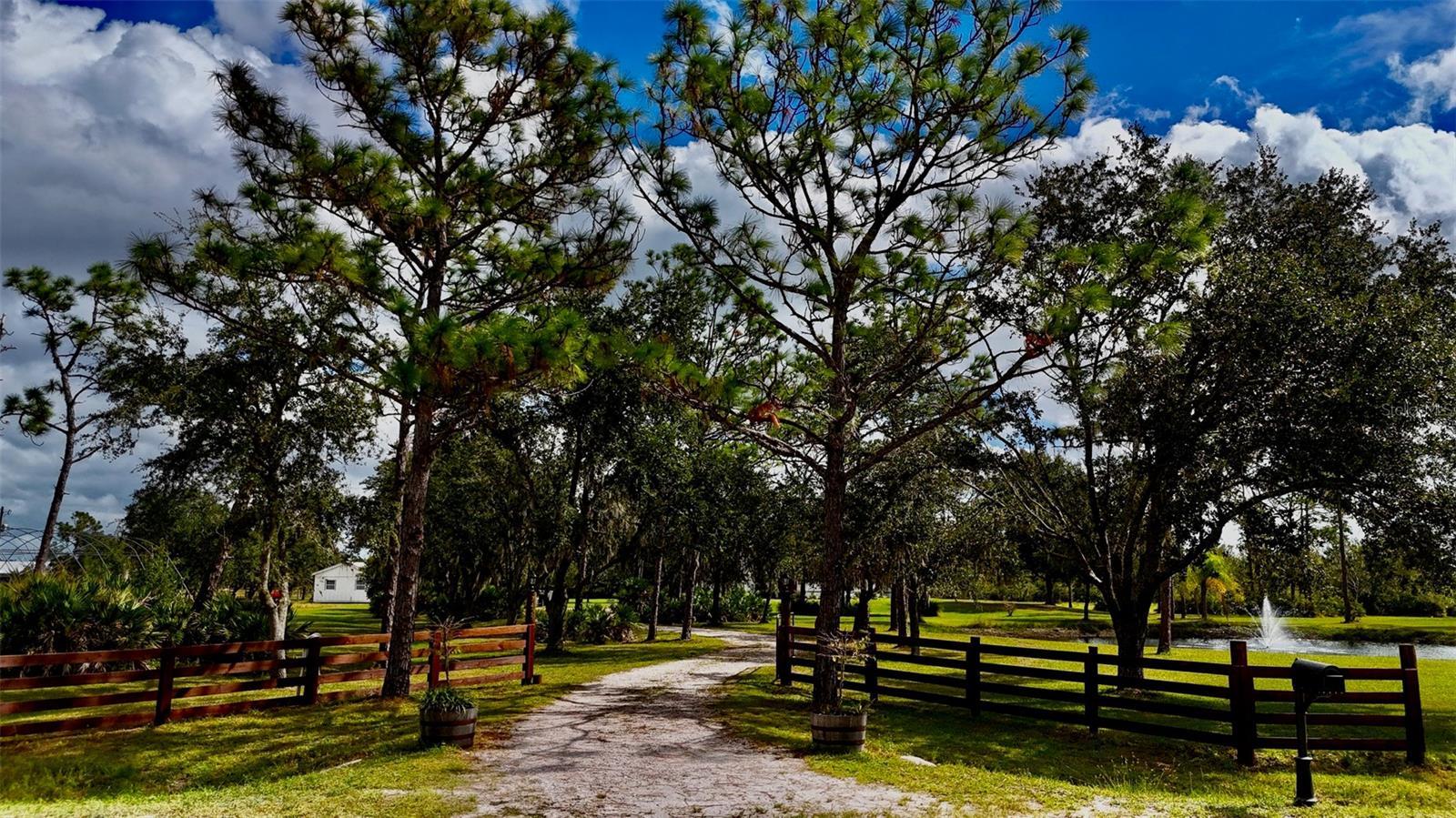 COMPLETELY RENOVATED in 2025 - Like-new from floor to ceiling. OPEN FLOOR Plan with 10-foot ceilings, NEW ENERGY EFFICIENT HURRICANE IMPACT windows. CHEF'S KITCHEN: Quartz countertops, SOFT-CLOSE SOLID WOOD cabinetry, UNDER-CABINET lighting & TILE backsplash, 30in micro/oven cabinet combo, 36in cooktop with rangehood vent, 8ft by 6.6ft ISLAND with 33" stainless steel FARMHOUSE SINK, Push-button garbage disposal, Dual-zone wine & beverage cooler with custom dry bar, utility/laundry room with ample storage. Primary suite with: ZERO-ENTRY 7ft by 5ft shower (DUAL showerheads), Double vanity and makeup area, OVERSIZED 10ft by 11ft walk-in closet with cabinets, countertop and custom built-ins. All NEW SOLID-CORE interior & exterior DOORS, NEW flooring and paint throughout, ALL bathrooms updated with new toilets, designer fixtures, and modern lighting, upgraded DECORA-style outlets and switches. Systems & Mechanical Upgrades: ROOF replaced in 2021 with architectural shingles, NEW 225 AMP main panel and 200 AMP transfer switch for whole-house generator, whole-house TANKLESS hot-water heater, 5-ton DAIKIN FIT AC system (Inverted / ENERGY EFFICIENT) with COMPLETE RE-DUCT of entire home -includes 12-YEAR parts & labor warranty. Climate-controlled 600sqft outbuilding with power and water, 7448sqft GREENHOUSE structure, stocked pond with fountain, pre-wired pool panel. Power and water at front gate. Irrigation system for plant beds. Fenced area for dogs attached to outbuilding. Gated entry from road.