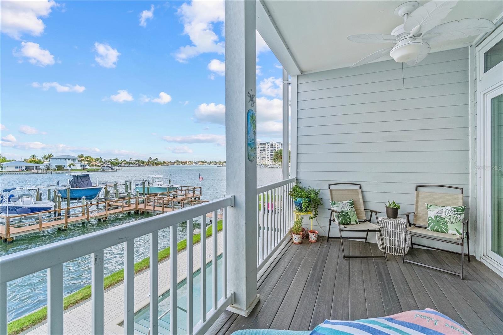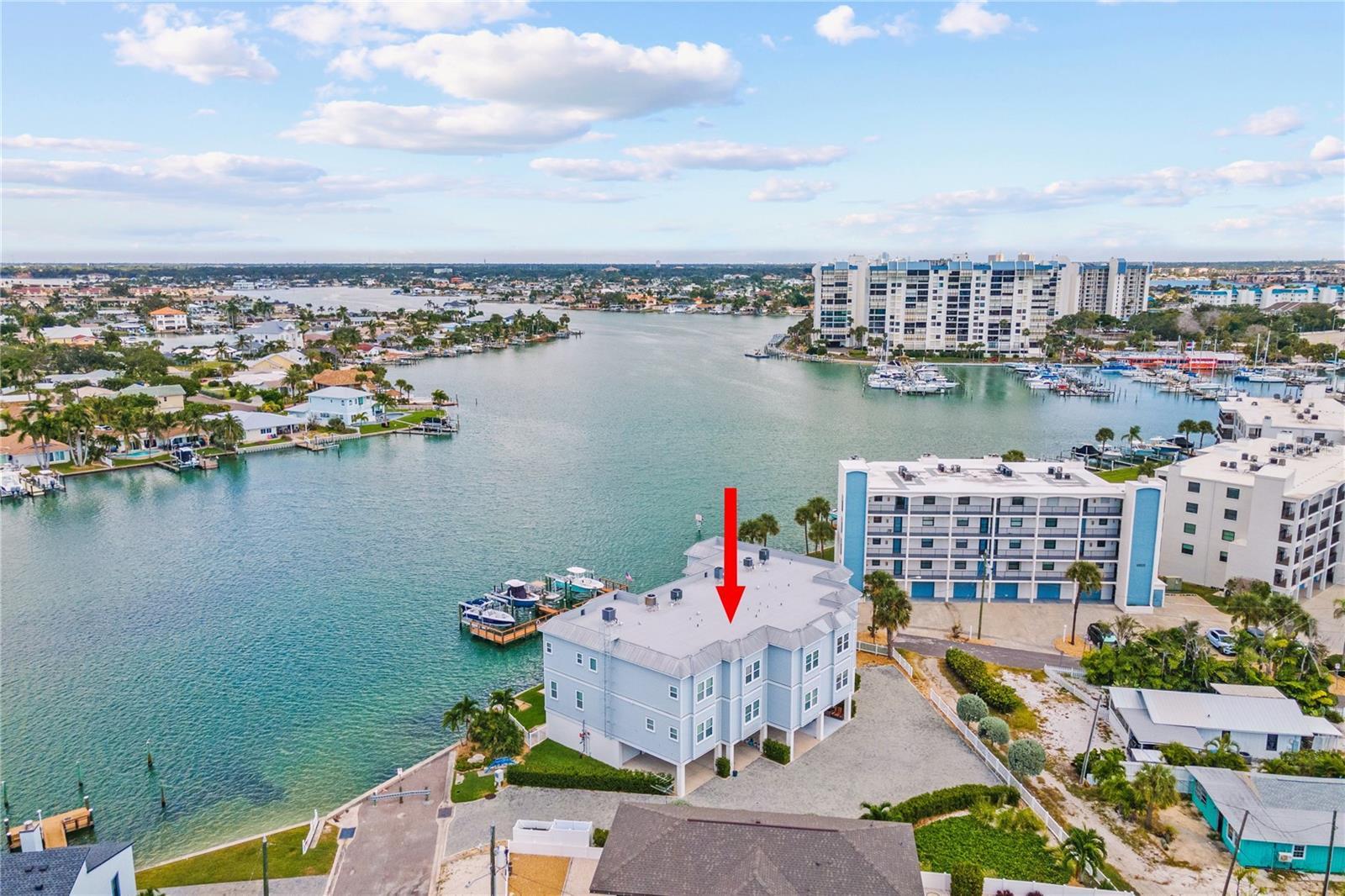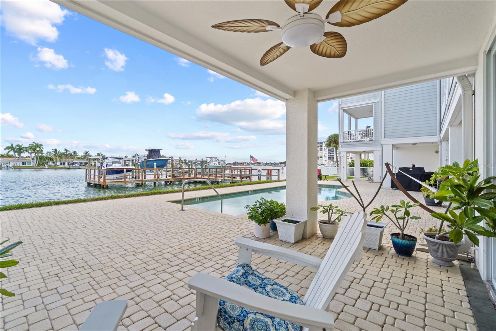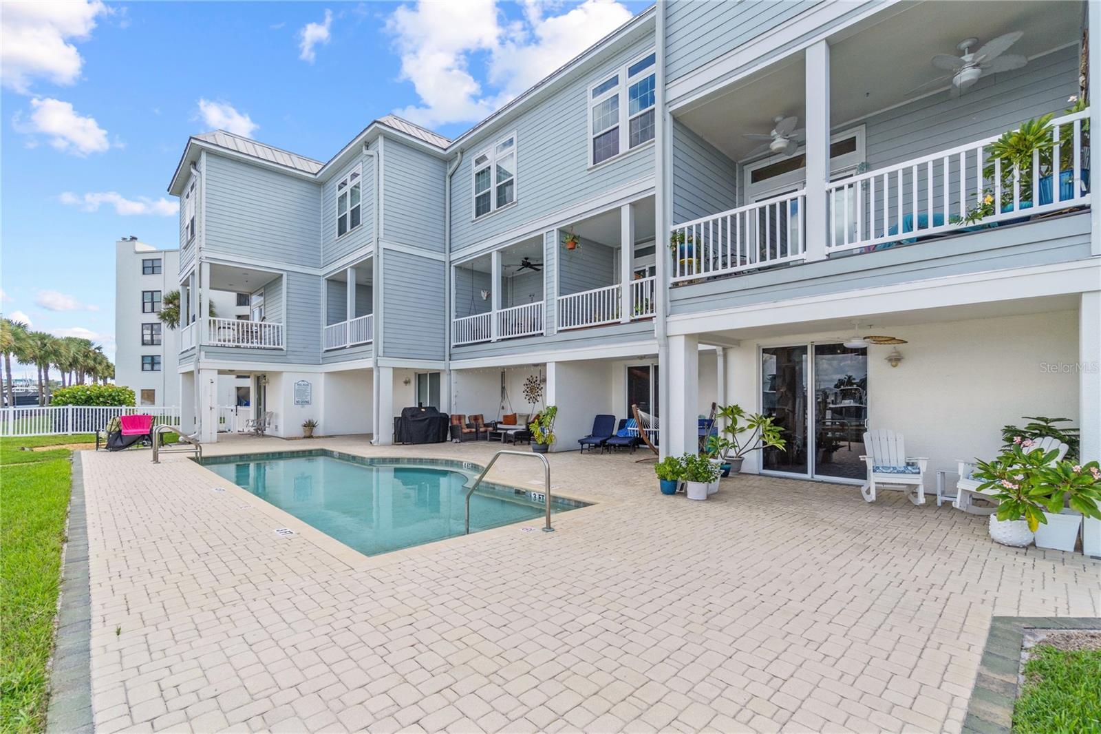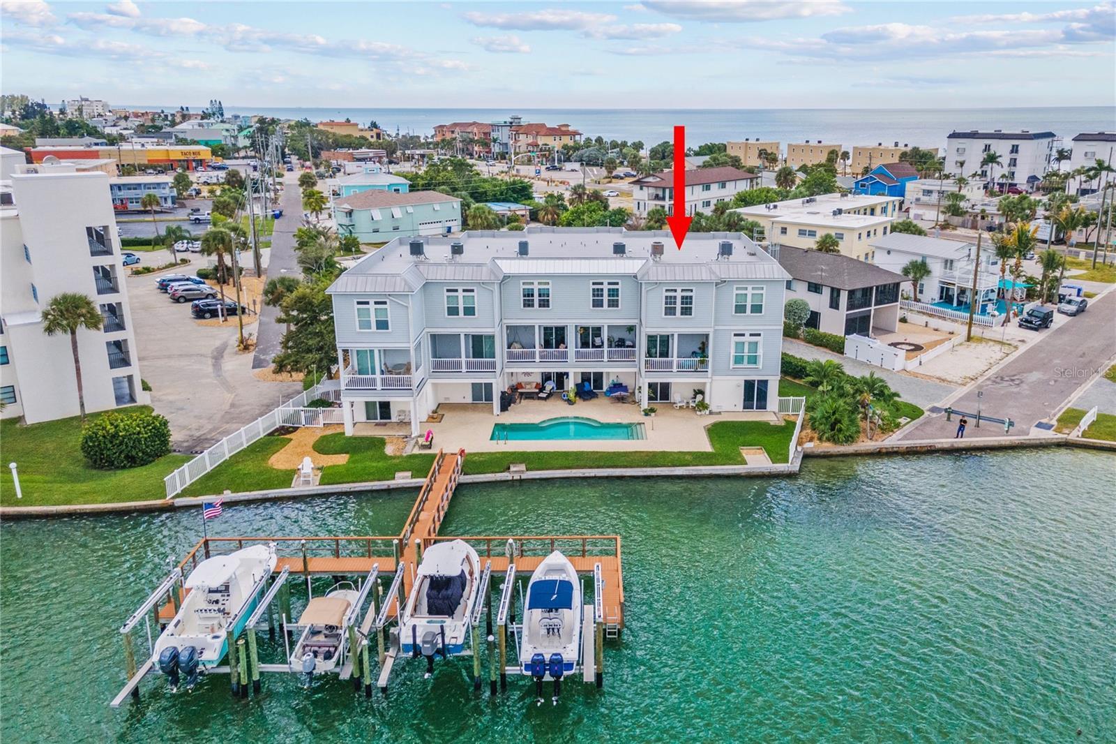 Charming waterfront townhome meets coastal serenity! Nestled at the peaceful end of a cul-de-sac on Treasure Island, this stunning residence at Bella Casa Townhomes captures the essence of sophisticated coastal living. One of only six exclusive units, this waterfront townhome offers beachy interiors, sweeping unobstructed views of Boca Ciega Bay, and the beach just a 5 minute stroll away. Situated directly on Devil’s Elbow Straight, a wide and picturesque stretch of Boca Ciega Bay, this home invites you to embrace life on the water. The community dock and seawall provide perfect spots for fishing or launching a paddle board, and a public boat launch is conveniently located just one block away (community slips can be rented or purchased from other owners when available). Inside, the home’s 10-foot ceilings and expansive windows showcase the beauty of the bay from every level. The kitchen is located on the second floor, where you’ll find granite countertops and painted cabinetry, complemented by stainless steel appliances. The host-friendly design flows effortlessly to the dining/ living area creating a seamless connection to the balcony. The 1st guest bedroom is also located on this level, adjacent to a full bathroom that can easily be enclosed for use as a guest or transient bath. On the 3rd floor, experience the most beautiful sunsets from the west-facing 2nd guest bedroom with double closets, ceiling fan and en-suite bathroom. Down the hall, the primary retreat offers tranquil water views, a spacious vanity with dual sinks, a spa-style soaking/jacuzzi tub, a separate shower, and a private commode room. Throughout the home, luxury vinyl plank flooring in the bedrooms, hallways, and stairs adds warmth and durability, while tile continues through all wet and living areas for easy maintenance. From your covered 2nd floor balcony, enjoy serene sunrises overlooking the water, or unwind in the evening with the colors of the sun setting over the gulf. Downstairs, the extended one-car garage, with direct interior access to the unit, has plenty of room for storage under the stairs. The garage can double as a cabana or entertainment space with its sliding doors leading out to the private covered patio with pavers just steps from the pool. Recent upgrades: New roof (2025), New hurricane-rated front door (2025), cleaned/re-grouted/resealed pavers (2025), new AC blower motor & UV light sanitizer system (2025), flooring on both staircases, updated guest bathrooms, upgraded fixtures throughout and new combo ventless washer/dryer. This property can be rented for three months or longer, making it an excellent choice for both investors and permanent residents seeking a refined coastal lifestyle. This community is also pet friendly so bring your furry friends! This home is perfectly positioned to offer both tranquility and convenience. It's within walking distance to the beach, grocery stores, pharmacies, beach bars, and some of Treasure Island’s finest waterfront restaurants. Also an easy 30-minute drive to Tampa International Airport, St. Pete–Clearwater International Airport, and the award-winning Fort De Soto Park. With panoramic bay views from every level, modern upgrades, and timeless coastal charm, this exceptional townhome is more than a residence - it’s a lifestyle defined by water, light, and ease. This home offers the very best of waterfront living on Florida’s Gulf coast - a true gem on an island full of treasures!