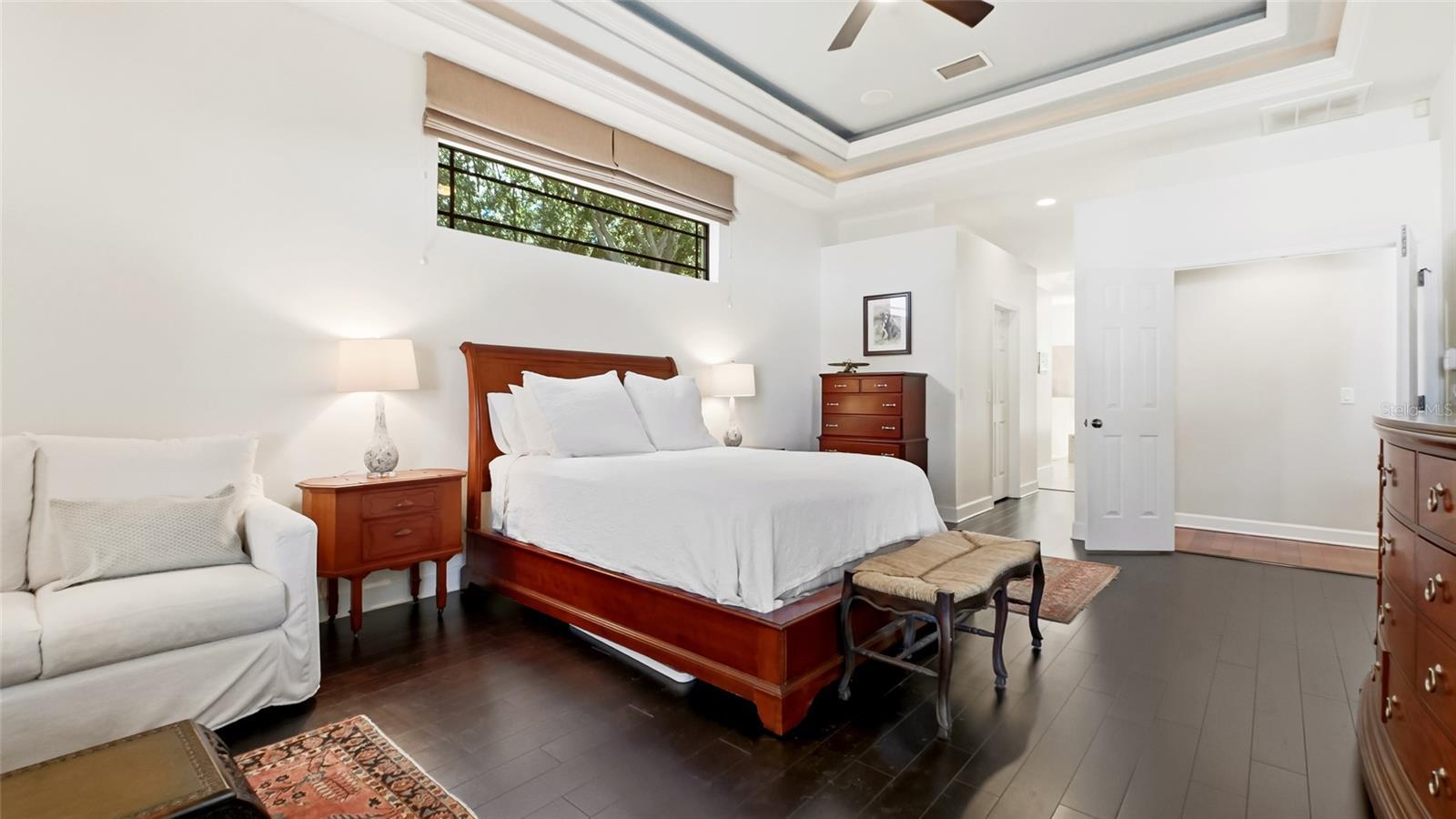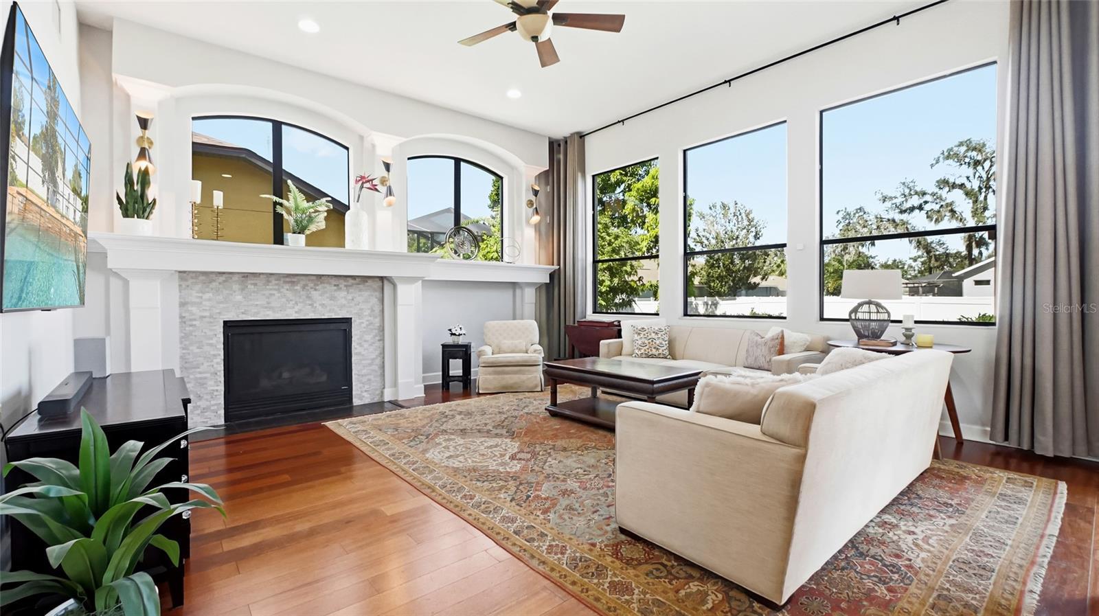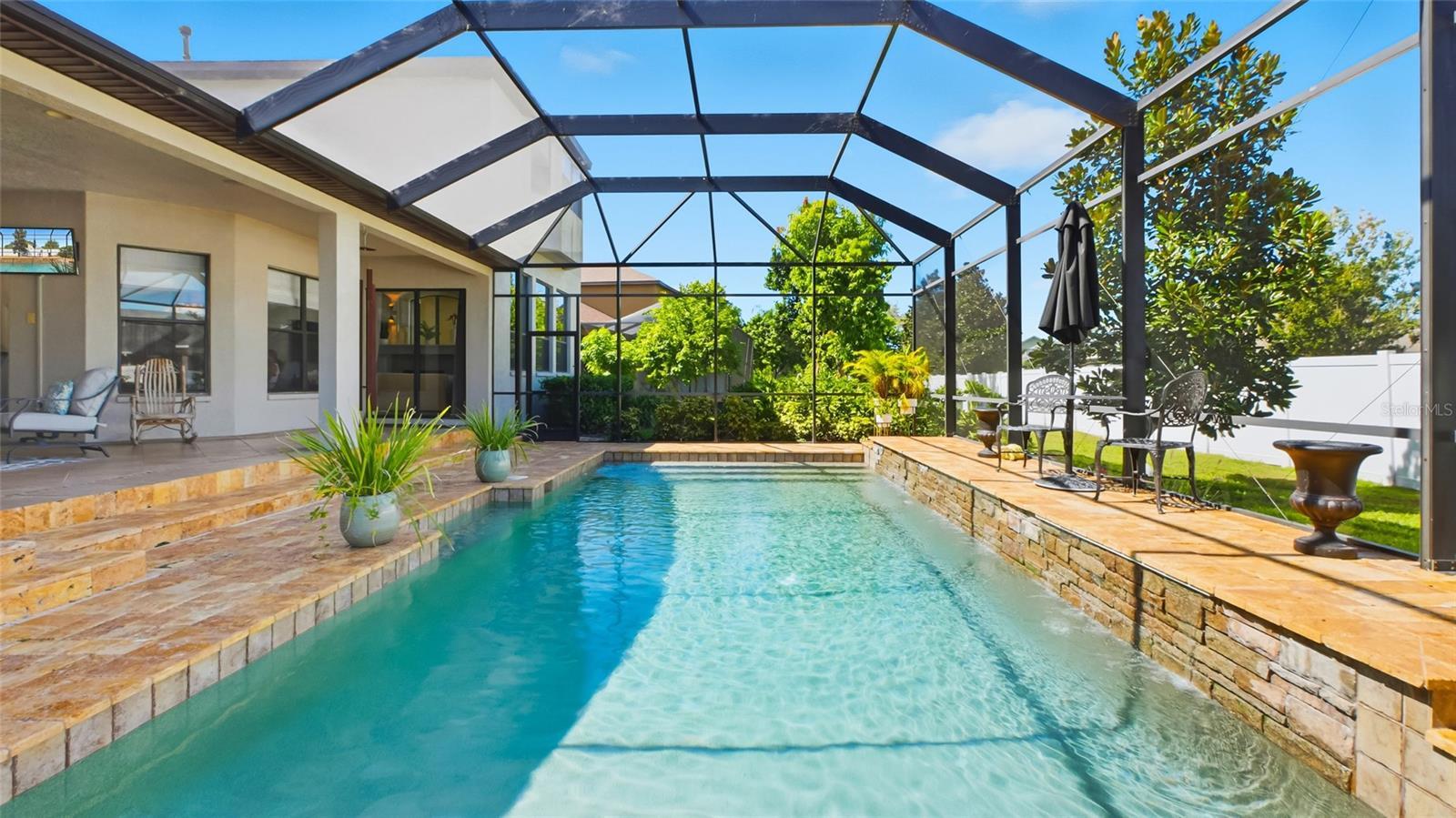 NEW Price Improvement AND Sellers offering $10,000 credit towards closing costs or rate-buy down! Welcome home to 107 Falling Water Drive—with 5 bedrooms and 5 baths, this is a truly magnificent residence offering the best in multi generational living. With over 5,000 square feet of thoughtfully designed space, this former model home showcases countless upgrades on a beautifully landscaped corner lot. From the moment you step into the grand foyer and formal dining area, you’ll be captivated by the natural light and elegant engineered hardwood flooring that flow throughout the home. A designated office with French doors provides the perfect space for remote work, while a cozy den featuring floor-to-ceiling bookshelves overlooks the expansive pool deck, creating a serene retreat for relaxation or reading. The home’s layout is designed with privacy in mind, with the luxurious master suite tucked away on one side and a guest suite area with two bedrooms and a shared full bath on the opposite side. The primary suite is truly grand, offering a spacious sitting area, tray ceilings, and direct access to the pool. The en suite bath feels like a private spa, complete with dual sinks, an indulgent walk-through shower with three shower heads, and a soothing garden tub. For the culinary enthusiast, the chef’s kitchen is a dream come true—featuring high-end stainless steel appliances including a six-burner natural gas range with double ovens, a sleek stainless hood, granite countertops, 42-inch upper cabinets with under-cabinet lighting, a walk-in pantry, and a large island with ample storage and outlets. The kitchen seamlessly opens to a bright breakfast nook and an inviting family room, both overlooking the sparkling pool and backyard. Upstairs, you’ll find a fully equipped theater room with an 80” x 45” screen, a new built-in projector, and comfortable theater seating—all included with the home. Two additional bedrooms and a spacious flex room provide endless possibilities for a playroom, exercise area, or creative studio. Step outside to your personal paradise on the tiered pool and patio area, complete with multiple seating spaces, a mounted television, and a beautiful lighted waterfall feature surrounded by travertine tile under a screened enclosure. The outdoor kitchen is fully equipped with a gas grill, mini fridge, sink, countertop space, and under-counter storage—perfect for entertaining or poolside dining. Additional features include a large laundry room with built-in cabinetry, a 3 car garage with EV charger and an air-conditioned hobby room, a built-in bar with wine refrigerator, and stereo surround sound throughout the entire home. Centrally located near shops, restaurants, the Crosstown Expressway, and I-75, the gated community of Stonewood offers large lots and outstanding curb appeal. This home truly has it all—luxury, comfort, and functionality. You won’t find another home with this square footage and level of detail at this price. Schedule your private showing today!