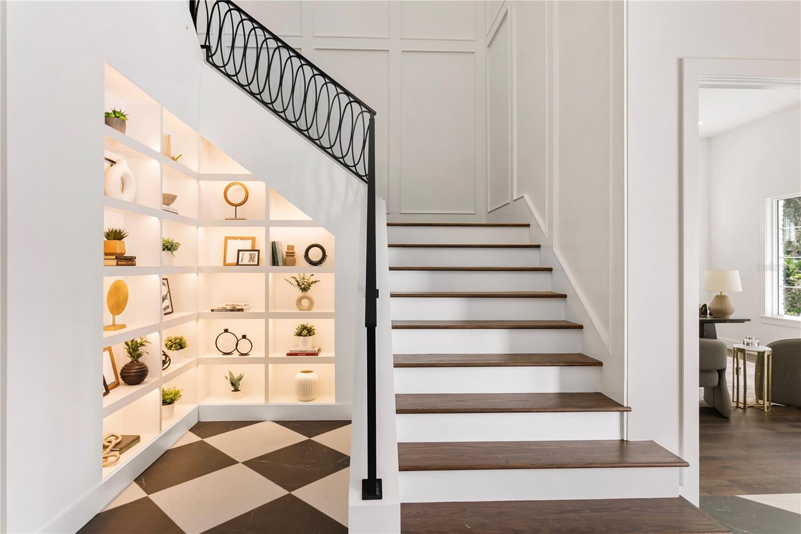 - Built-in Features, Crown Molding, Eat-in Kitchen, High Ceilings, Kitchen/Family Room Combo, Open Floorplan, PrimaryBedroom Upstairs, Solid Surface Counters, Solid Wood Cabinets, Split Bedroom, Stone Counters, Thermostat, Vaulted Ceiling(s), Walk-In Closet(s), Wet Bar