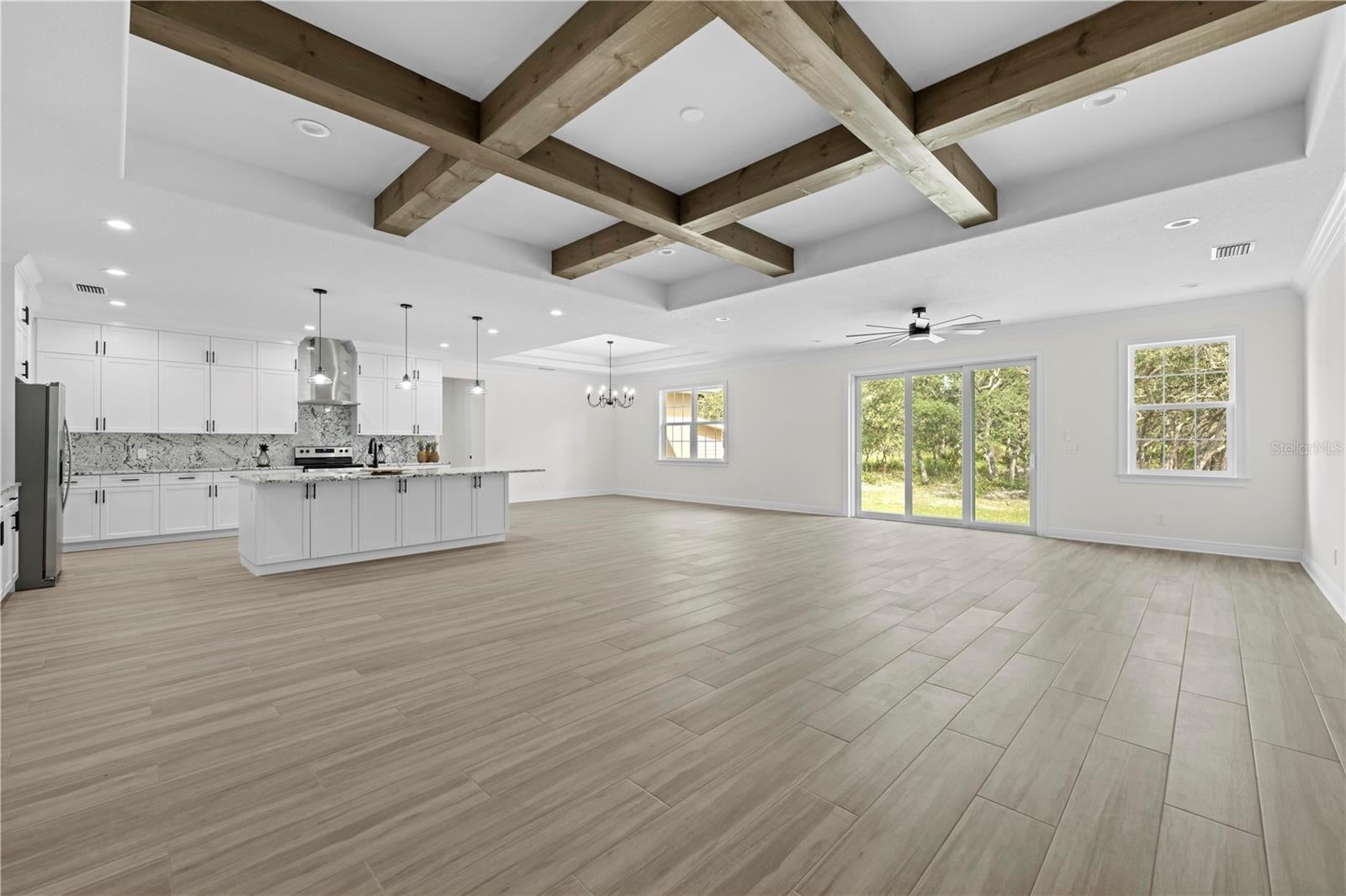 - Cathedral Ceiling(s), Ceiling Fans(s), Eat-in Kitchen, High Ceilings, Kitchen/Family Room Combo, Living Room/Dining Room Combo, Open Floorplan, Primary Bedroom Main Floor, Solid Surface Counters, Split Bedroom, Vaulted Ceiling(s), Walk-In Closet(s)