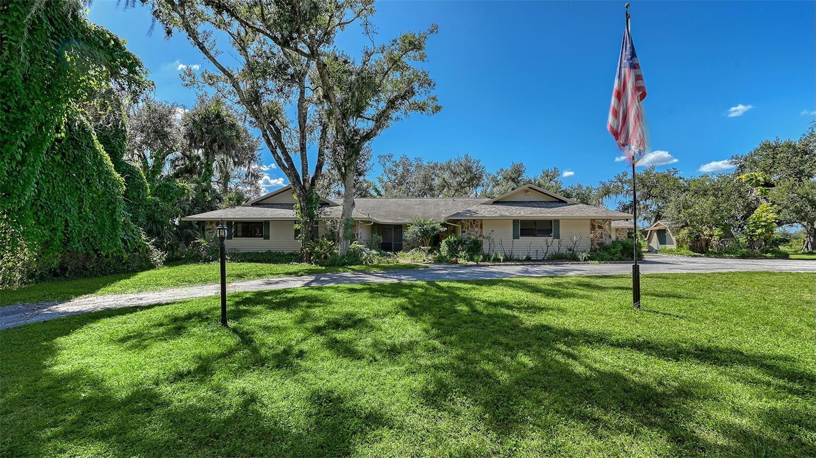 Step into a slice of Southern elegance with this breathtaking property in Myakka Valley Ranches - easily the most beautiful property in this equestrian neighborhood. Think "Gone with the Wind" charm blended with the real, natural Florida. Myakka Valley Ranches is a beautiful equestrian community with miles of horse and walking trails. Even if you don't own horses, the trails are beautiful and serene for walking and running. Literally adjacent to the largest State park in Florida (Myakka River State Park) and only 25 minutes from the world famous Siesta Key Beach, this home offers the Best of Florida's Nature and Coast. This four bedroom three and a half bath estate spans 6,200 sq. ft. under roof, with 3,805 of air conditioned luxury, all set in a serene park-like environment. The large in-ground swimming pool is screened in and UNDER ROOF, giving it the feeling of an idooor oasis while actually being an outdoor retreat. The lanai overlooks a gorgeous pond stocked with fish and complete with a dock. Inside you will find a stunning wood burning fireplace , a spacious game room/office, and an open kitchen that flows seamlessly into the great room and pool area. In addition to the attached oversized 2 car garage, additional features include a three bay outbuilding garage and a second large outbuilding storage facility, providing ample space for vehicles, equipment , or hobbies. With three separate AC zones, this home is as comfortable as it is flexible in providing numerous privacy options. Don't miss this opportunity to own this unique slice of paradise!