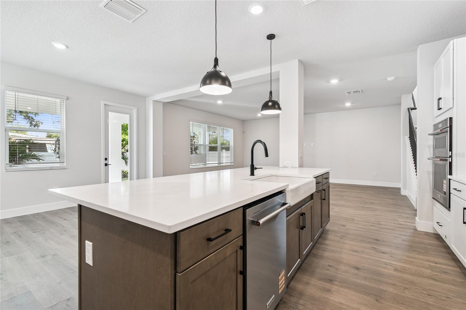 - High Ceilings, Open Floorplan, Pest Guard System, PrimaryBedroom Upstairs, Solid Surface Counters, Solid Wood Cabinets
