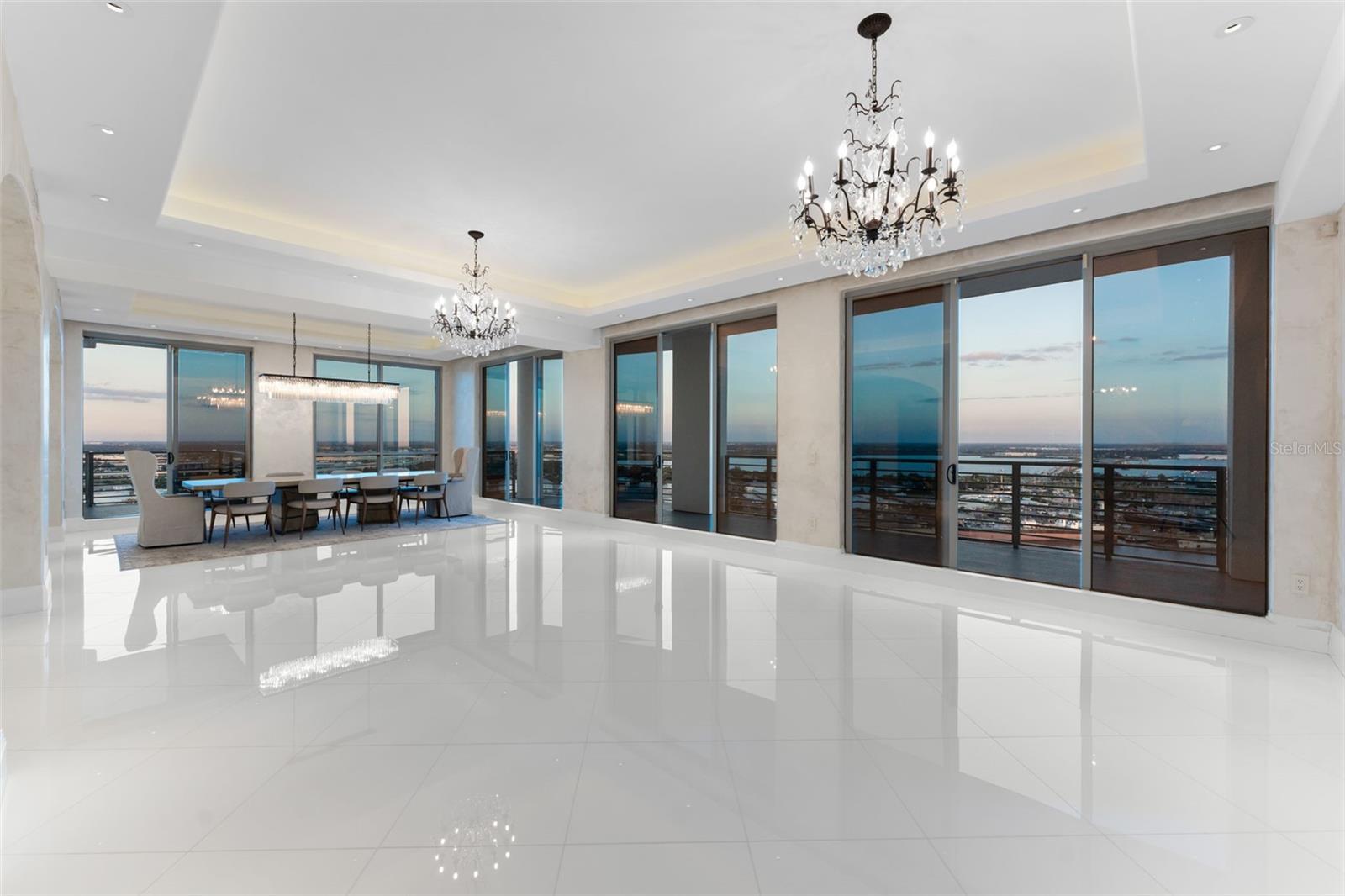 WELCOME HOME to the Towers of Channelside — where luxury living meets panoramic perfection. Experience the pinnacle of downtown Tampa living in this fully remodeled Grand Penthouse on the 28th floor, offering over 4,500 sq. ft. of exquisite interior space, featuring 3 spacious bedrooms, 2 large dens, and 3.5 bathrooms. Enjoy breathtaking 360° views of the water, cruise ships, and Harbour Island from three private balconies, including an expansive 1,388 sq. ft. wraparound terrace—perfect for taking in both sunrise and sunset. This exclusive residence includes 4 secured parking spaces and 2 oversized storage units, ensuring convenience and comfort at every turn. Inside, every detail exudes sophistication, from the custom Bulthaup kitchen and marble and wood flooring to the Venetian plaster finishes and three master suites, each with its own ensuite bath, walk-in custom closet, and private balcony access. The private elevator opens directly into your home, creating an entrance as impressive as the views. The Towers of Channelside community is elevating its lifestyle even further with a brand-new fitness center coming soon, complementing the resort-style pool and premium resident amenities. Enjoy the privacy of a floor shared with only one other residence, while being part of one of Tampa Bay’s most exclusive high-rise communities. Don’t miss this rare opportunity to own one of Tampa’s most iconic and spacious penthouses—a perfect blend of luxury, comfort, and waterfront living.