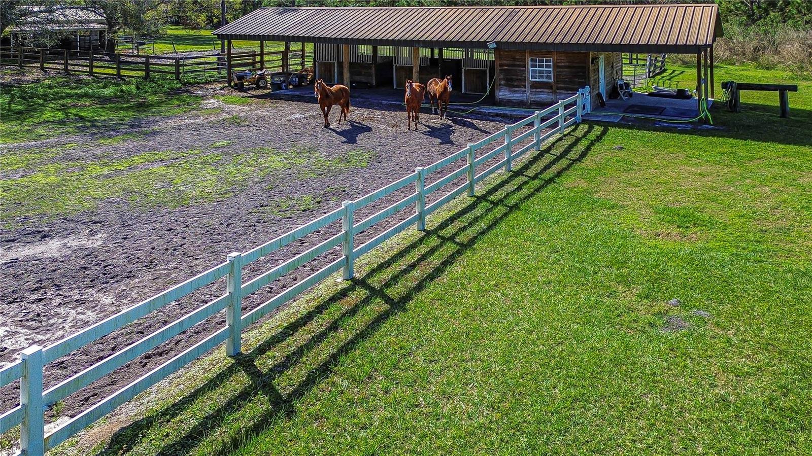Country Living at its best, this home has a lot to offer, in a gated equestrian community that does not have many homes come up for sale. This home is in a very desirable area of Wesley Chapel home is in a very desirable area of Wesley Chapel. OH, And did I say zoned for horses. This residence, sits on an oversized lot of almost 3 acres and is newly landscaped and has Lots of Palm Trees to enjoy. Great home for entertaining , with the open floor plan. As you enter the home you will find a formal dining room to your right and formal living room to you left with a straight view from the foyer to the pool. The master bedroom is very roomy and has a great view of the pool. The master bath has a large vanity with dual sinks and tower cabinet in the middle and make-up vanity all with granite counter top. You will also find, a two person shower and a separate large Jacuzzi whirlpool garden tub , there is also 2 walk in closets for his and hers. As you walk thru from the foyer you will come to the open floor plan of kitchen with breakfast bar, with stainless steel appliances, gas range and granite counter tops. There is also a separate pantry with mud room area . Next to the kitchen there is a dinette area and plant shelves around the kitchen and dinette area . The kitchen opens up into a stunning spacious family room which has a flair of country trim and a beautiful large custom stone fireplace giving out a county feel. You will also find a custom dry bar with granite counter top, this open floor plan makes it very spacious, all of this overlooks the pool and the barn. The sliding glass pocket doors lead out to magnificent pool with tanning ledge that has a Key West feel. Out in the pool lanai you will find another custom dry bar with granite top for entertaining and barbecuing. Lounge around the pool, or just relax and enjoy the view of the fabulous pool, palm trees and barn, watch your horses roam and the deer walking by for their evening walk. After you go thru the family room you will find the laundry room to your right and straight ahead there is one bedroom or offices/plus separate area in the home is set up for its own private inlaw suite with it's own kitchenette, bath room (all new) and sitting area. This home also has a 300 gallon propane tank outside. The house has wood flooring - travertine and carpet. There is central vac , 2 split system/ac units, water softener, 10 foot ceilings, separate exercise and or tanning room, laundry room with newer cabinets and sink. There is 4 bedrooms (could be 5) with 4 full bath and this includes a Bonus of, a very convent totally separate loft above garage with kitchen, bath and living room and also another seperate room or can be, game room/personal office the possibilities are endless. The house has a 2 and 1/2 car garage and there is a 3 and 1/2 car detached garage making a total of 5 and two halves garage. ALSO, Your own private 3 stall barn (could be 4 stall) with tack/feed room, and wash area. There is 2 pastures could be 3 for horses to roam. All of this is close to great shopping, the groves and newly added krates, Tampa premium outlets, Wiregrass mall, Starbucks and lots of dining options in the area and just a few minutes to I75. Hard to believe this county feel is so close to all of the convinces of shopping, I75 and lots of restaurants . This is a area of Wesley Chapel is one of the most in demand and desireable.