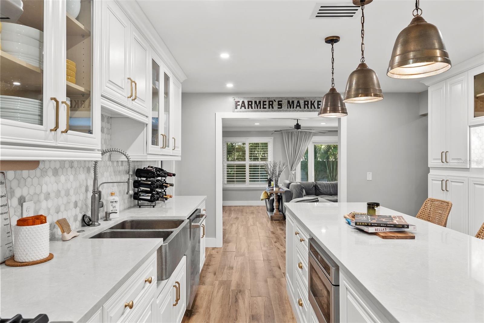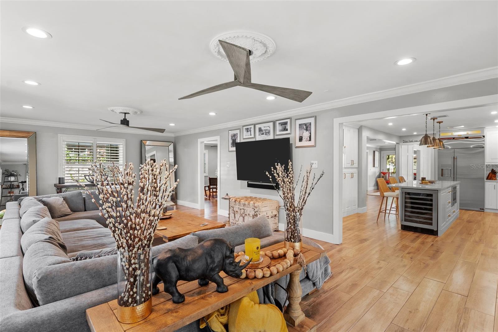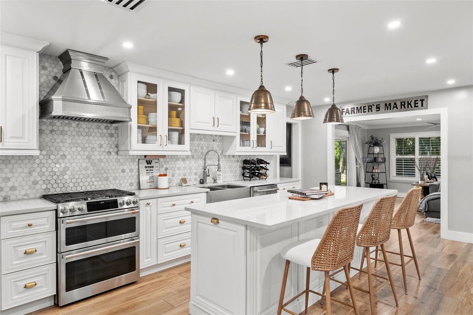Tucked away on a quiet cul-de-sac in the heart of South Tampa, this reimagined modern farmhouse blends timeless architecture with modern lifestyle. Behind its classic façade is a thoughtfully transformed home designed for effortless living, entertaining, and connection. Sunlight fills the open interiors, flowing seamlessly from the inviting front living room to the expansive family room that opens directly to the outdoors—perfect for everything from cocktail hours to cozy movie nights and weekend brunches. At the heart of the home is a brand-new chef’s kitchen with a dedicated bar area, outfitted with high-end GE Café appliances, a gas range, wine fridge, and generous custom cabinetry—ideal for both cooking and gathering. An adjacent flex room offers versatility as a home gym, creative studio, or stylish workspace. Sliding doors lead to a private backyard retreat featuring a sparkling pool, paver deck, outdoor kitchen, gas fireplace, and café lighting—an entertainer’s oasis designed for unforgettable evenings. Upstairs, the primary suite feels like a boutique escape with dual walk-in closets and a spa-inspired bath. Two guest bedrooms share a chic Jack-and-Jill bath, while a third-floor retreat offers ideal privacy for guests, an au pair, or a quiet escape. Completely move-in ready with new AC systems (2025), newer roof (2023), pool heater (2023), landscape lighting (2022), lanai (2020), and a 110V EV charger in the garage. Within walking distance to Mabry, Coleman, and St. Mary’s, this home captures the art of living beautifully in South Tampa.