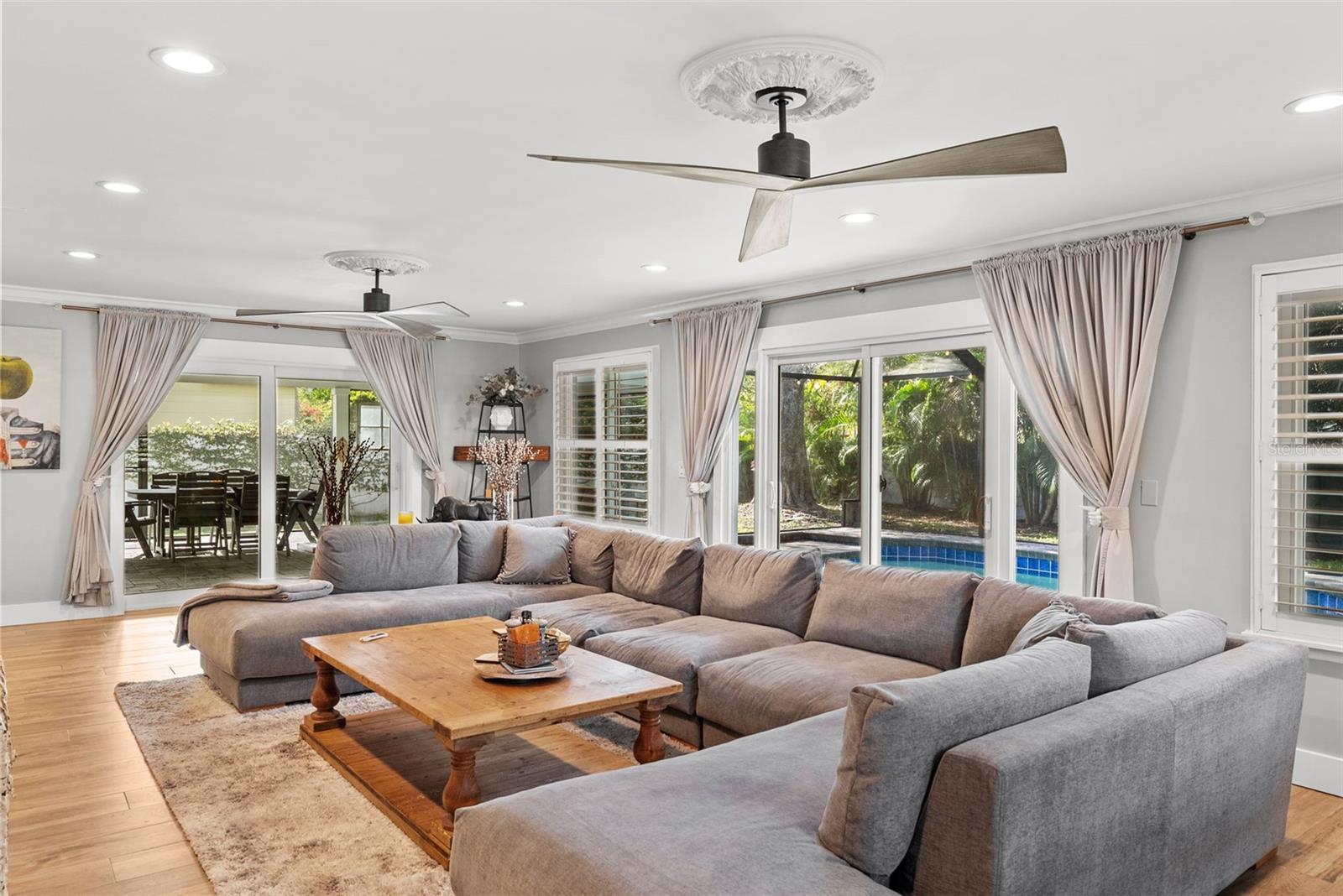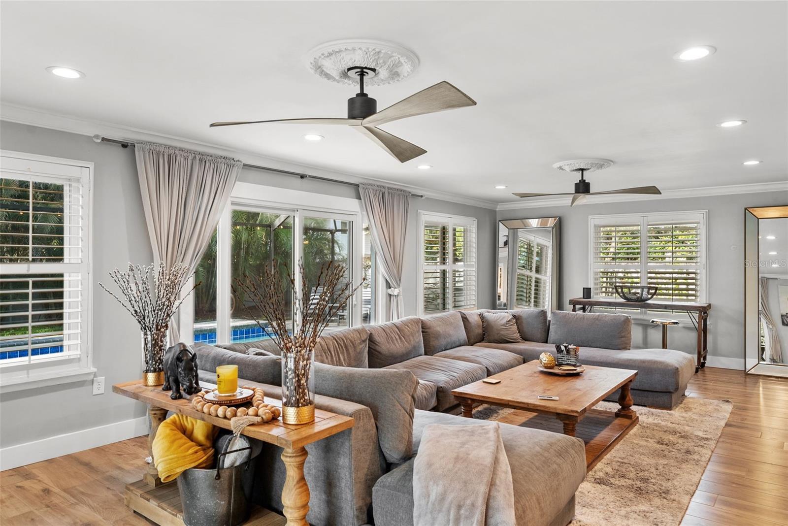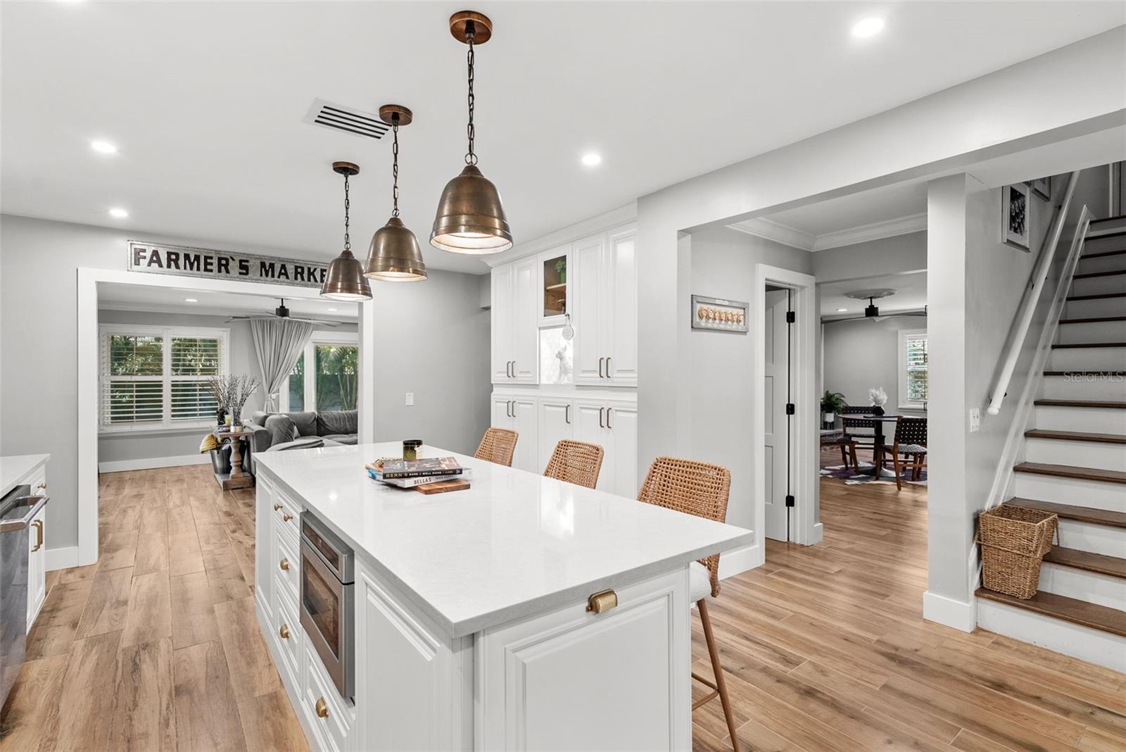 Tucked away on a quiet cul-de-sac in the heart of South Tampa, this reimagined modern farmhouse blends timeless architecture with modern lifestyle. Behind its classic façade is a thoughtfully transformed home designed for effortless living, entertaining, and connection. Sunlight fills the open interiors, flowing seamlessly from the inviting front living room to the expansive family room that opens directly to the outdoors—perfect for everything from cocktail hours to cozy movie nights and weekend brunches. At the heart of the home is a brand-new chef’s kitchen with a dedicated bar area, outfitted with high-end GE Café appliances, a gas range, wine fridge, and generous custom cabinetry—ideal for both cooking and gathering. An adjacent flex room offers versatility as a home gym, creative studio, or stylish workspace. Sliding doors lead to a private backyard retreat featuring a sparkling pool, paver deck, outdoor kitchen, gas fireplace, and café lighting—an entertainer’s oasis designed for unforgettable evenings. Upstairs, the primary suite feels like a boutique escape with dual walk-in closets and a spa-inspired bath. Two guest bedrooms share a chic Jack-and-Jill bath, while a third-floor retreat offers ideal privacy for guests, an au pair, or a quiet escape. Completely move-in ready with new AC systems (2025), newer roof (2023), pool heater (2023), landscape lighting (2022), lanai (2020), and a 110V EV charger in the garage. Within walking distance to Mabry, Coleman, and St. Mary’s, this home captures the art of living beautifully in South Tampa.
