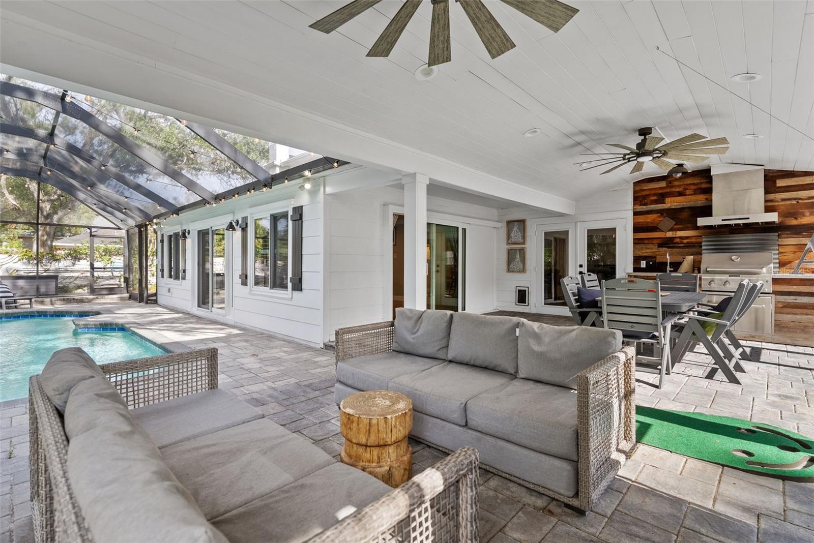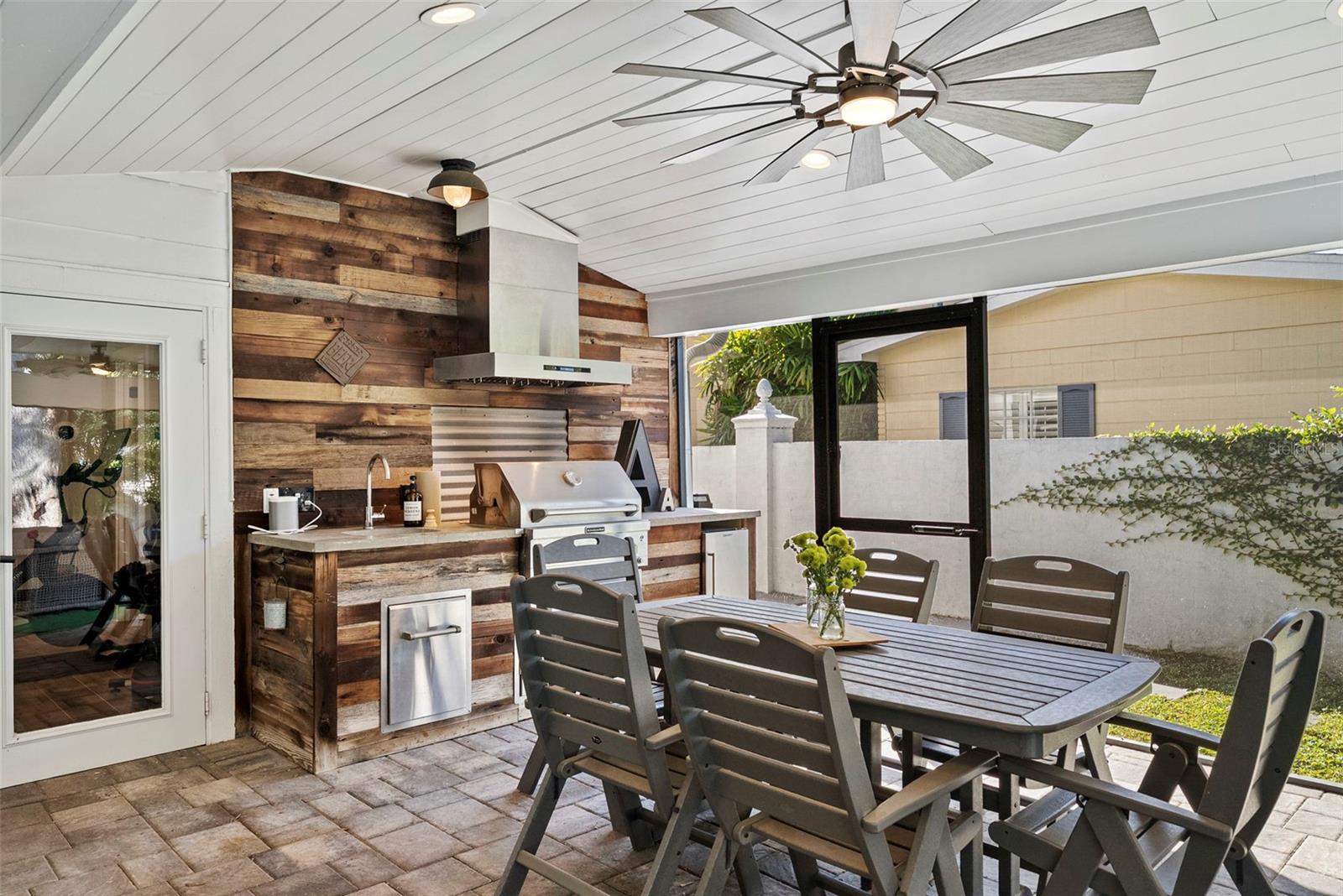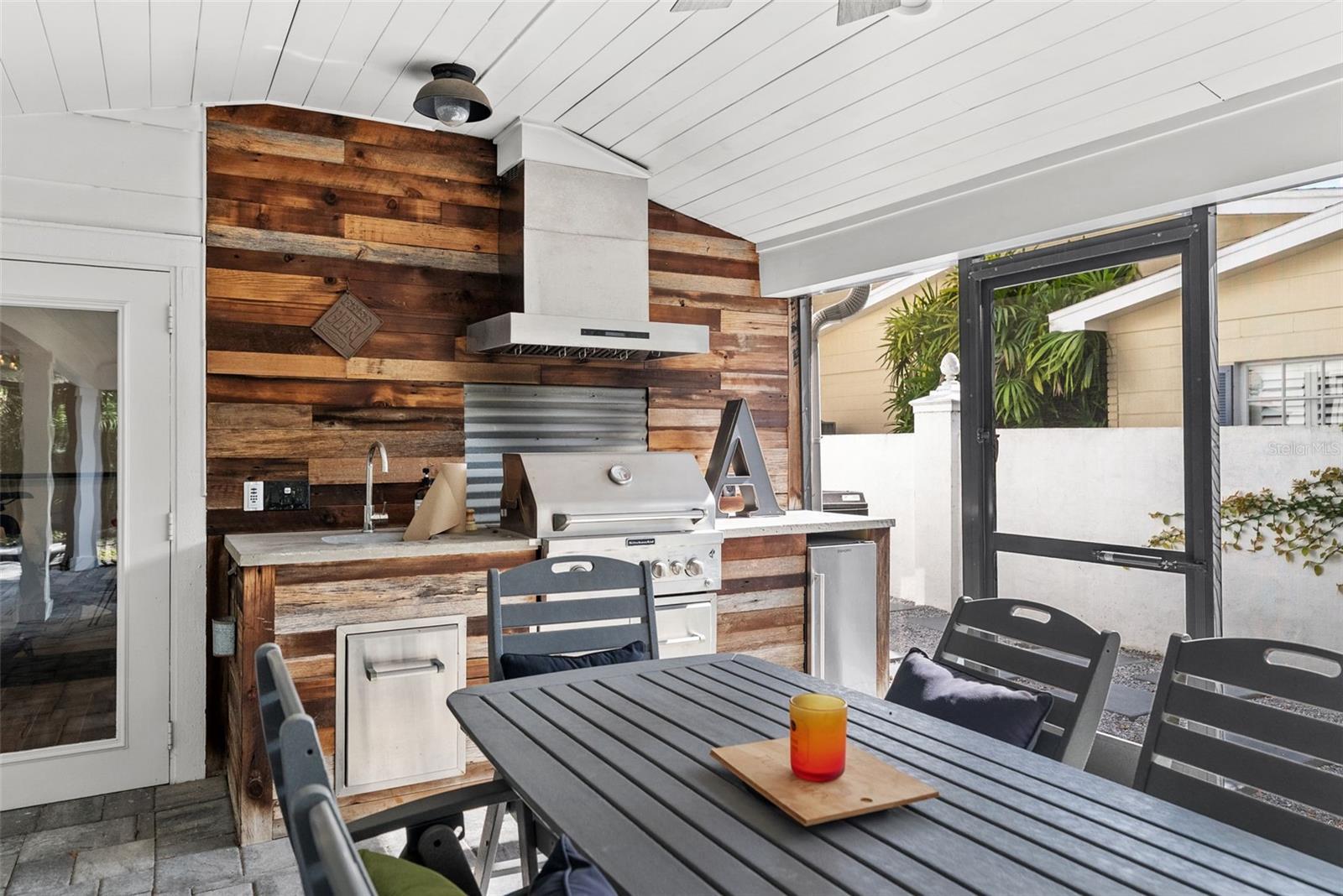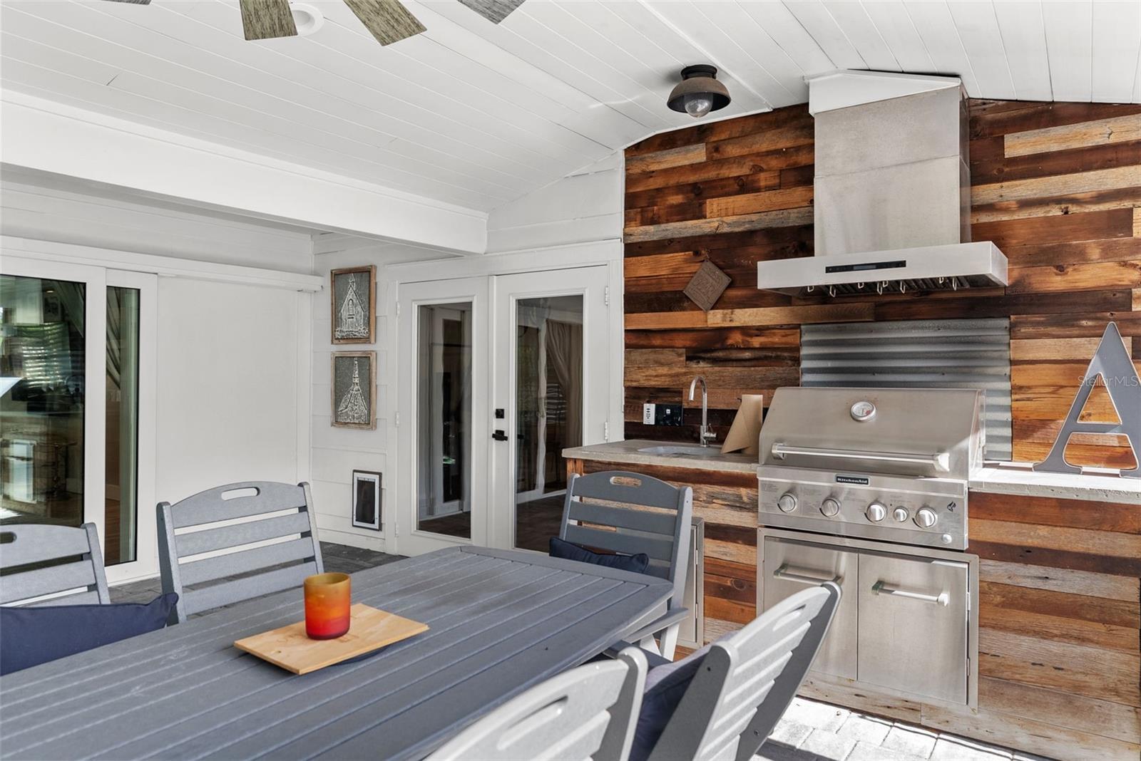 - Lighting, Outdoor Grill, Outdoor Kitchen, Rain Gutters, Sliding Doors, Storage