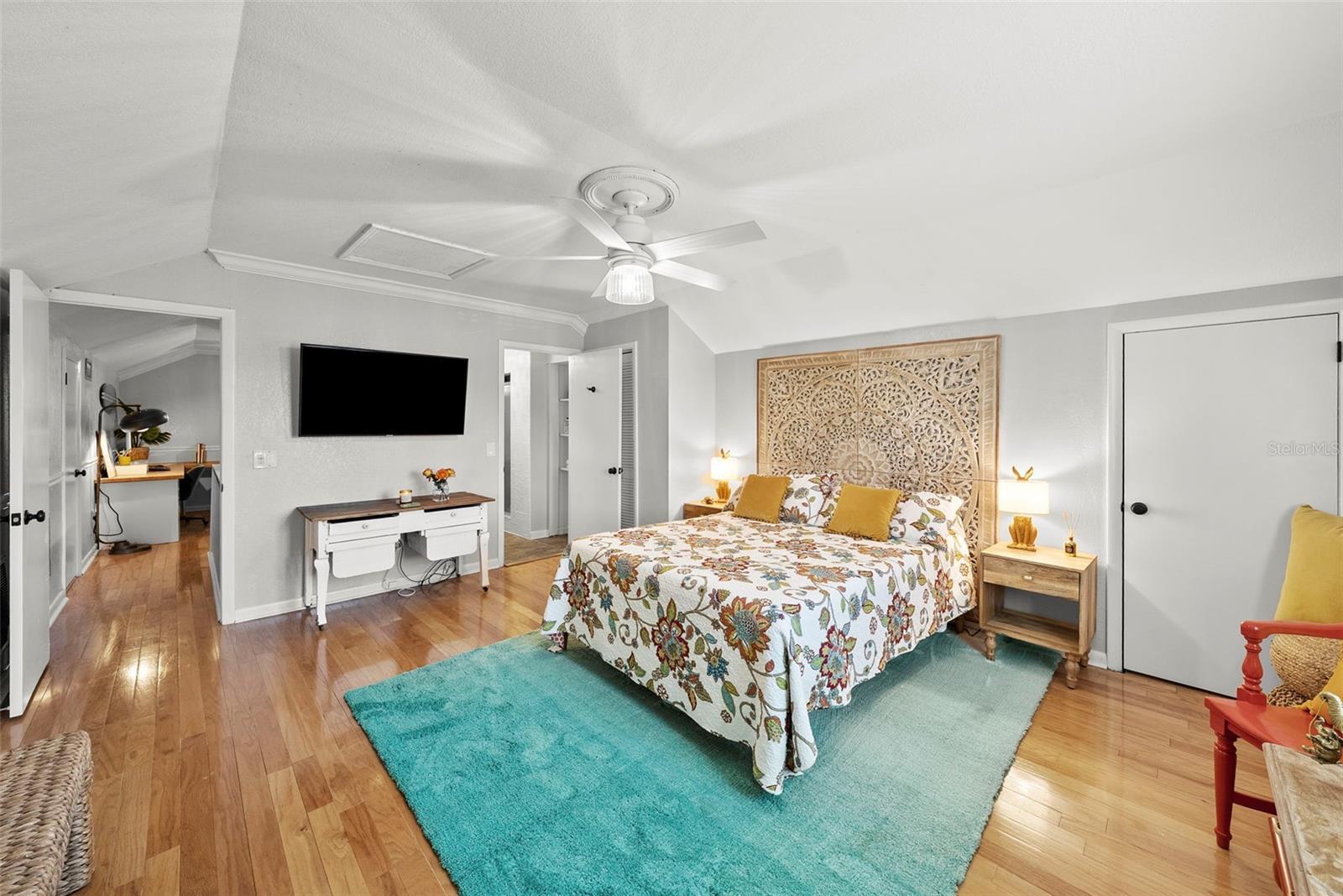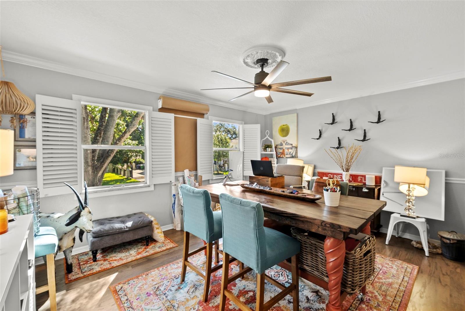 - Ceiling Fans(s), Crown Molding, Dry Bar, Open Floorplan, PrimaryBedroom Upstairs, Solid Wood Cabinets, Stone Counters, Walk-In Closet(s), Window Treatments